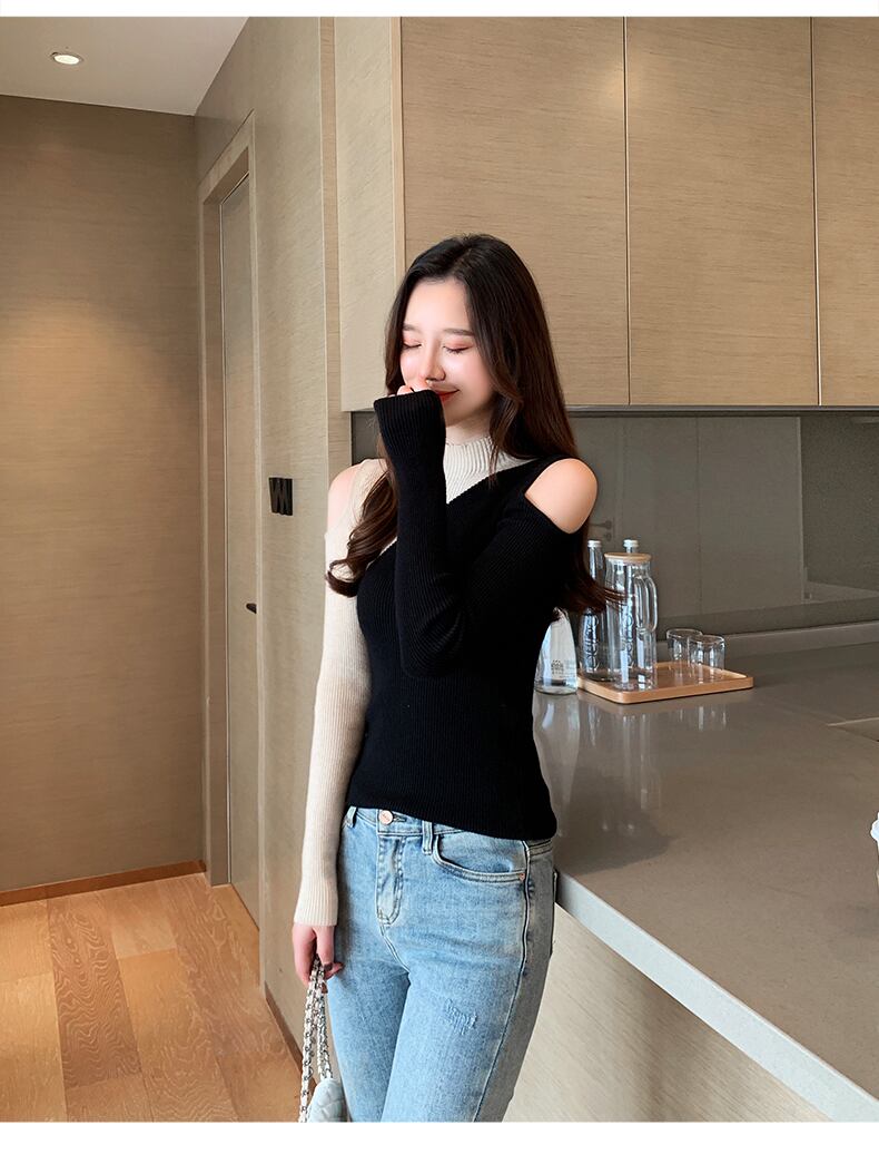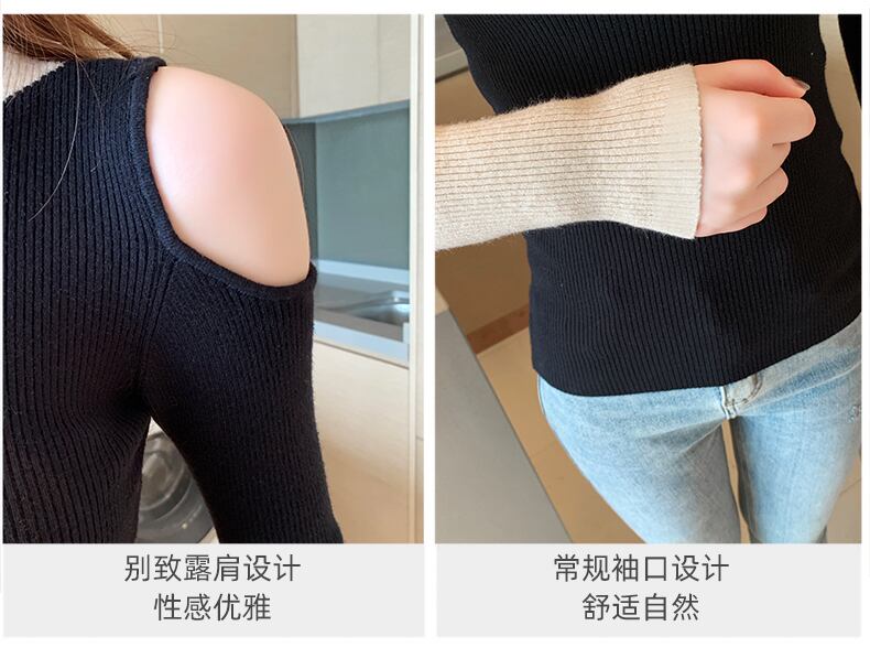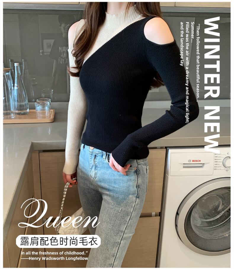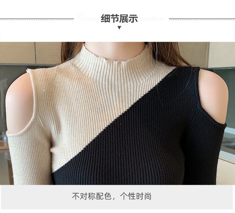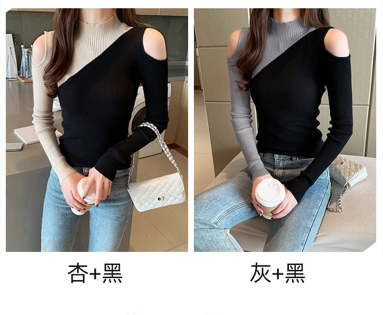 ハーフタートルネックボトムスシャツレディース秋冬2022新作洋風スリムフィットニットセーターオフショルダー長袖トップス ロング オータム 秋物 ウィンター 冬物 7460024688901276 | framboise21