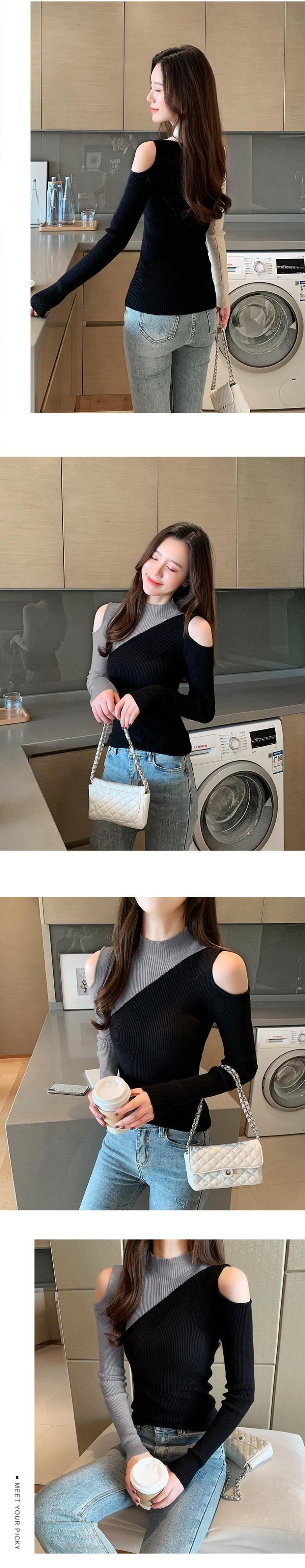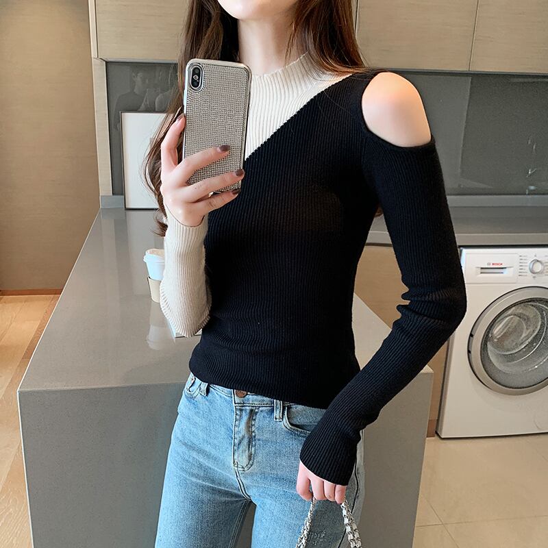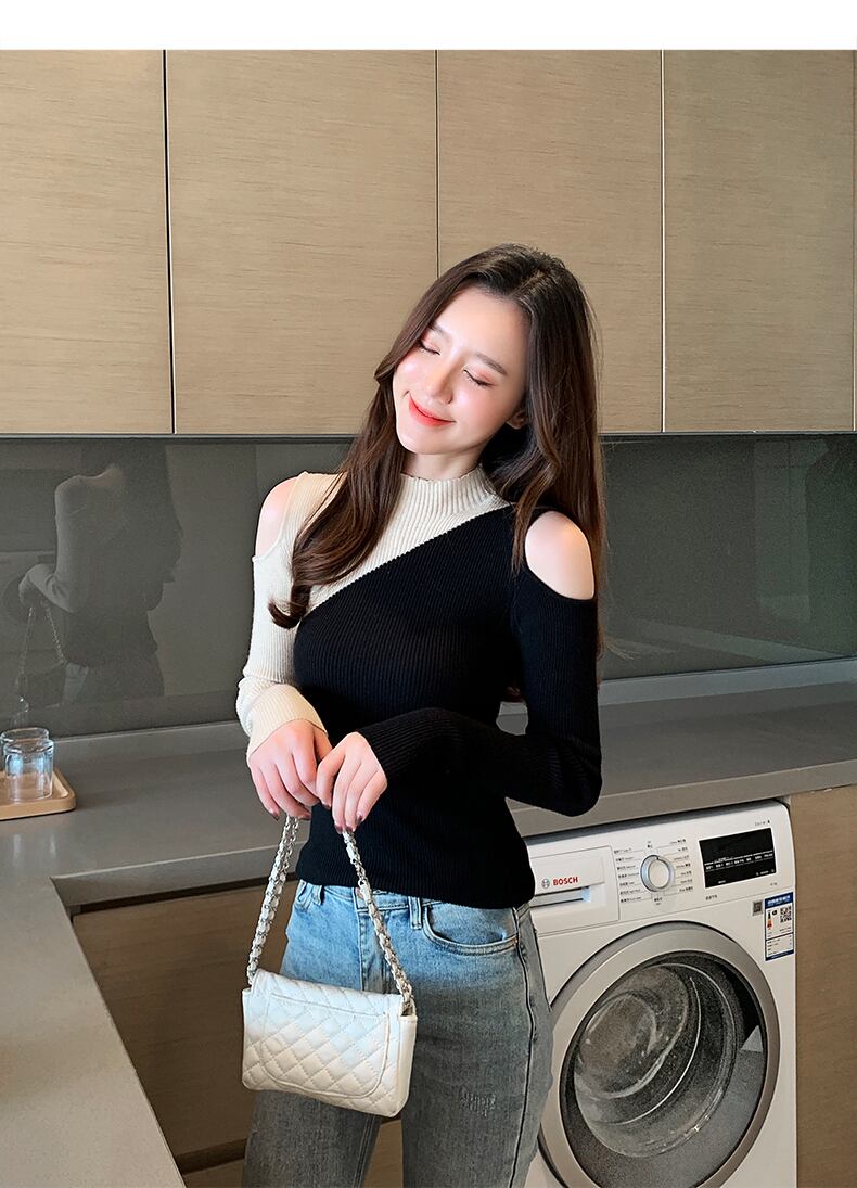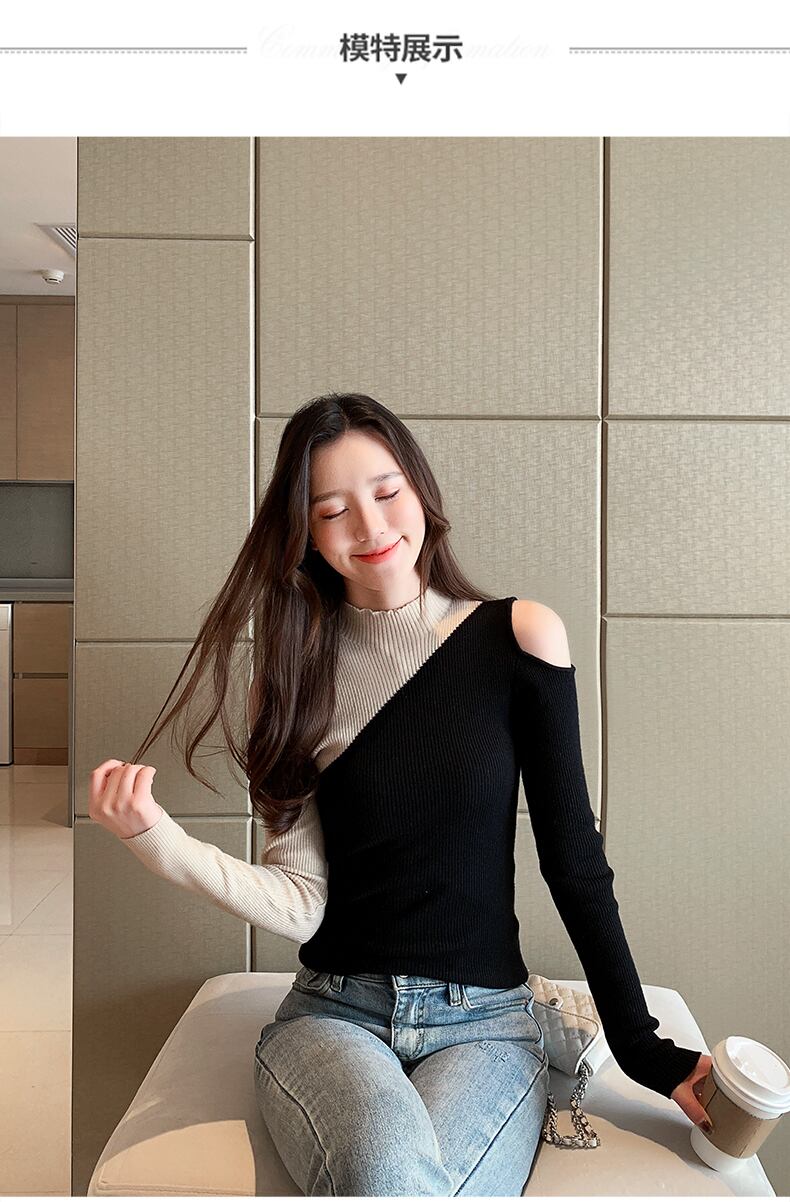 ハーフタートルネックボトムスシャツレディース秋冬2022新作洋風スリムフィットニットセーターオフショルダー長袖トップス ロング オータム 秋物 ウィンター 冬物 7460024688901276 | framboise21