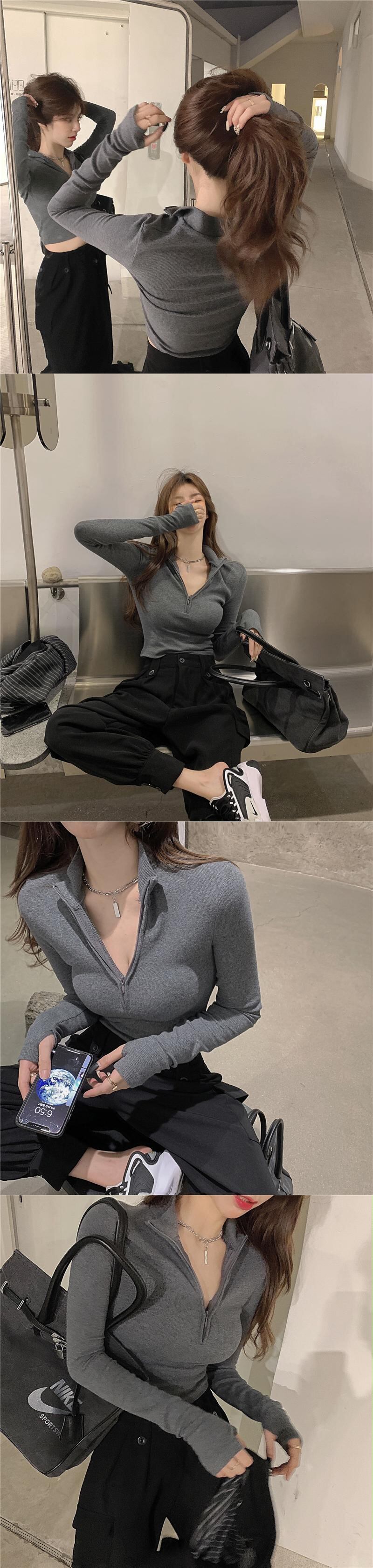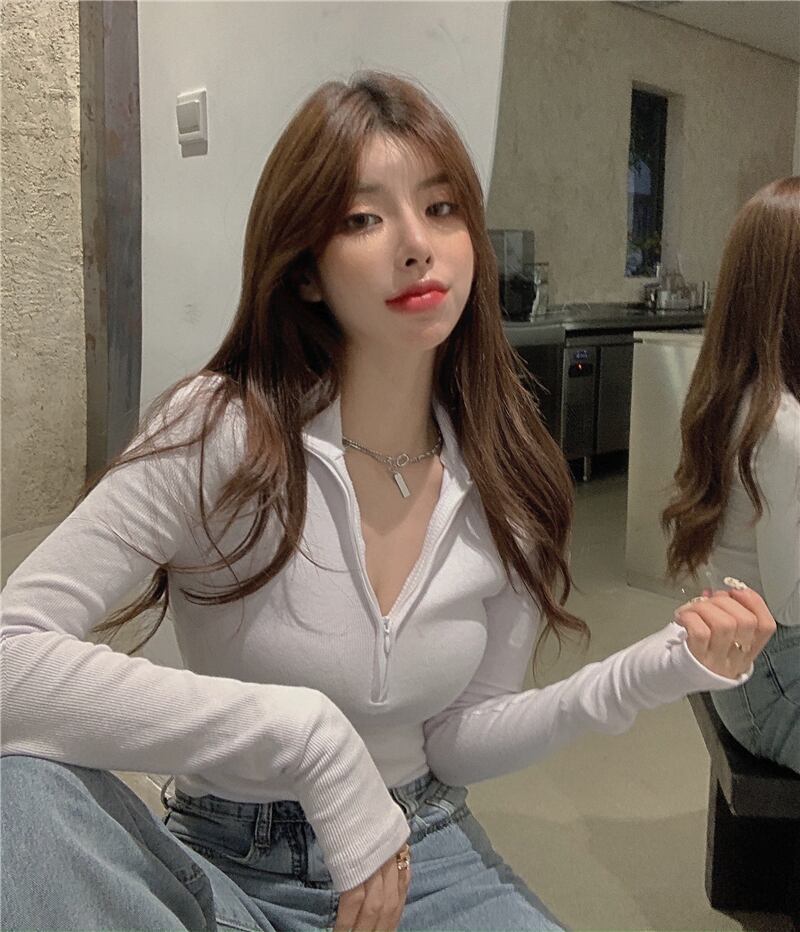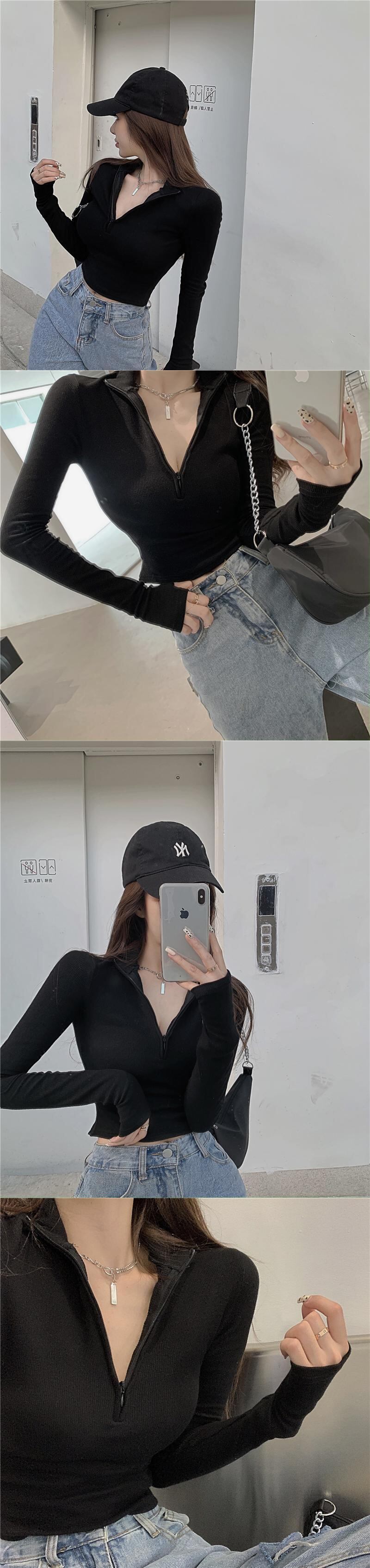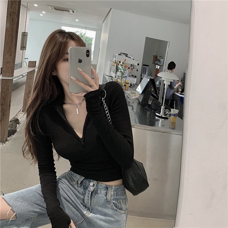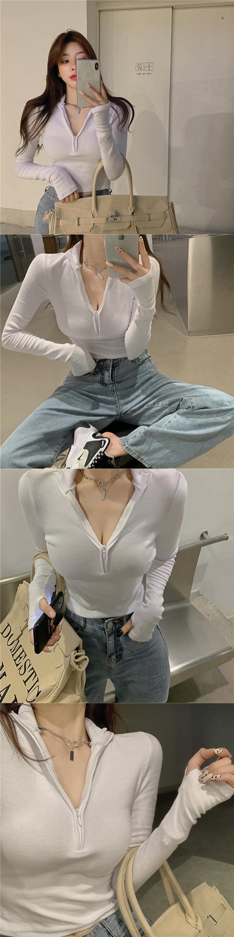 タイトフィット長袖トップス レディース 秋冬 ハーフタートルネック ボトムス シャツ 洋風デザイン セクシー ジッパー ミッドネック Tシャツ ロング オータム 秋物 ウィンター 冬物 7460020547936701 | framboise21