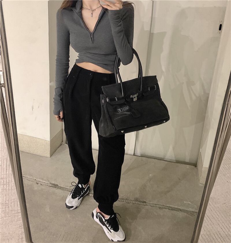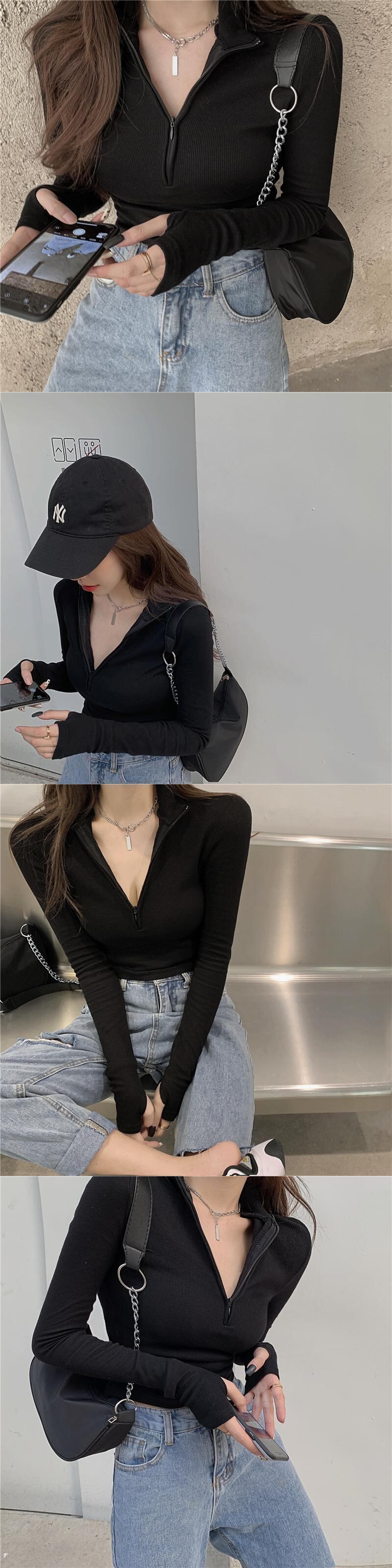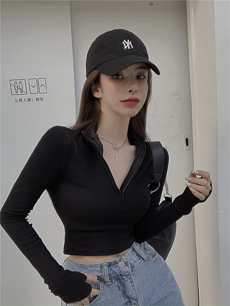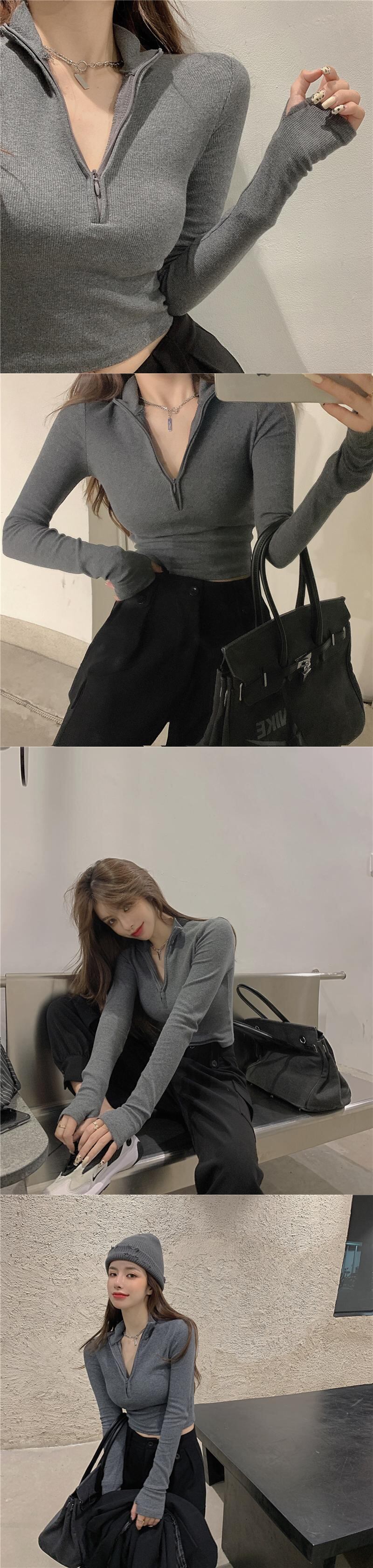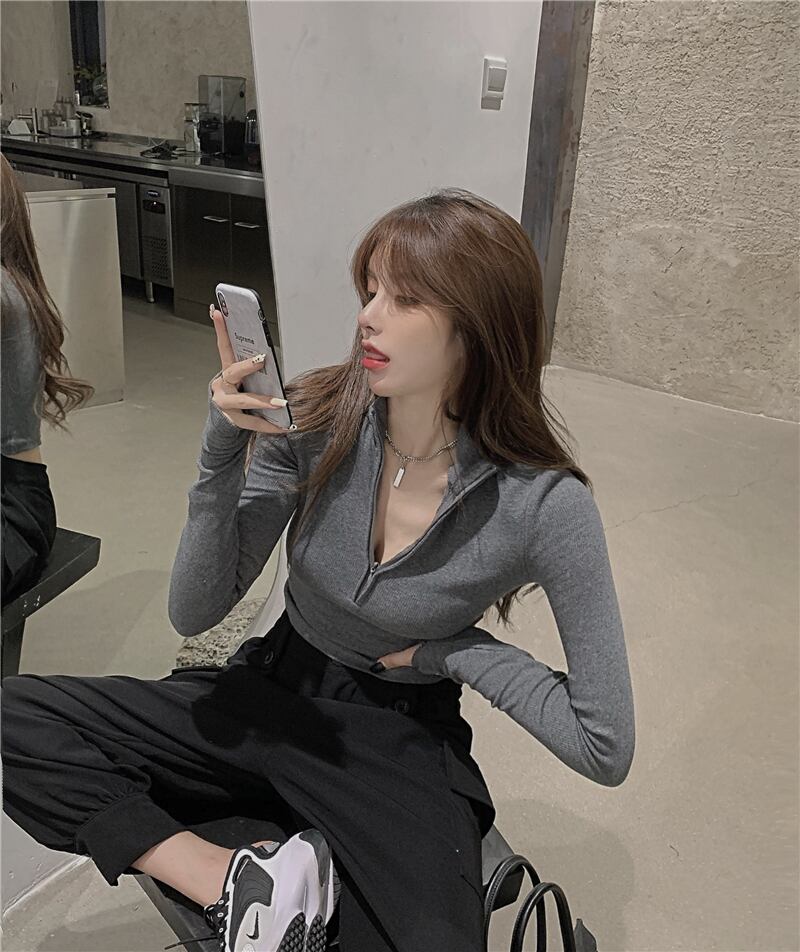 タイトフィット長袖トップス レディース 秋冬 ハーフタートルネック ボトムス シャツ 洋風デザイン セクシー ジッパー ミッドネック Tシャツ ロング オータム 秋物 ウィンター 冬物 7460020547936701 | framboise21