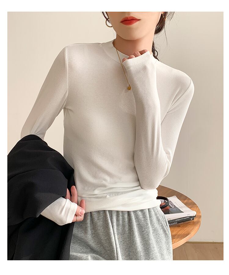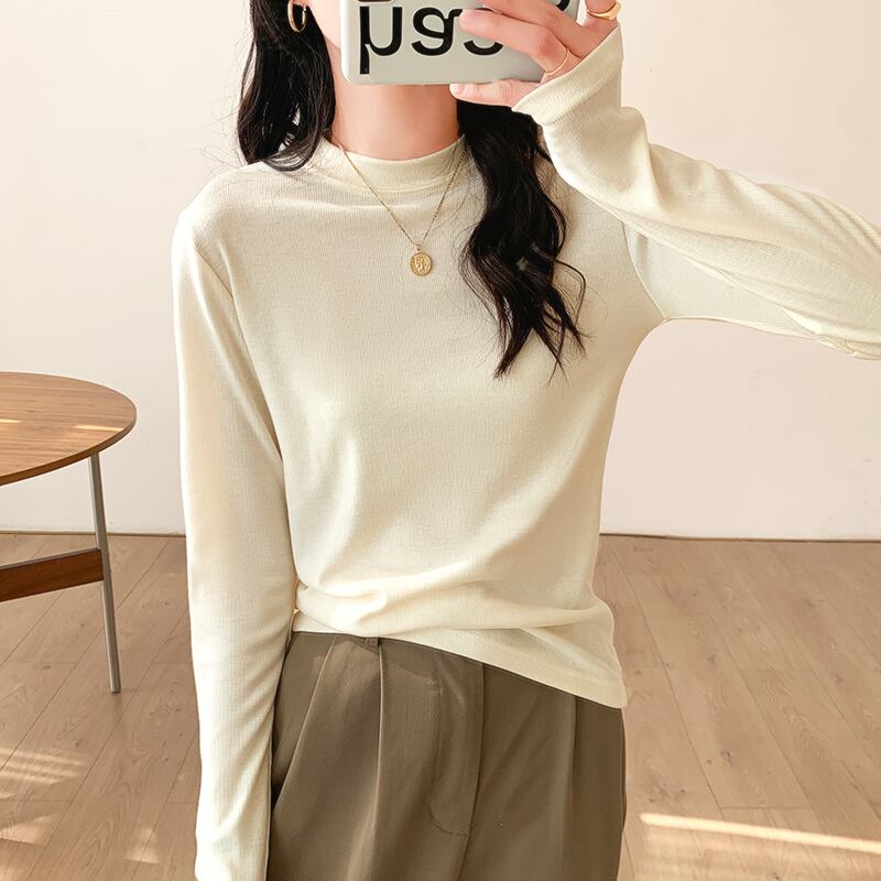 長袖 白 tシャツ ボトムス シャツ スーツ レディース 初秋 冬 薄手 2022年新作 スリム 小さめ 立ち襟 トップス ロング ホワイト オータム 秋物 ウィンター 冬物 7460071834964804 | framboise21