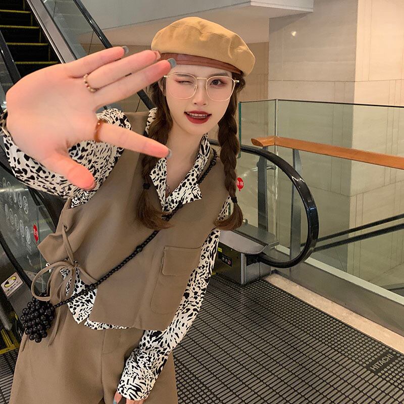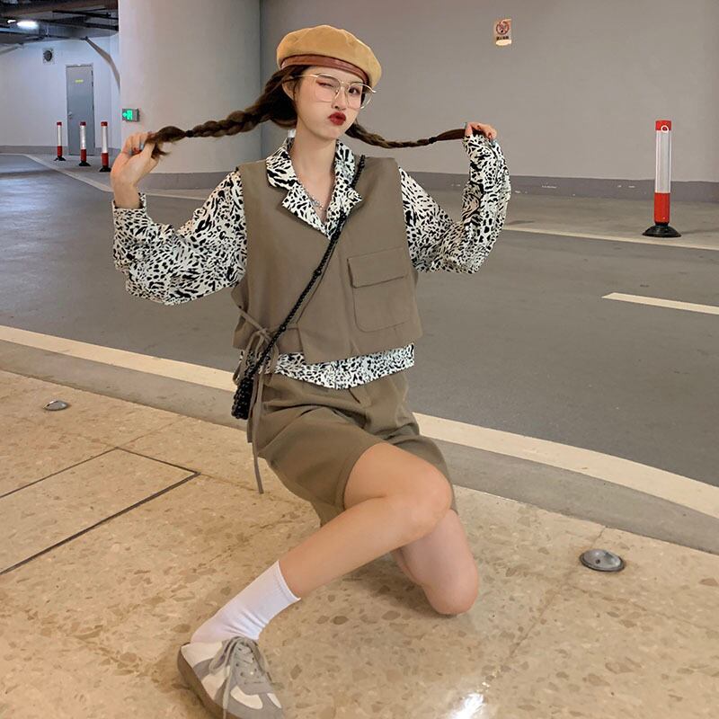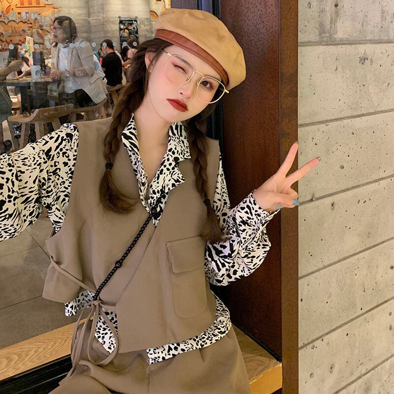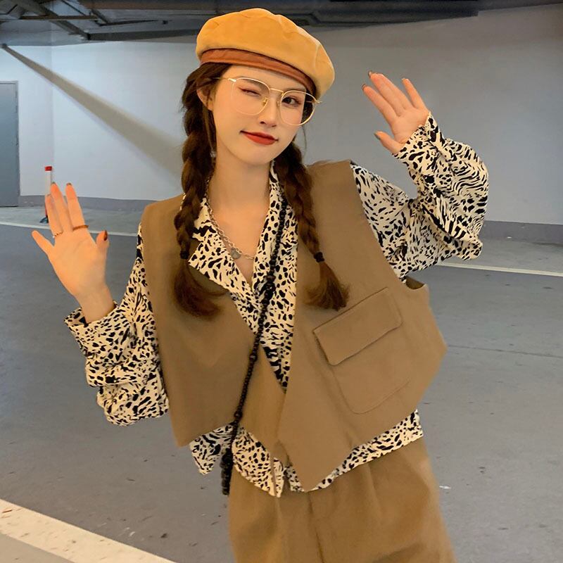 色:黒のベスト,カーキベスト,白のシャツ,ヒョウシャツ