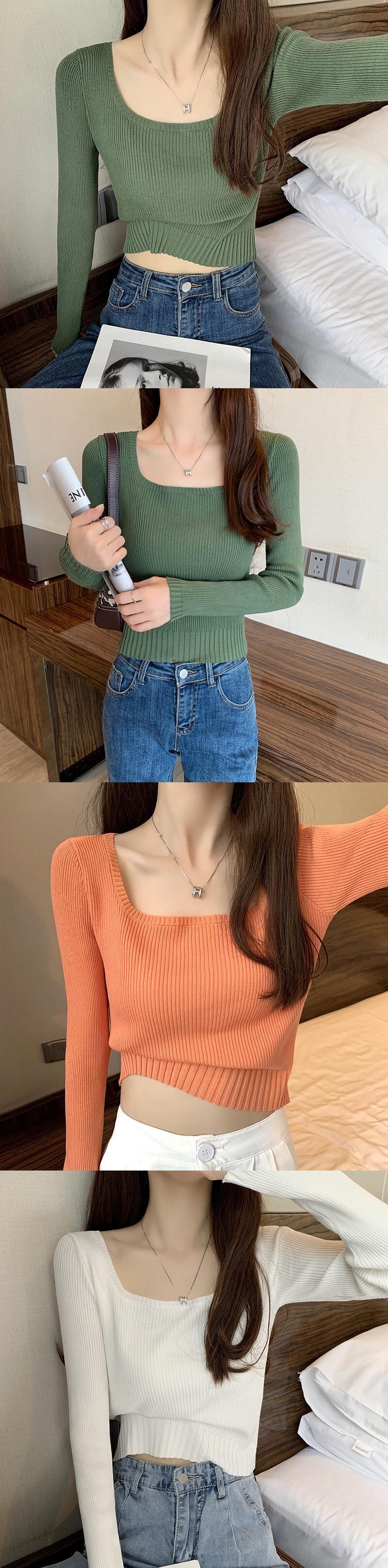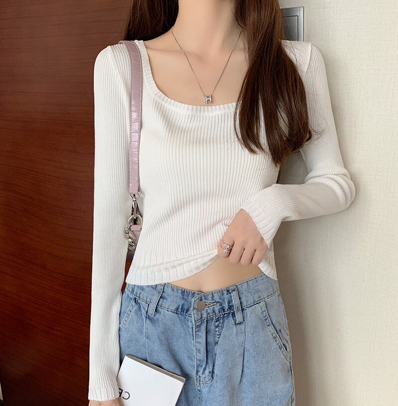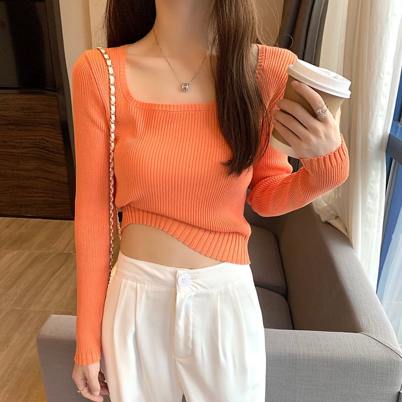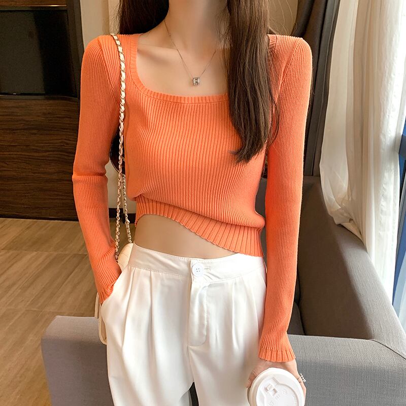 秋と冬の婦人服 2022 新しいショートボトムスシャツ女性の洋風スリムフィットニット長袖セータースクエアカラートップ ロング オータム 秋物 ウィンター 冬物 スクウェア 7460081148141787 | framboise21