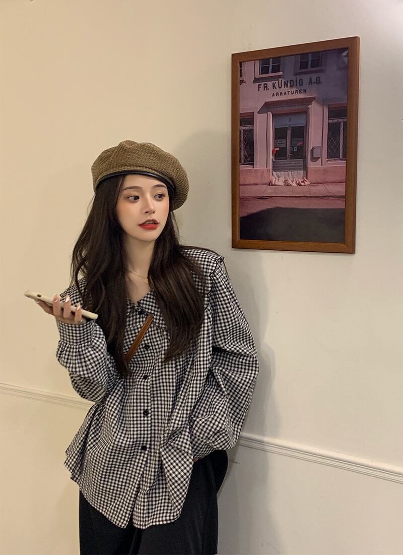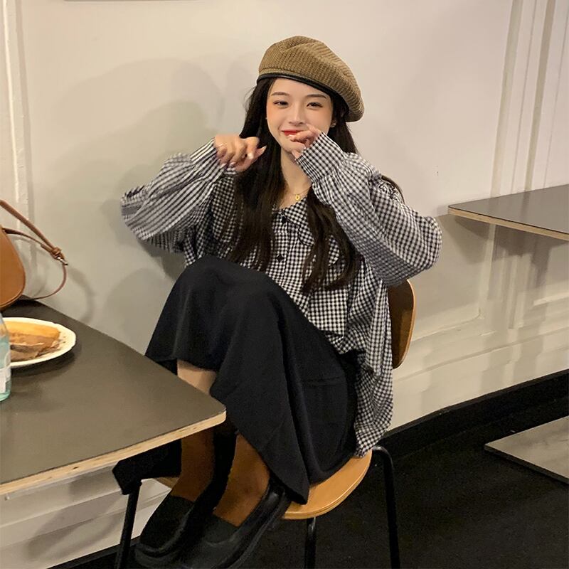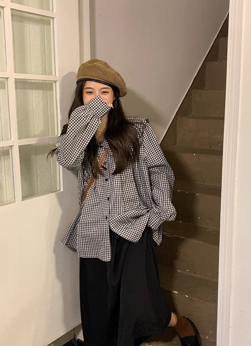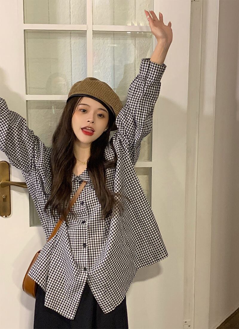 色:長袖チェック柄