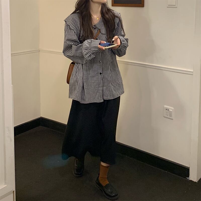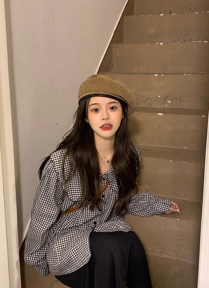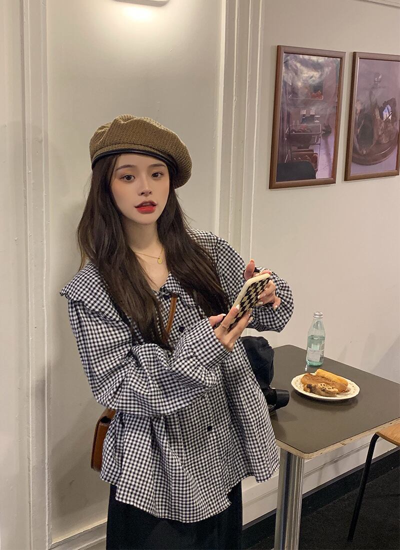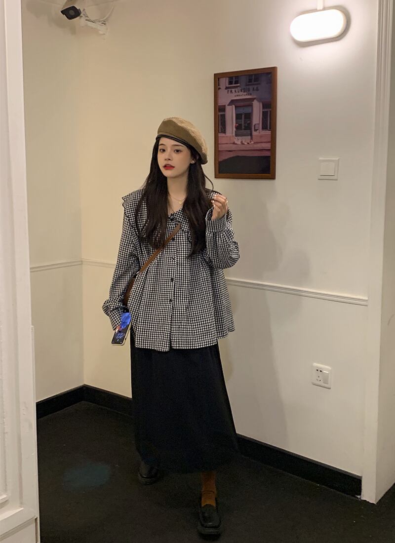 色:長袖チェック柄