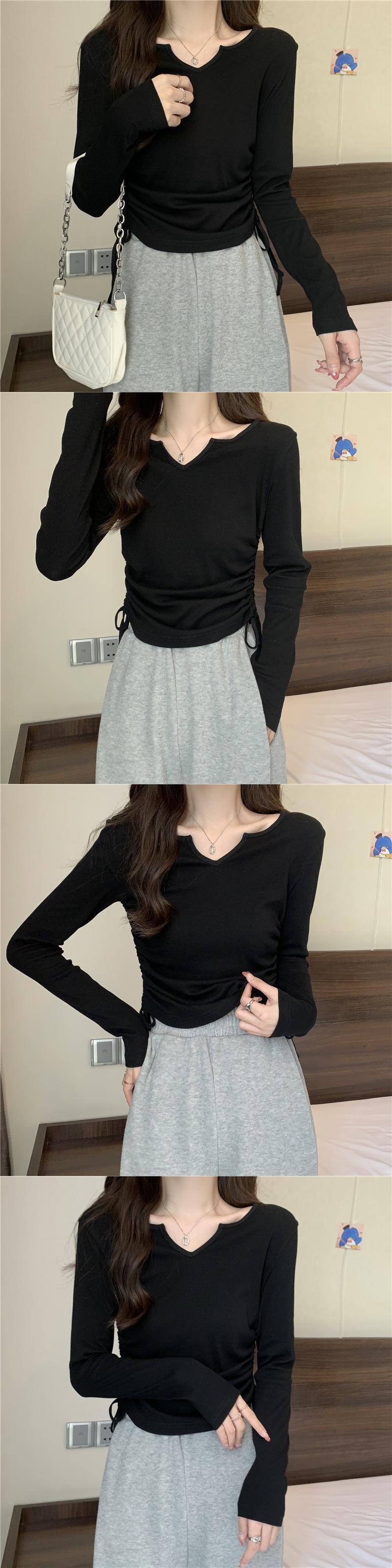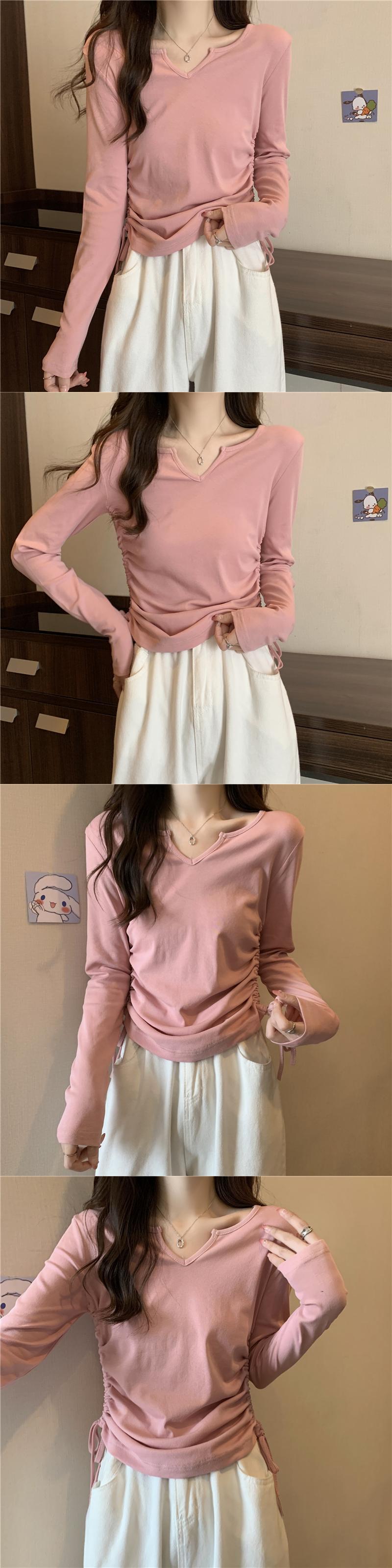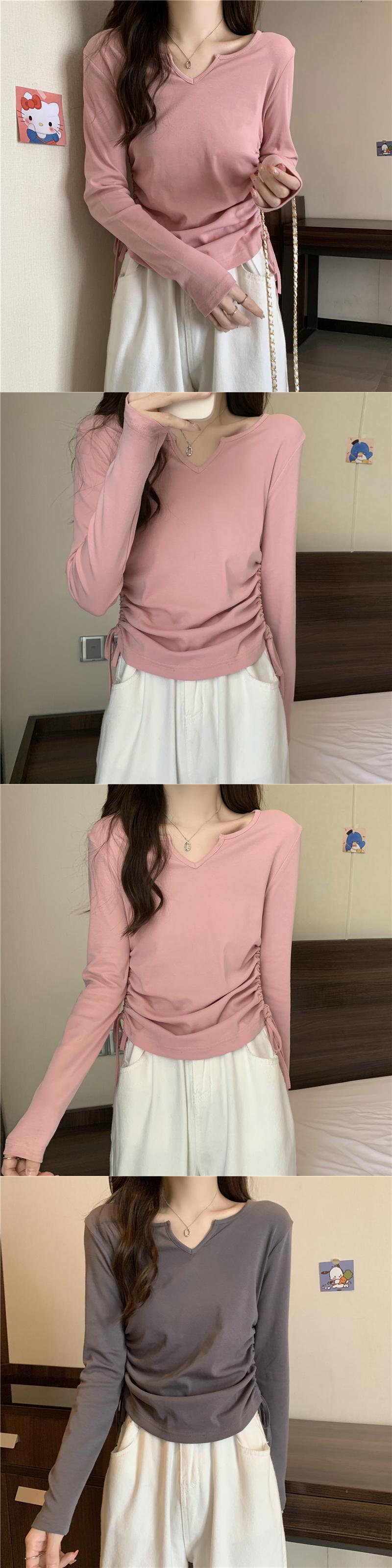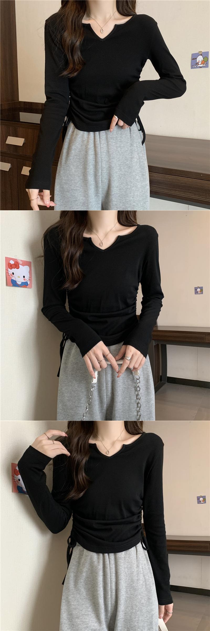 フレンチ Vネック 鎖骨 長袖 インナー Tシャツ ボトムス シャツ レディース 秋ニッチ 個性的 スペシャル 巾着 スリム ショート トップス ロング オータム 秋物 7460040008760703 | framboise21