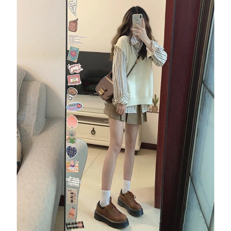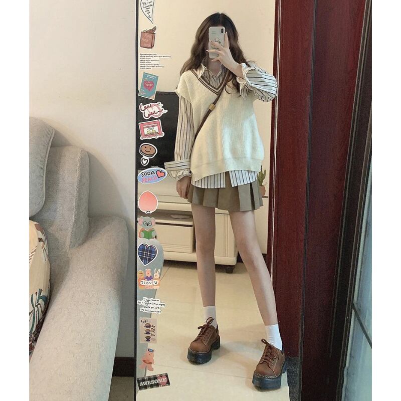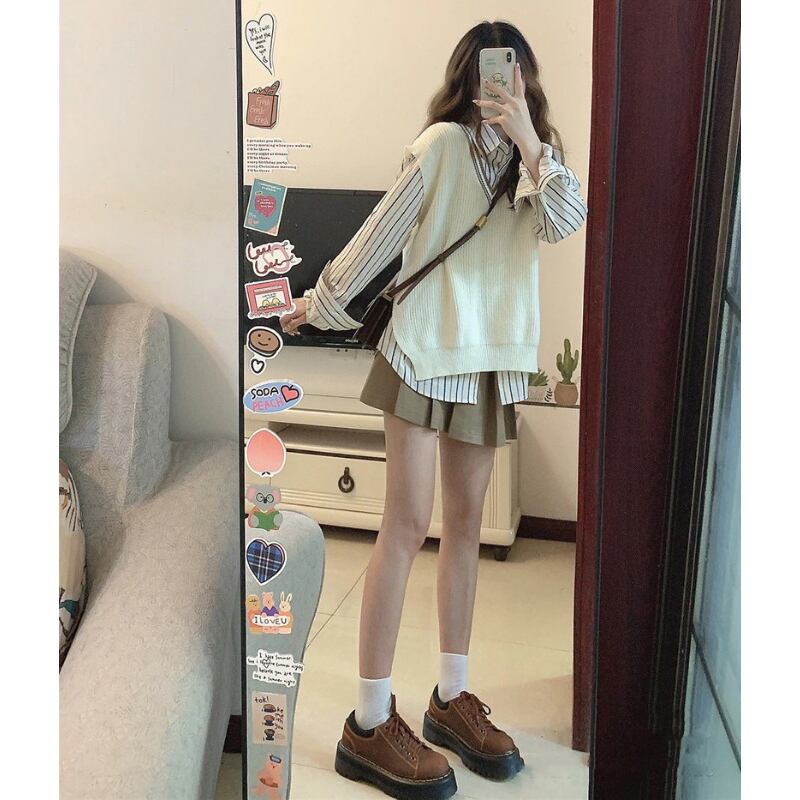 ニット ベスト ベスト女性の秋ストライプ v ネック セーター ルーズ フィット ノースリーブ ベスト ベスト シャツ ツーピース オータム 秋物 Vネック 7460081719490039 | framboise21