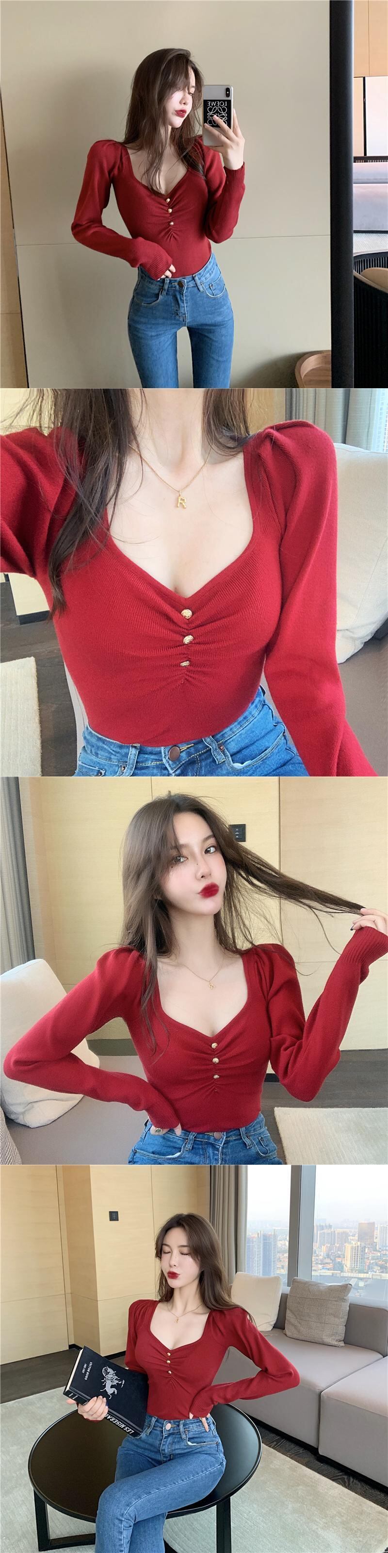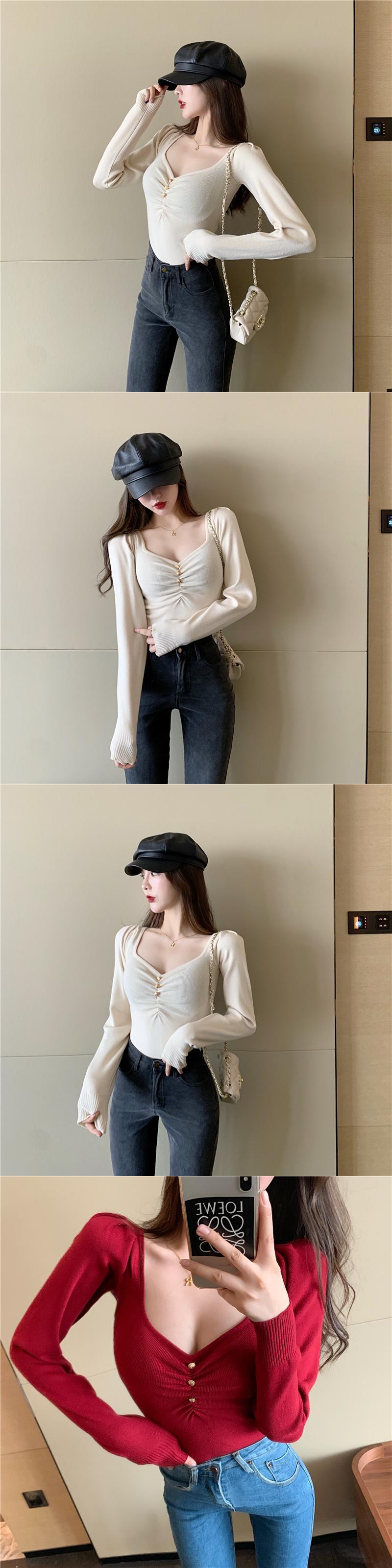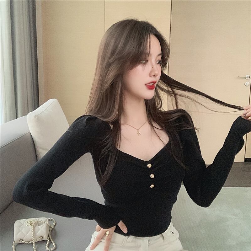 ローネック ボトムス シャツ レディース 秋冬 セクシー ニットセーター デザイン 鎖骨スクエアカラー 長袖 トップス ロング オータム 秋物 ウィンター 冬物 スクウェア 7460023157665136 | framboise21