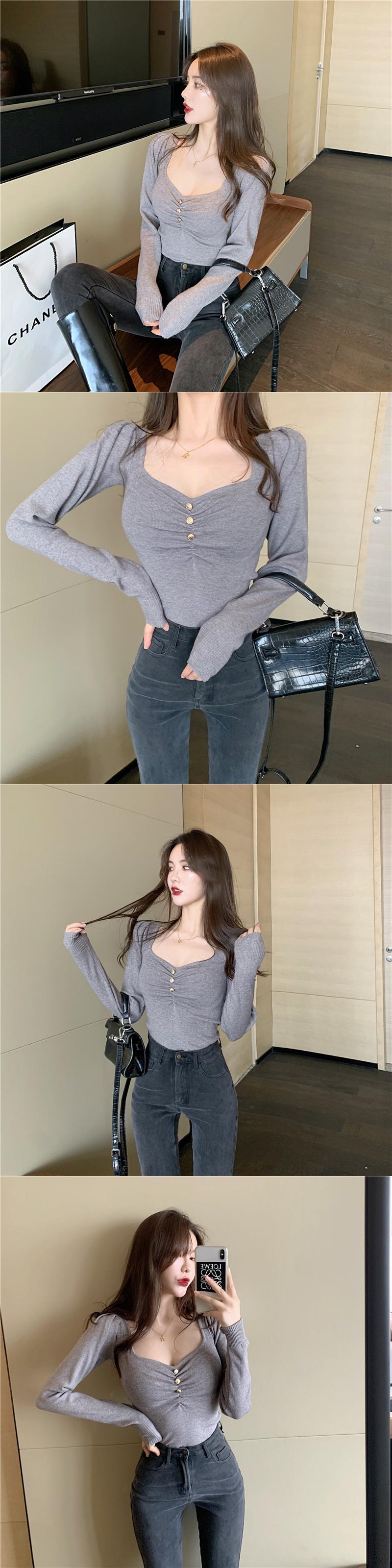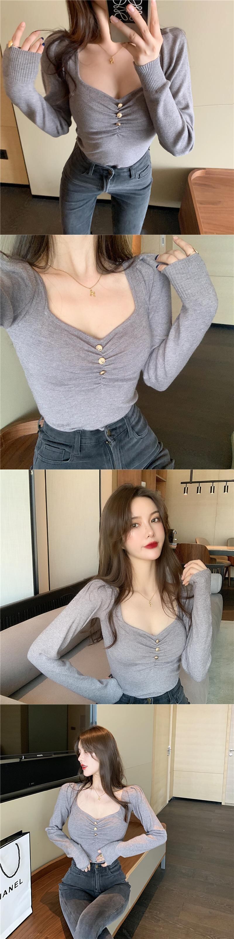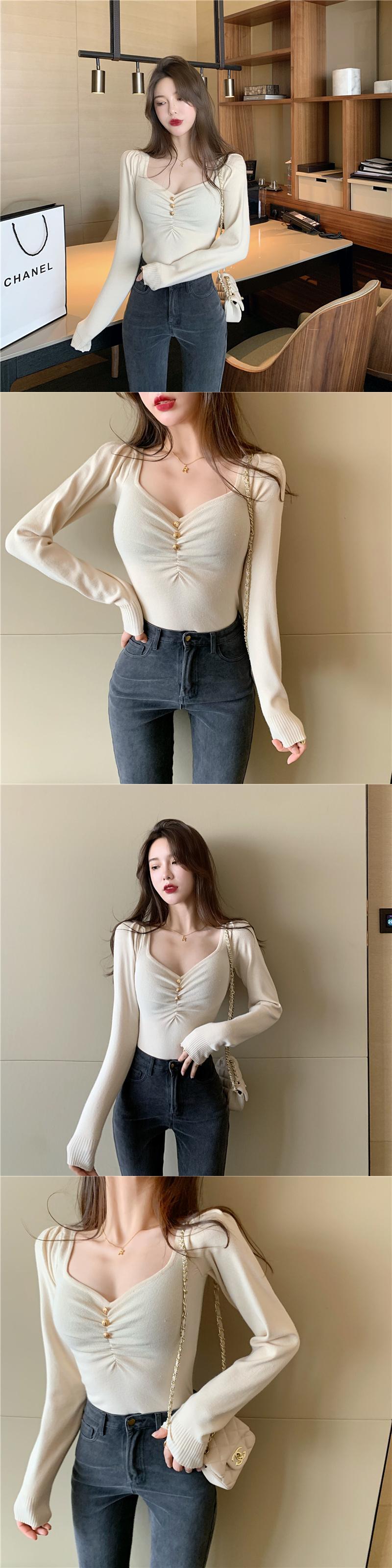 ローネック ボトムス シャツ レディース 秋冬 セクシー ニットセーター デザイン 鎖骨スクエアカラー 長袖 トップス ロング オータム 秋物 ウィンター 冬物 スクウェア 7460023157665136 | framboise21