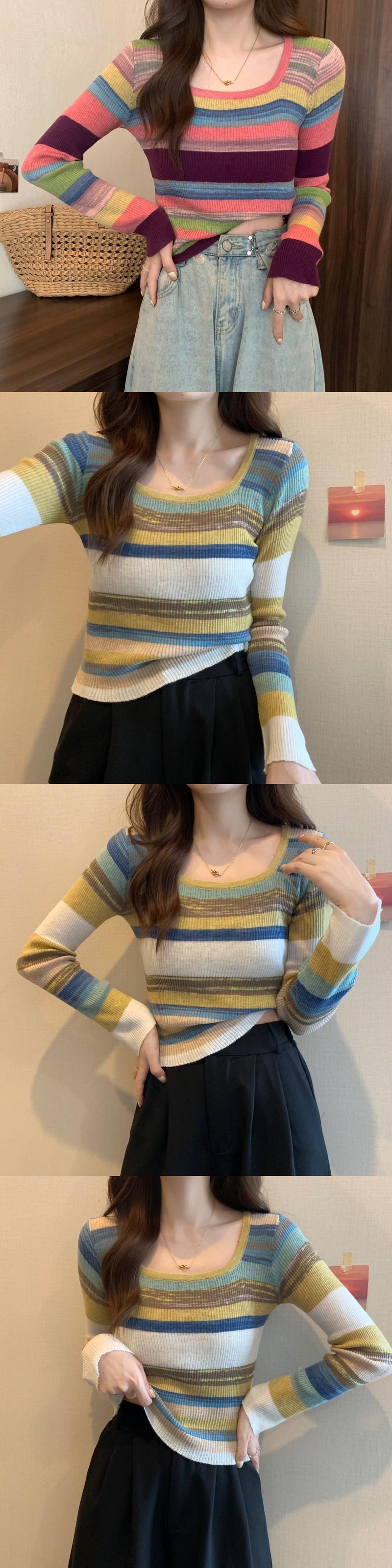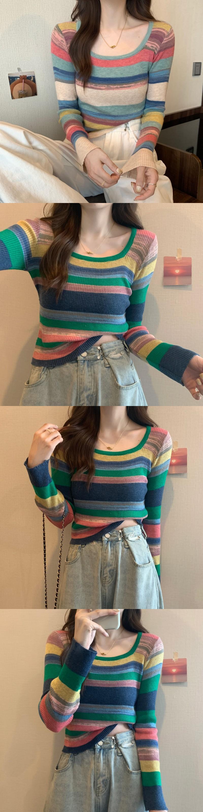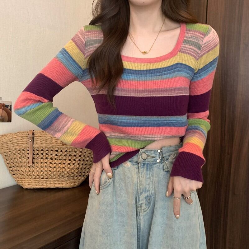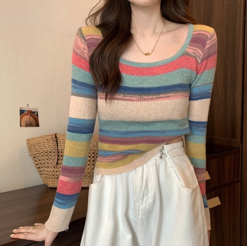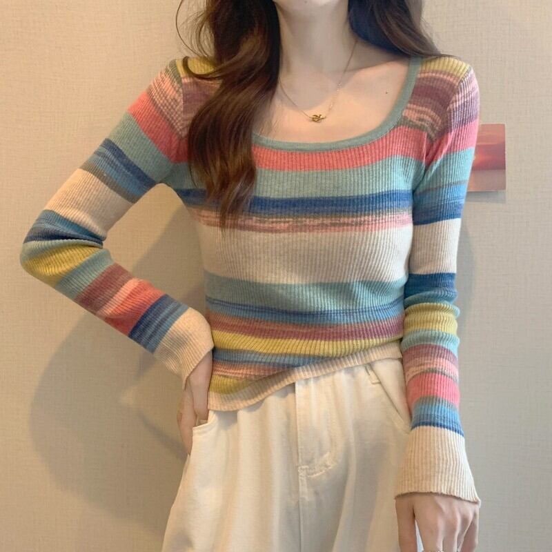 インナー ボトムス シャツ レディース 秋冬 レインボー ストライプ ニット セーター セーター デザイン スリム スリム ファッション 長袖 トップス ロング オータム 秋物 ウィンター 冬物 7460076005026041 | framboise21