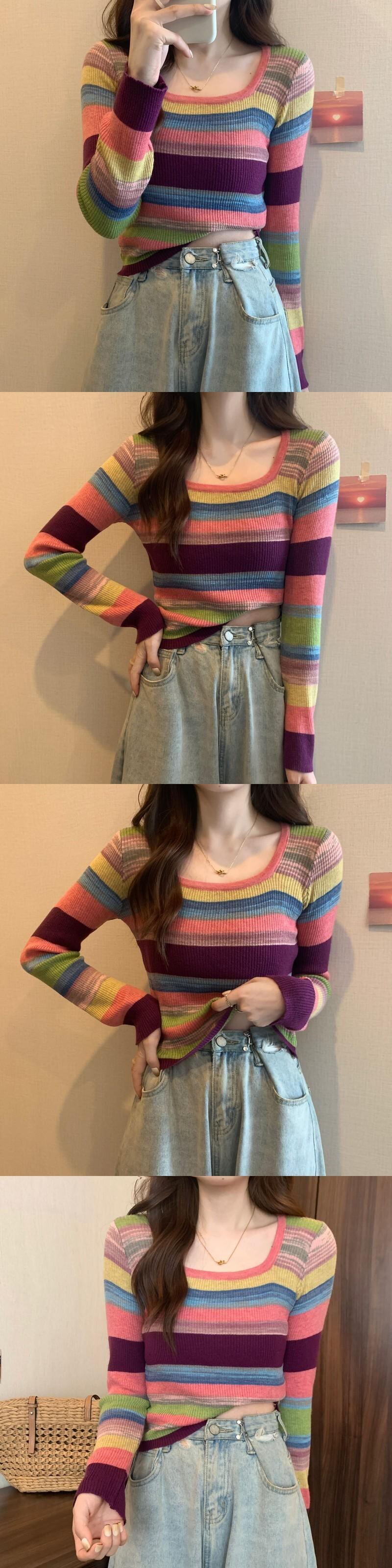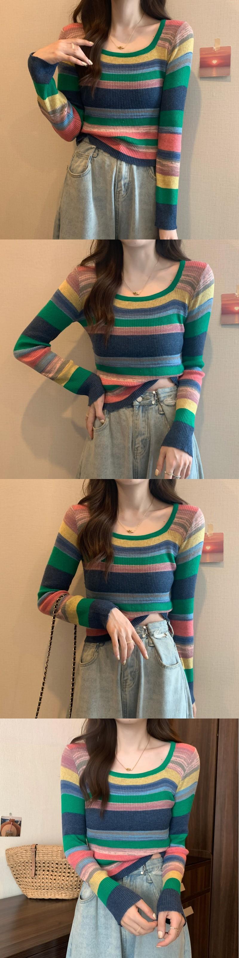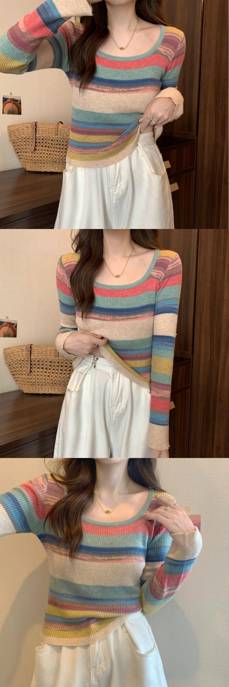 インナー ボトムス シャツ レディース 秋冬 レインボー ストライプ ニット セーター セーター デザイン スリム スリム ファッション 長袖 トップス ロング オータム 秋物 ウィンター 冬物 7460076005026041 | framboise21