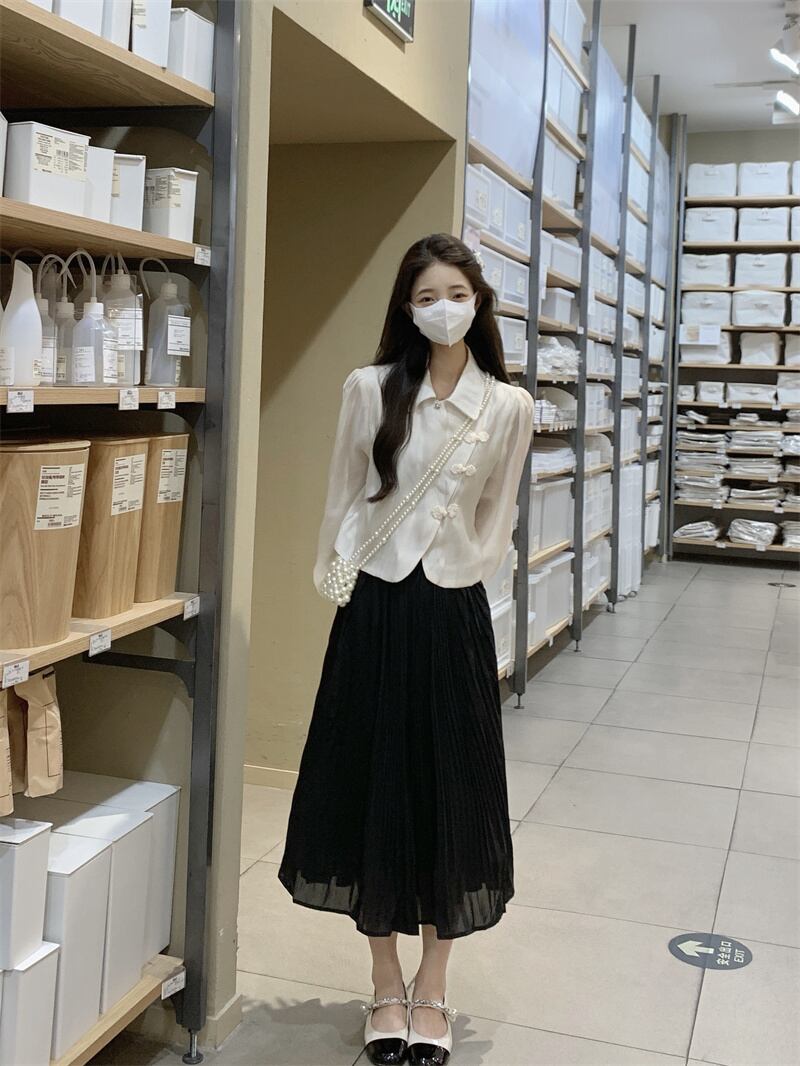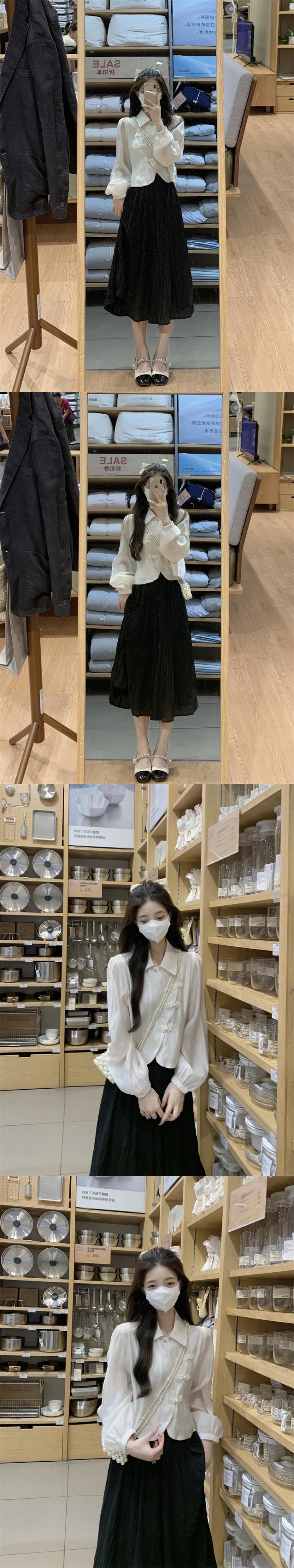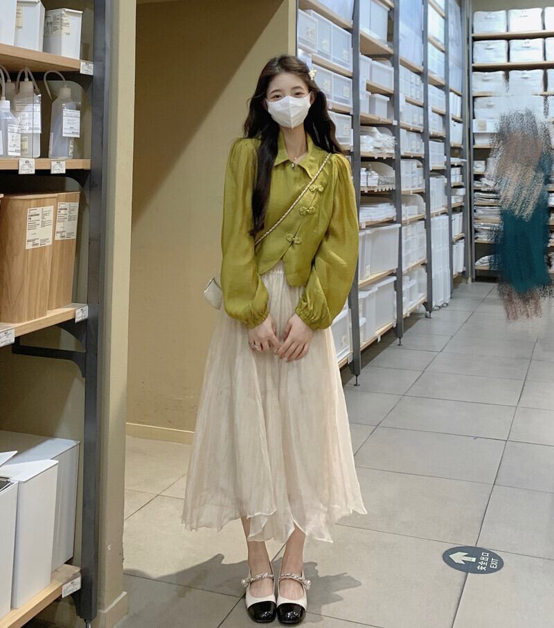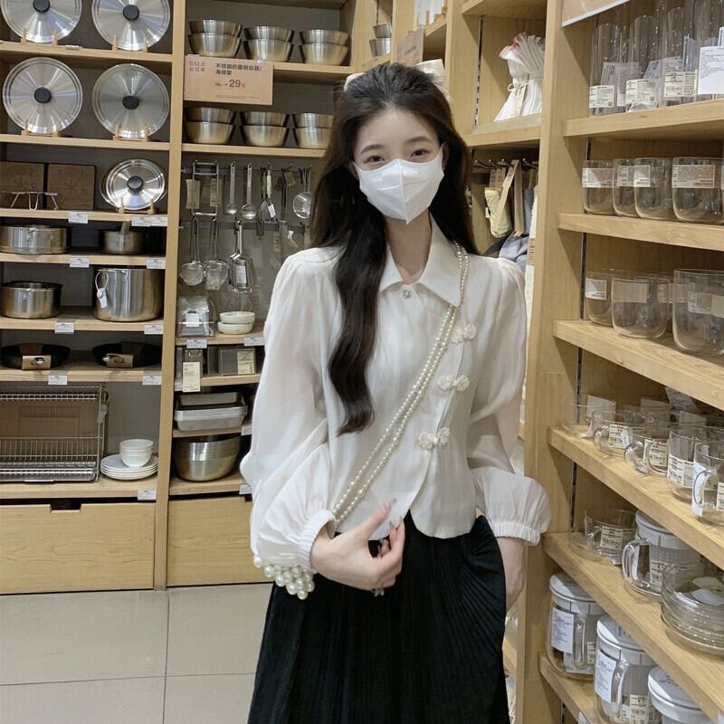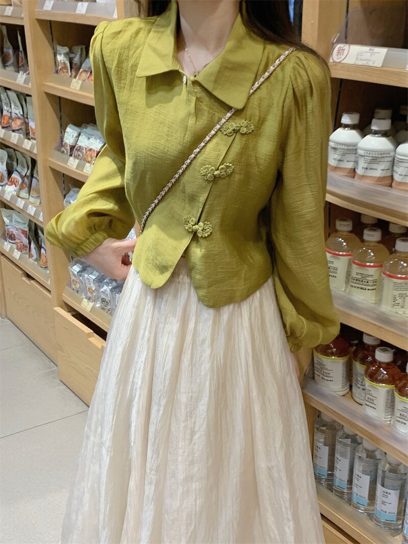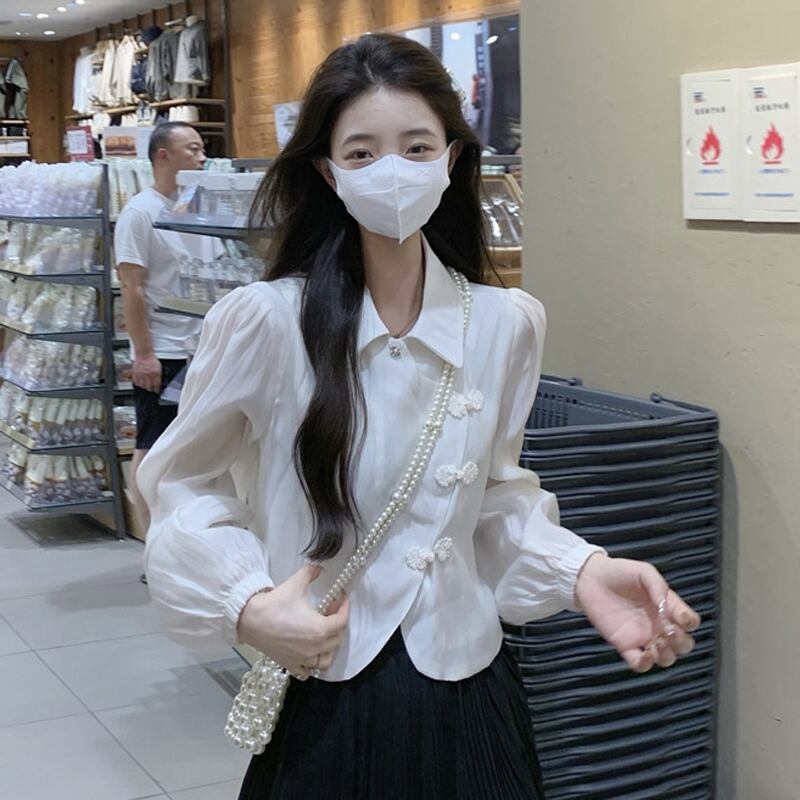 レトロな新しい中国風のボタン付きシャツの女性の長袖の初秋の新しいハイエンドのデザインの気質のシックなショートトップ ロング オータム 秋物 7460029652881939 | framboise21