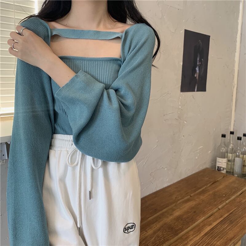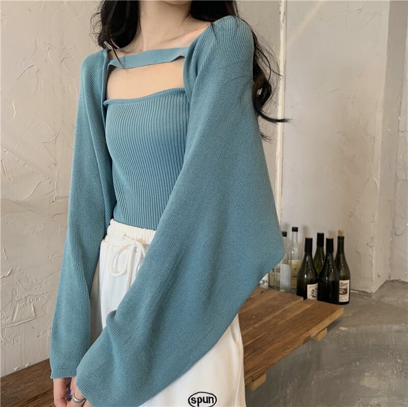 ニット カーディガン セーター レディース 秋冬 ショート ショール ブラウス コート ゆったり アウター インナー サスペンダー トップス 2点セット オータム 秋物 ウィンター 冬物 7460071130576425 | framboise21