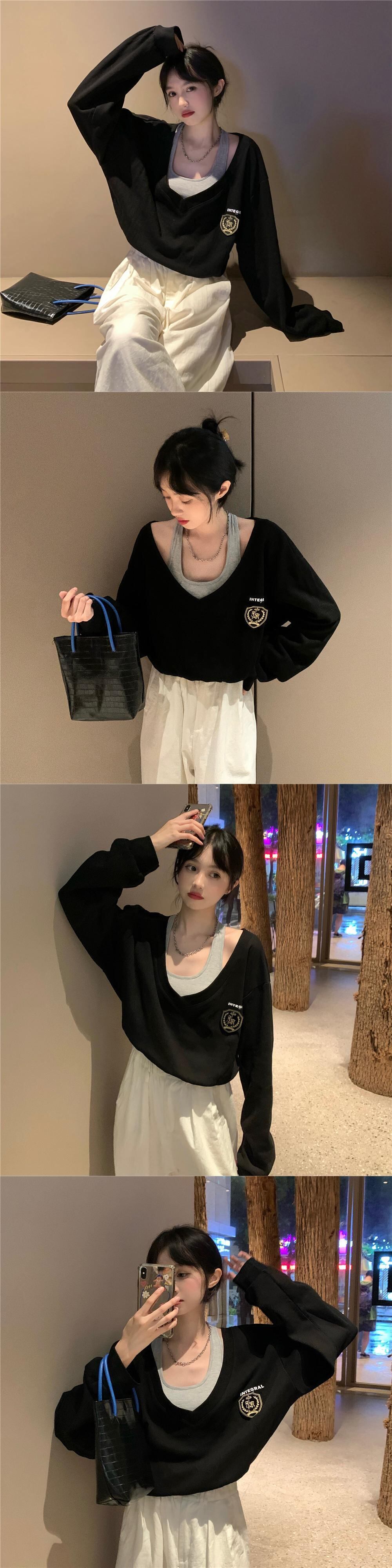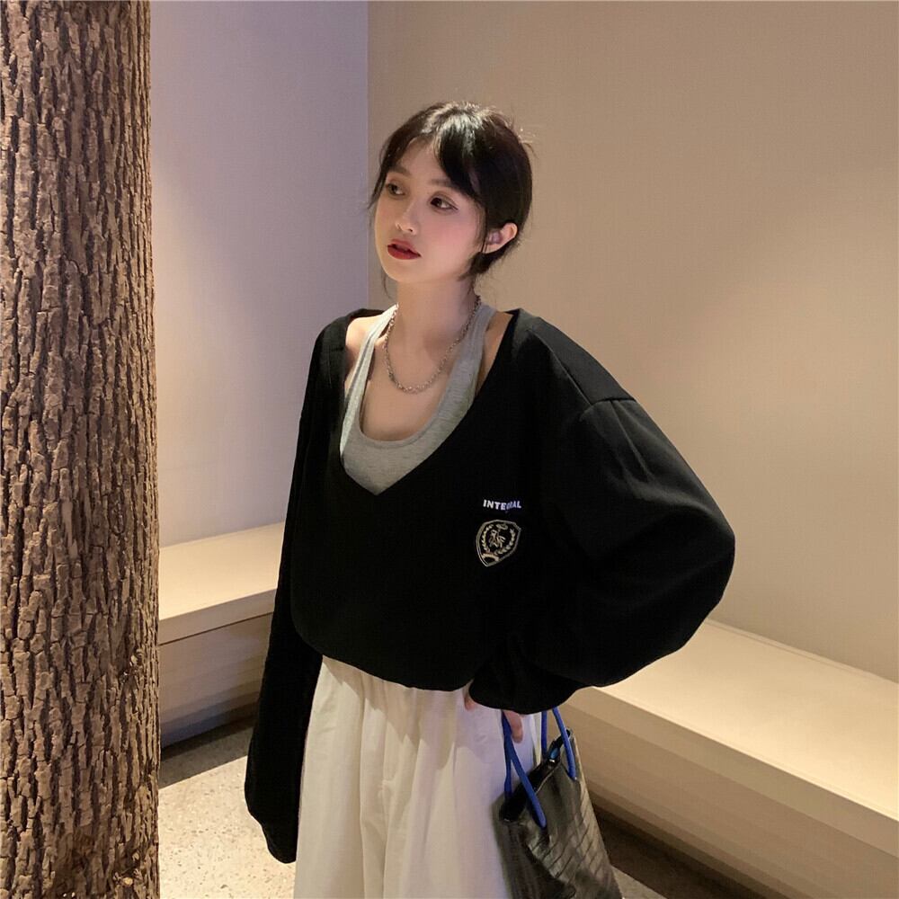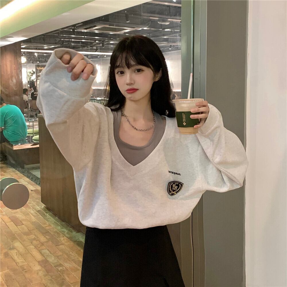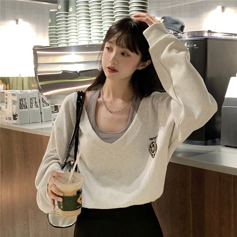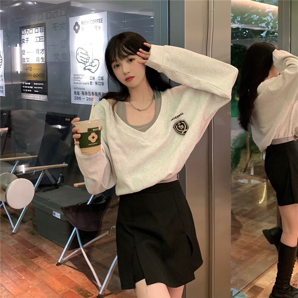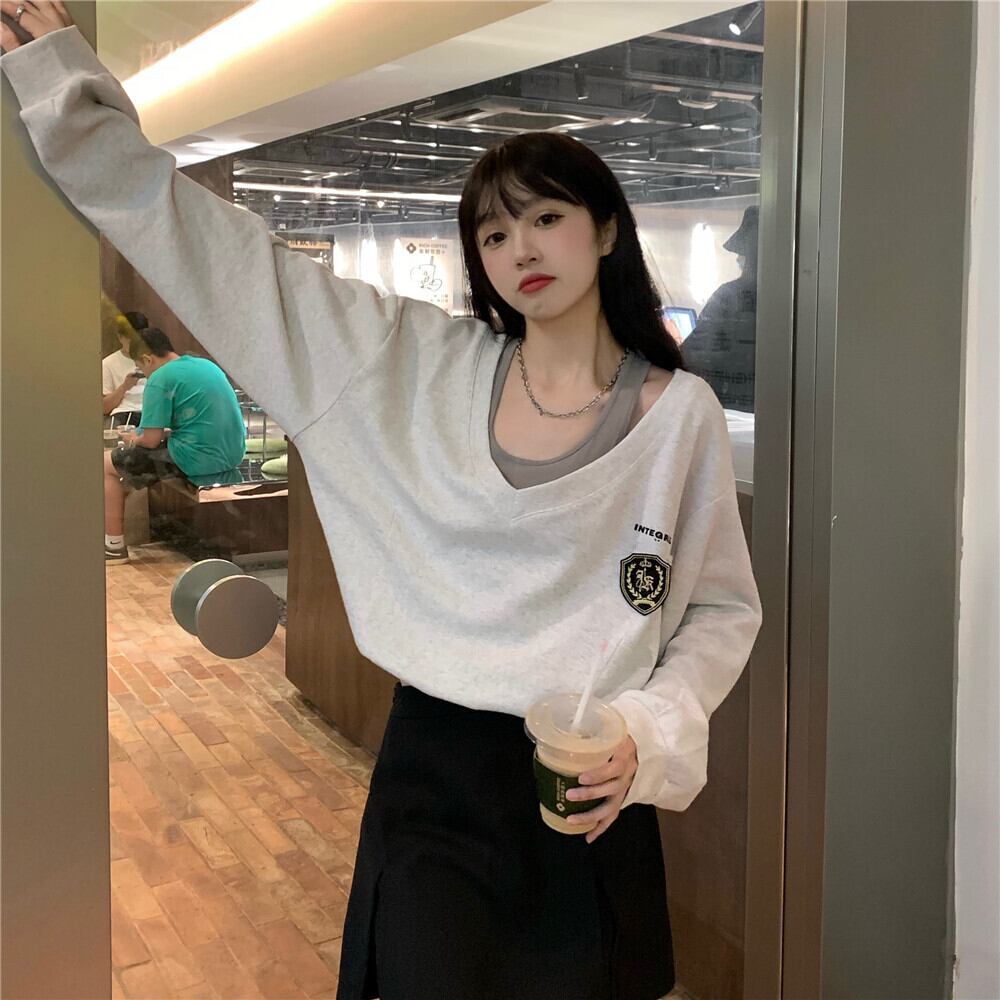グレーショートセーターレディース春秋2022年新デザインセンス小さめフェイクツーピース長袖トップストレンドイン ロング スプリング 春物 オータム 秋物 7460064835129232 | framboise21
