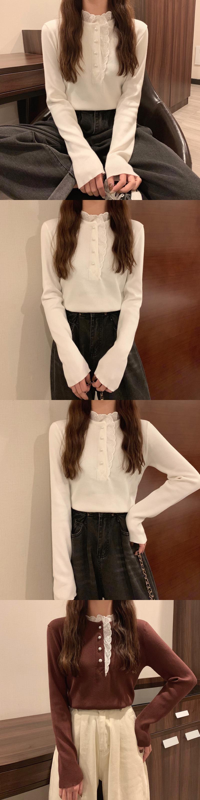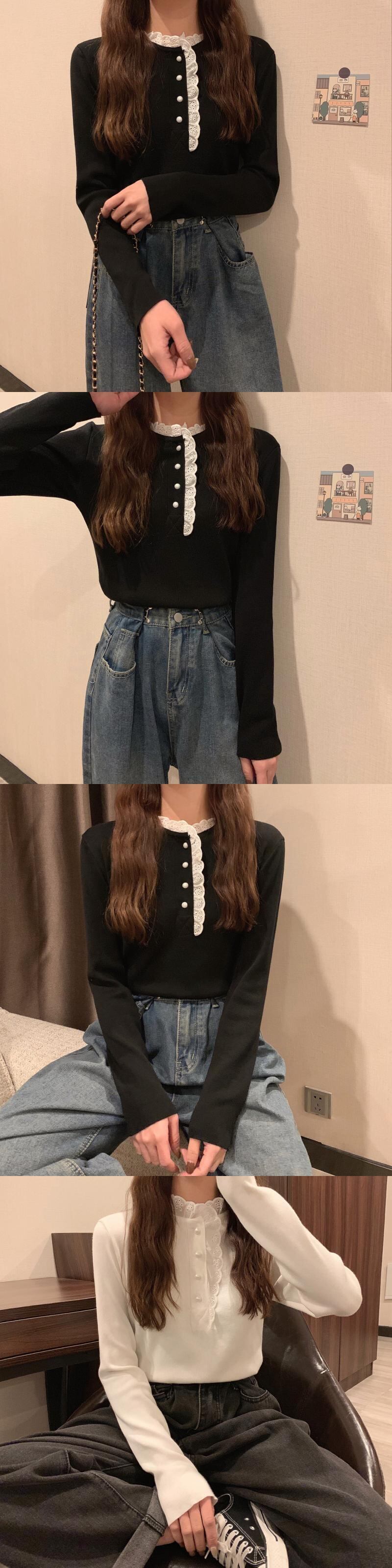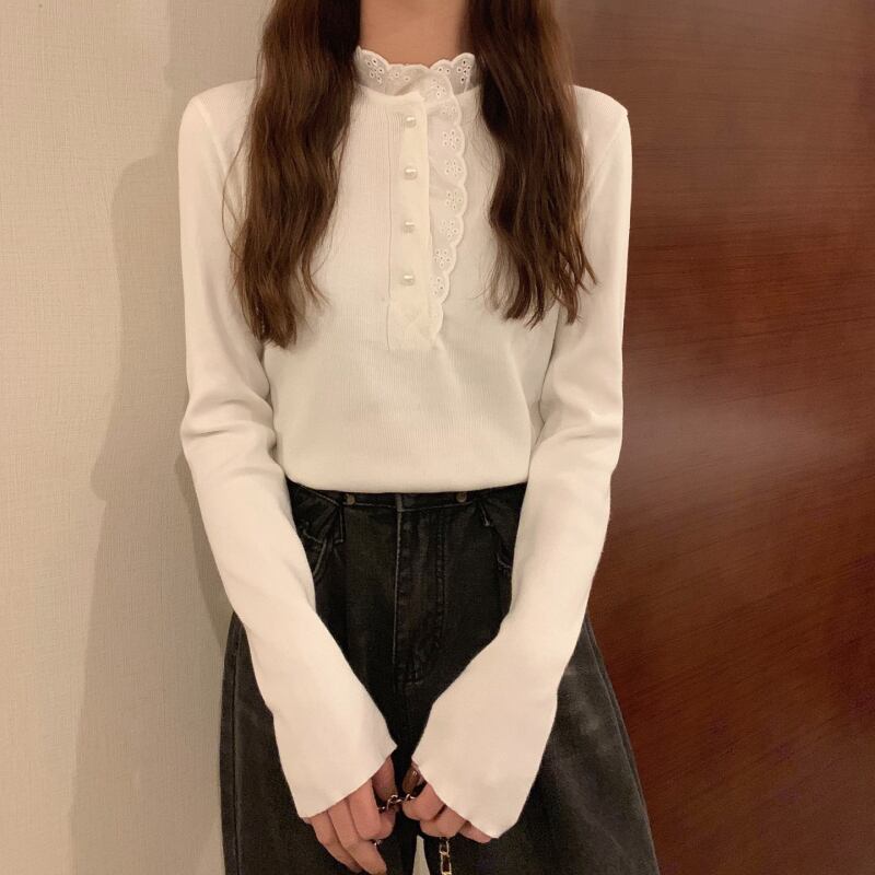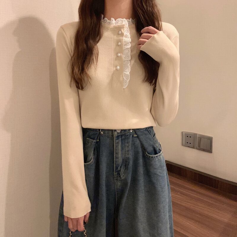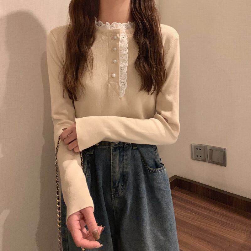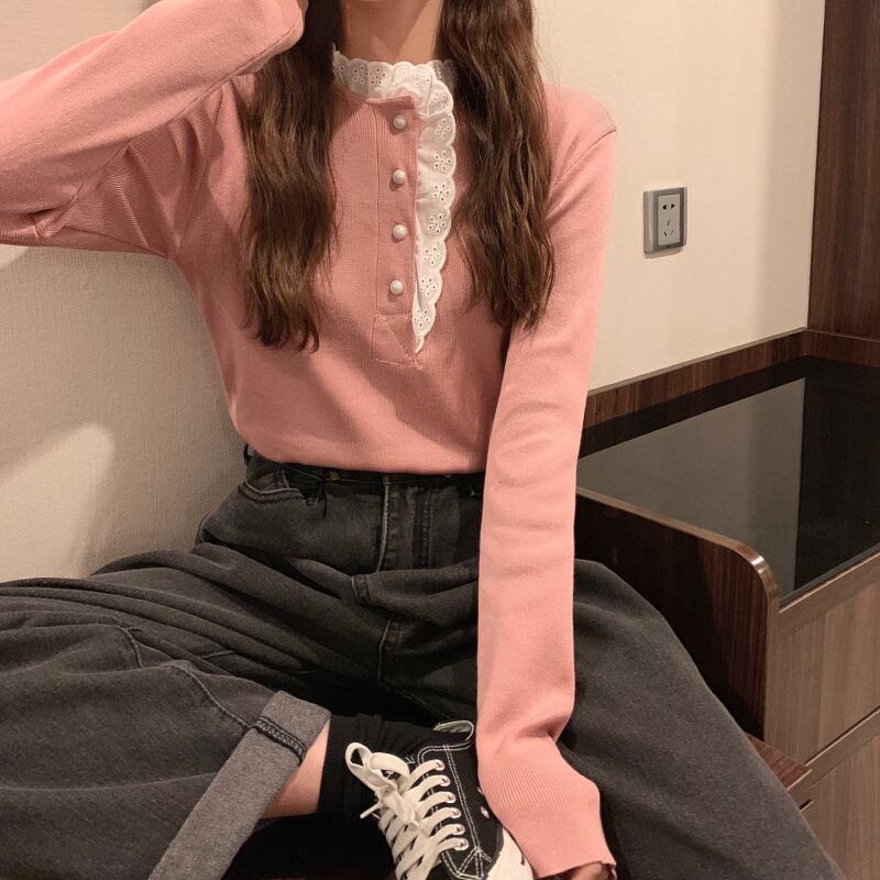 レース ボトムス シャツ レディース 秋冬 レース ニット セーター デザイン センス スーツ 付き エインスタイル ラウンドネック 長袖 トップス ブラック ロング オータム 秋物 ウィンター 冬物 Oネック 7460095377053982 | framboise21