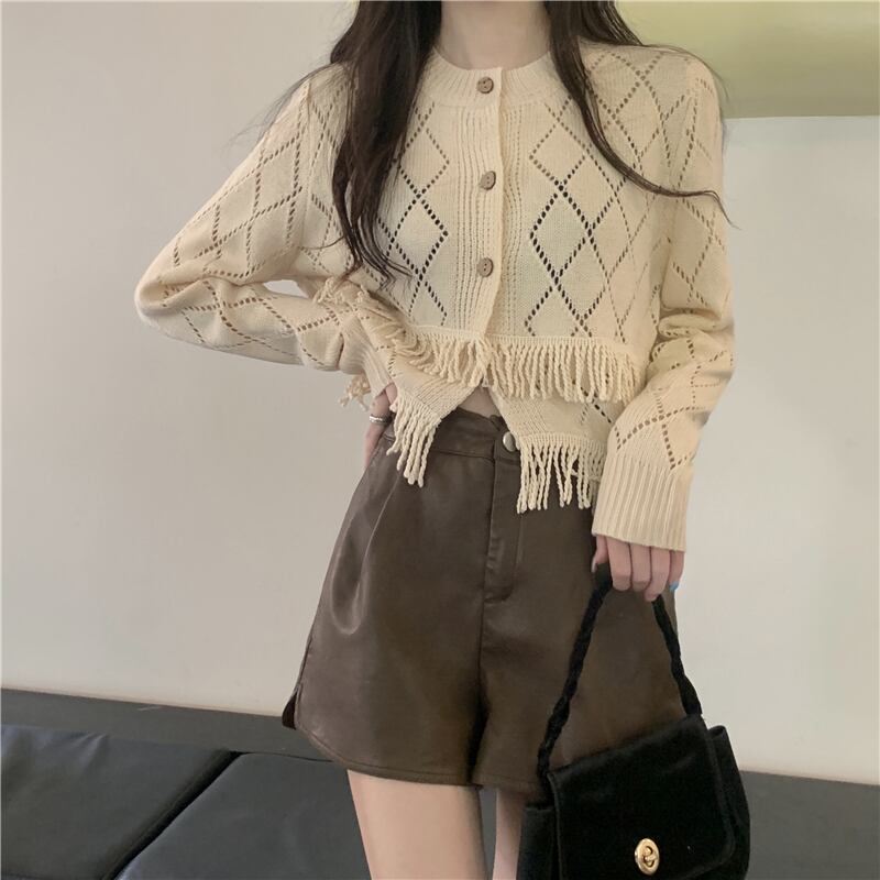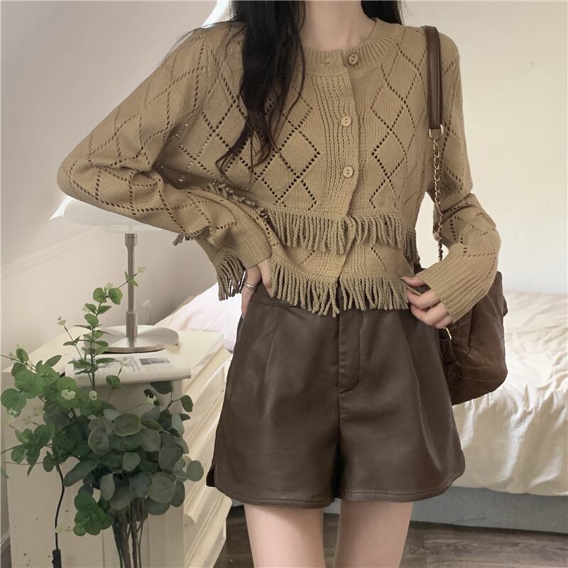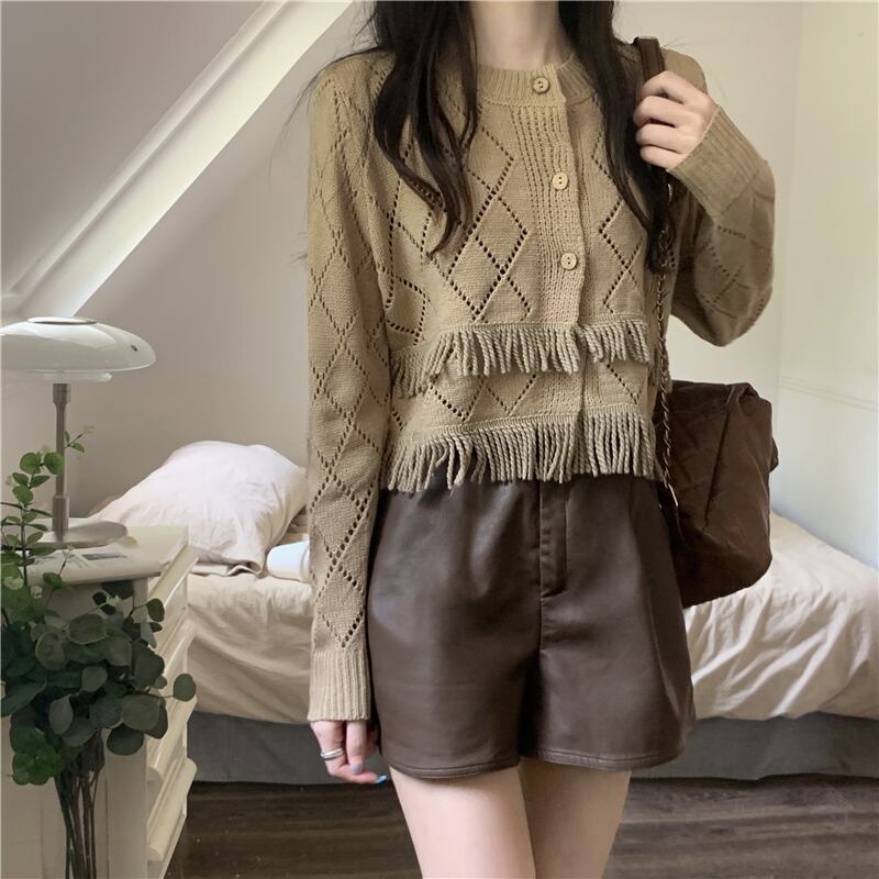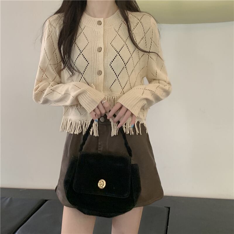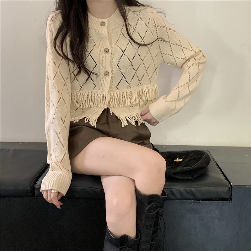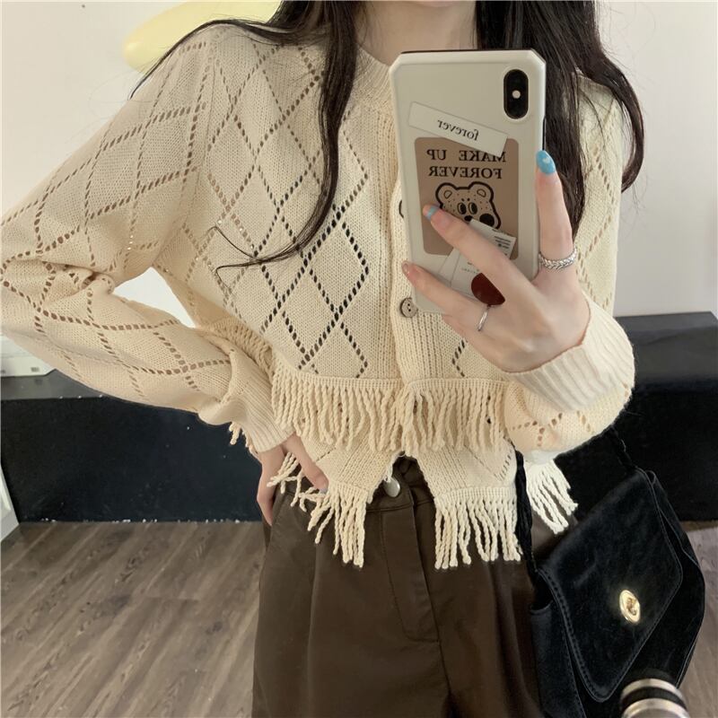 アプリコット セーター コート レディース 秋冬 中空 ショート ニット カーディガン デザイン ゆったり アウター フリンジ 長袖 トップス ロング オータム 秋物 ウィンター 冬物 7460023295344785 | framboise21