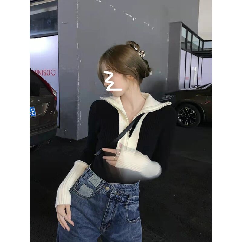 ブラック ニット ボトムス シャツ レディース 秋冬 ウエスタン スタイル デザイン スリムフィット ジッパー ハーフ タートルネック セーター 長袖 トップ ロング オータム 秋物 ウィンター 冬物 7460040596068087 | framboise21