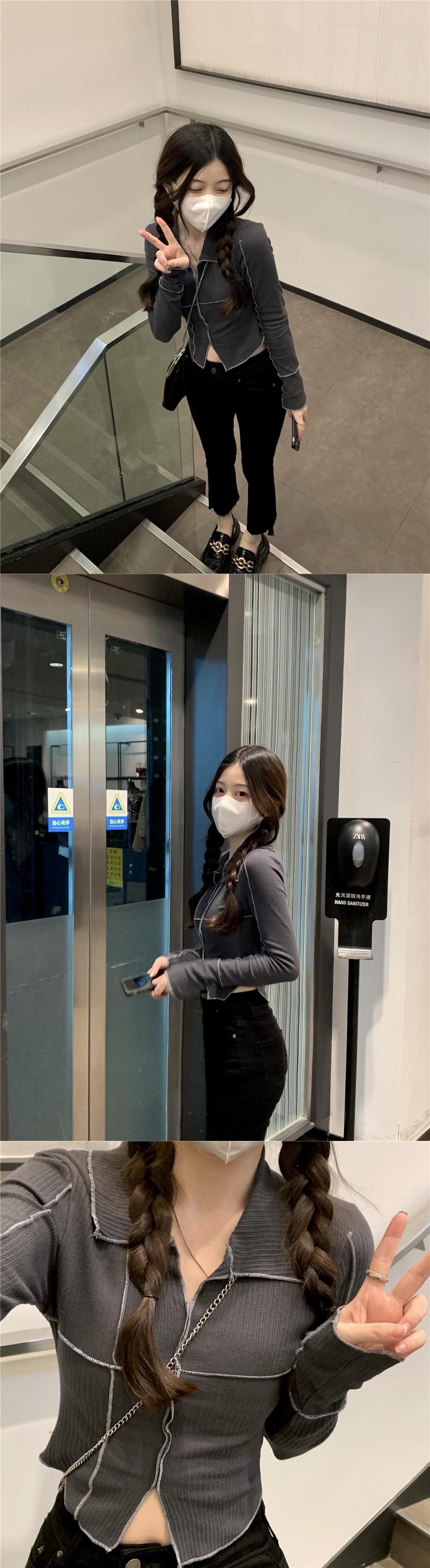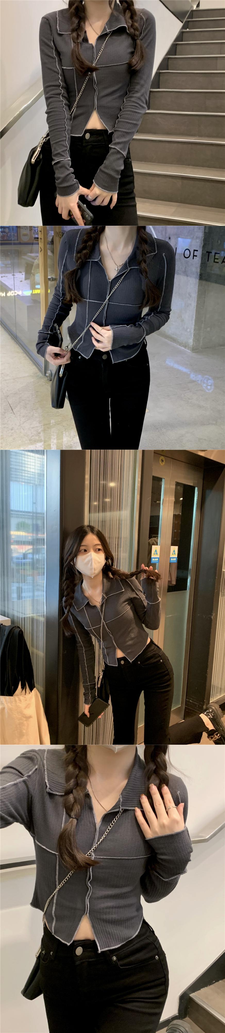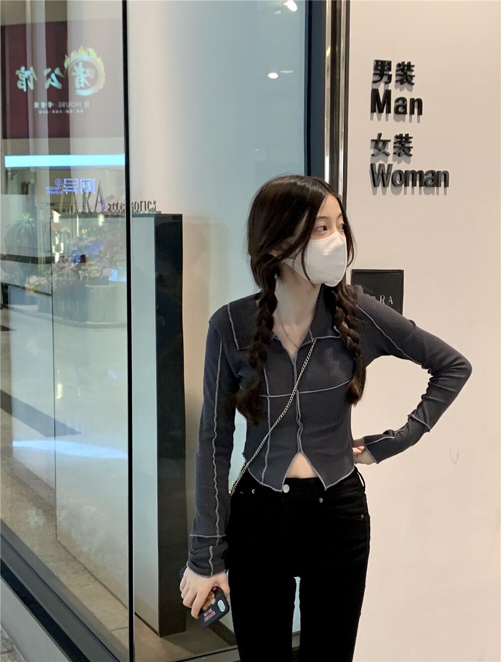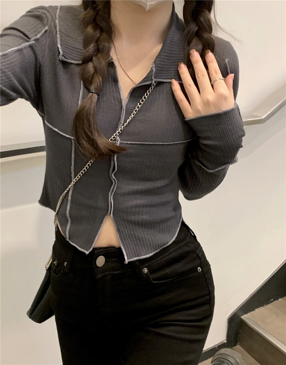 2022 春と秋の新しいポロ襟長袖 t シャツ女性の西洋スタイル デザイン スリム ショート セクション純粋な欲望トップ イン ロング スプリング 春物 オータム 秋物 Tシャツ ピュア 7460018093107239 | framboise21