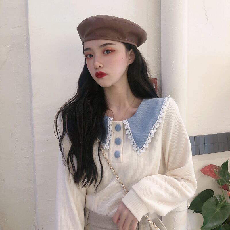 ベージュ プルオーバー セーター レディース 春秋 2022年新作 スウィート デザイン ゆったり 薄手 ドールカラー 長袖 上着 ロング 大人ガーリー キュート カジュアル スプリング 春物 オータム 秋物 7460086198529576 | framboise21