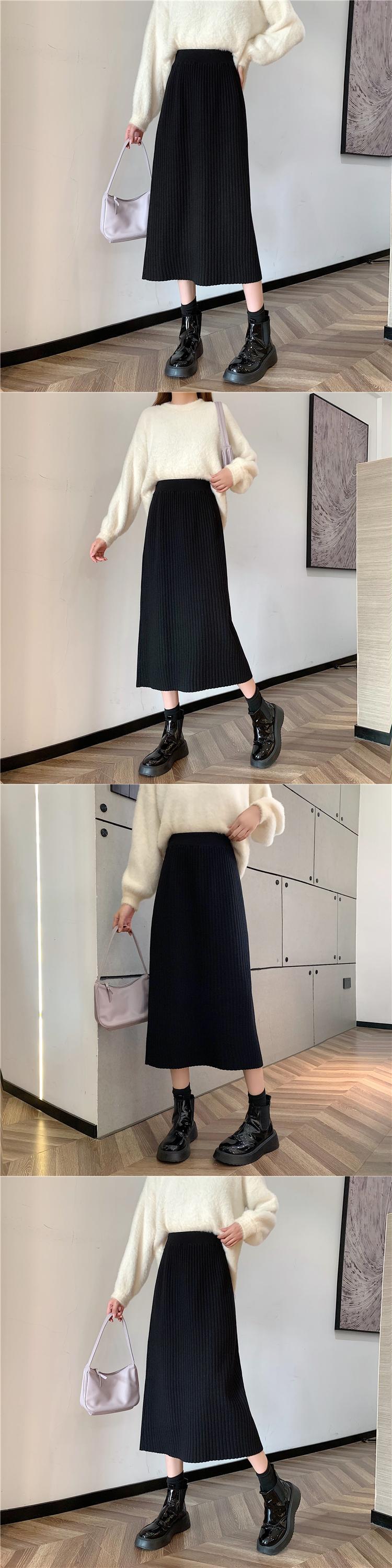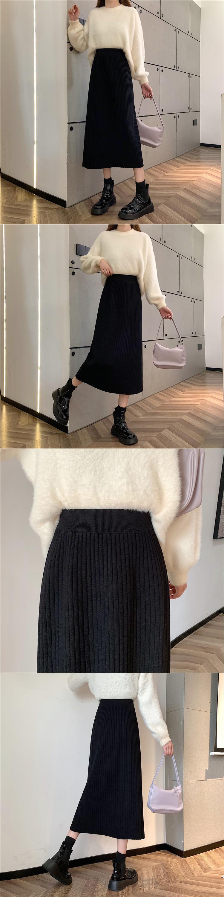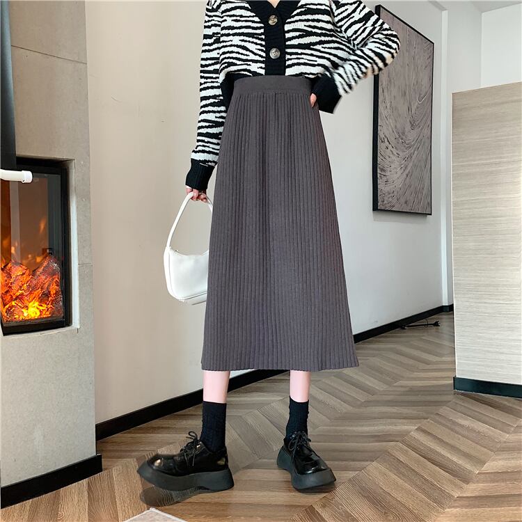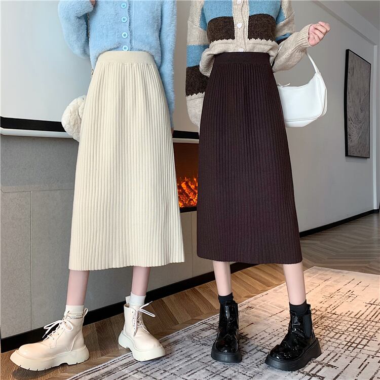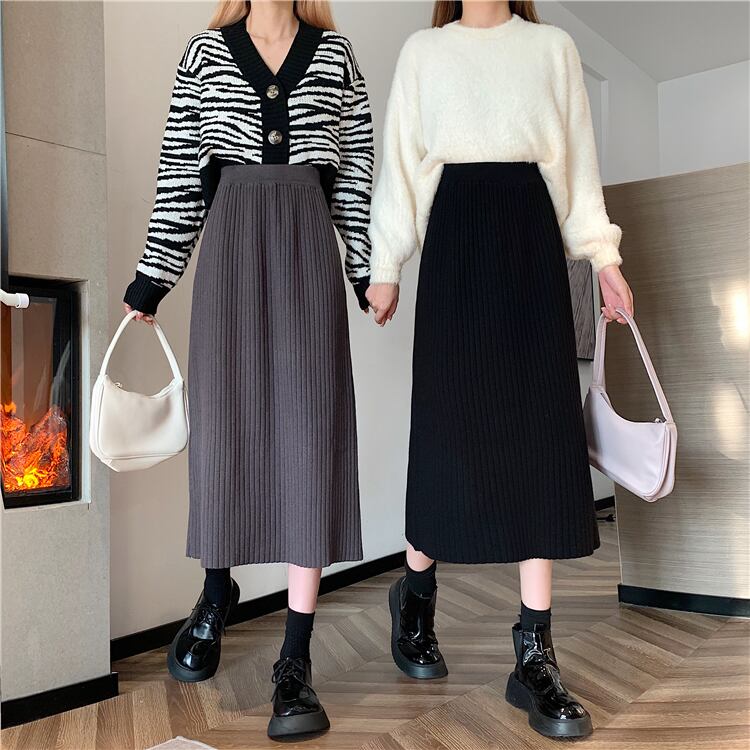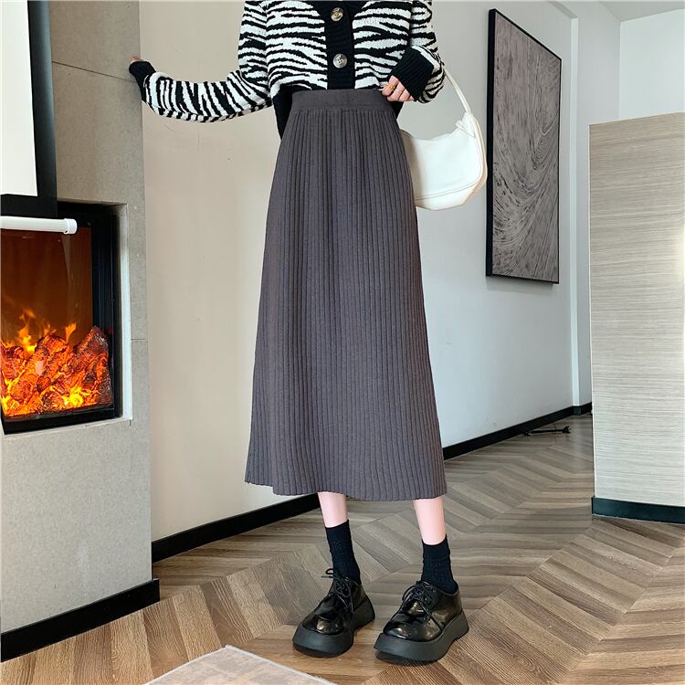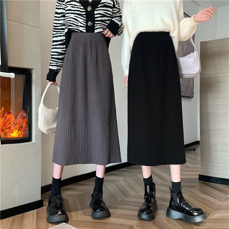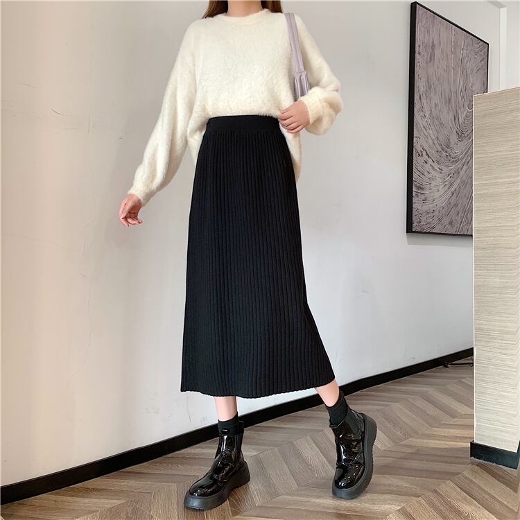 梨型黒ニットスカートレディース秋冬ハイウエストバッグヒップAラインロングスカートワンステップスカート小 ハイウェスト ブラック オータム 秋物 ウィンター 冬物 7460023177671761 | framboise21