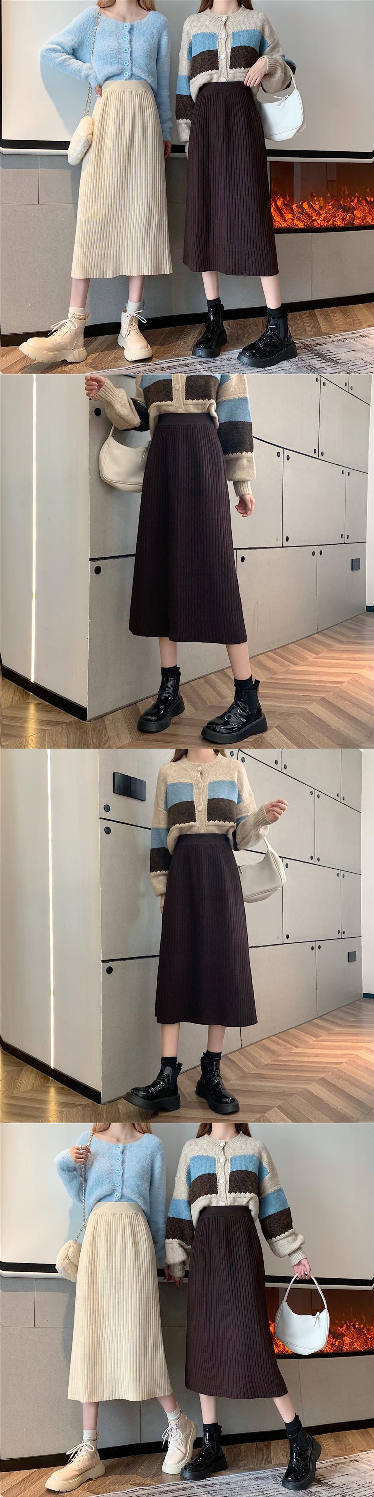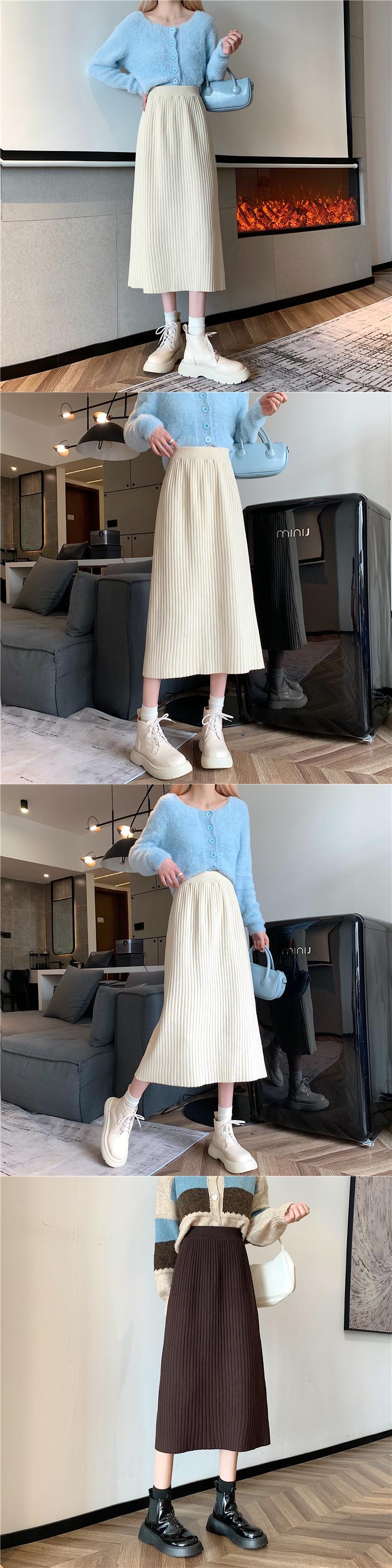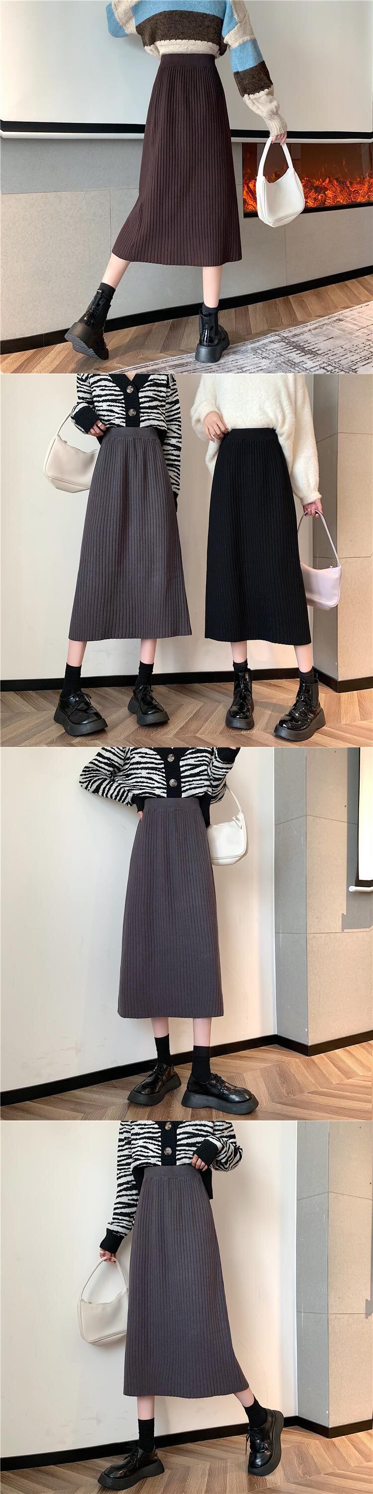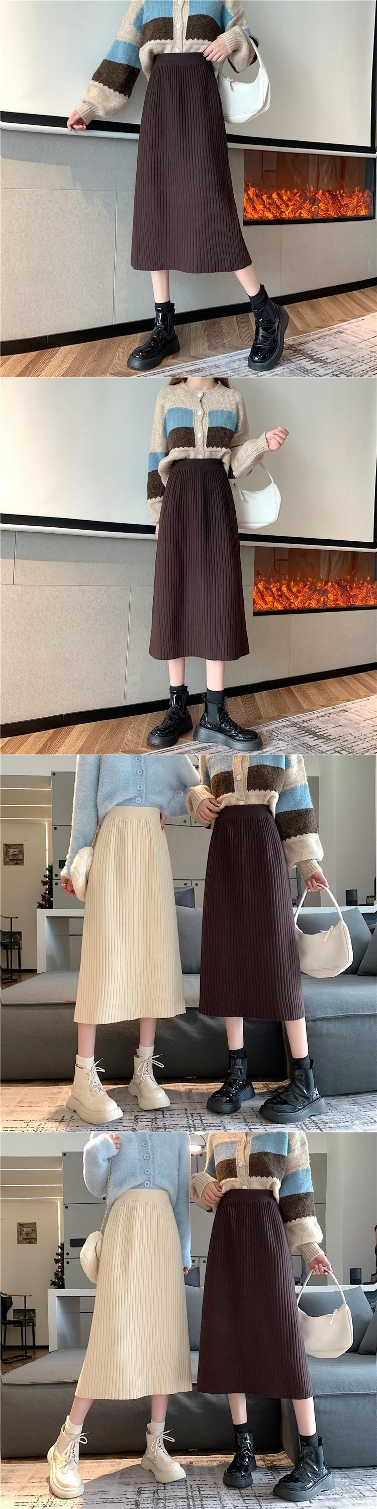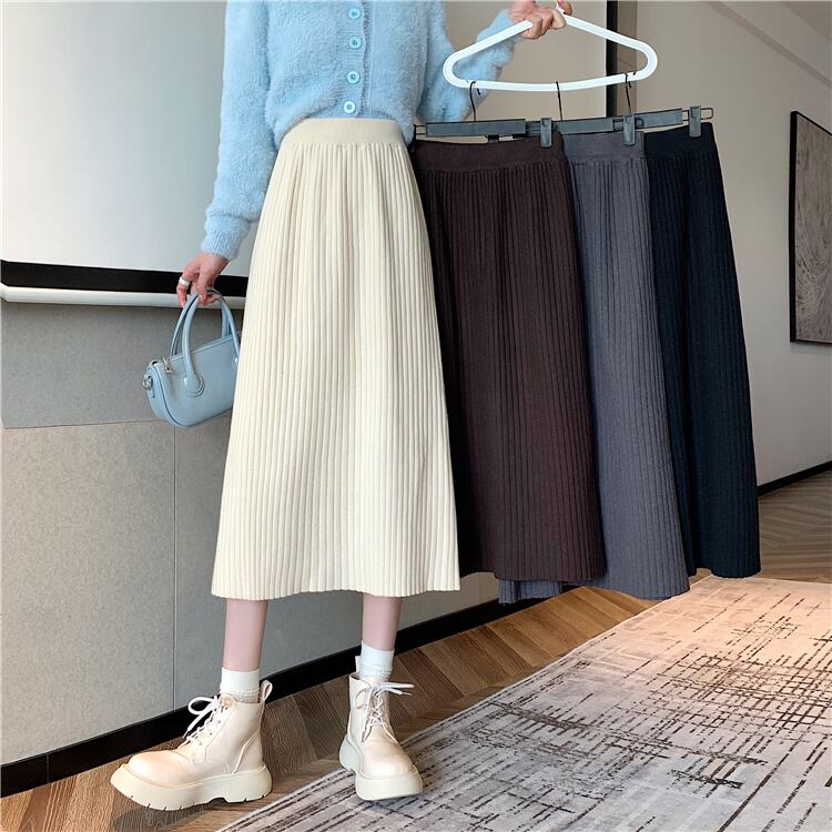 梨型黒ニットスカートレディース秋冬ハイウエストバッグヒップAラインロングスカートワンステップスカート小 ハイウェスト ブラック オータム 秋物 ウィンター 冬物 7460023177671761 | framboise21
