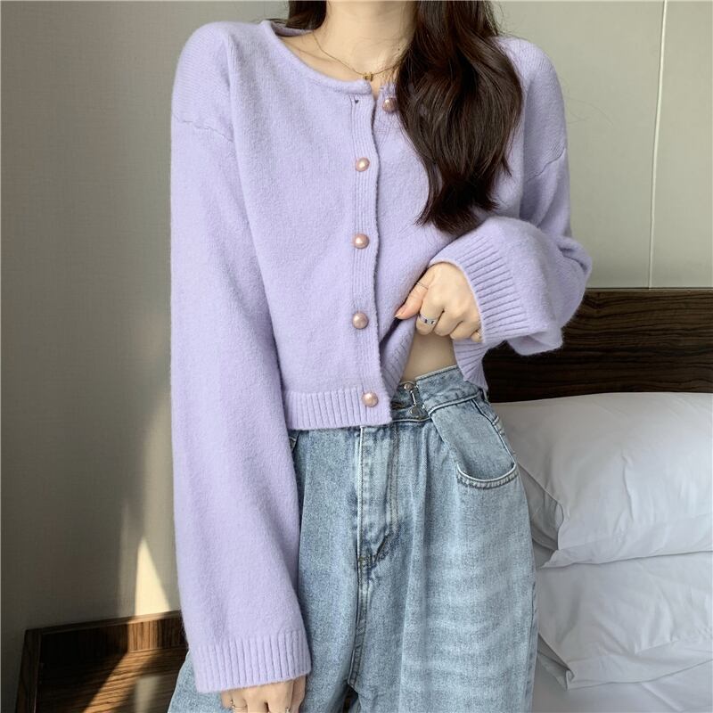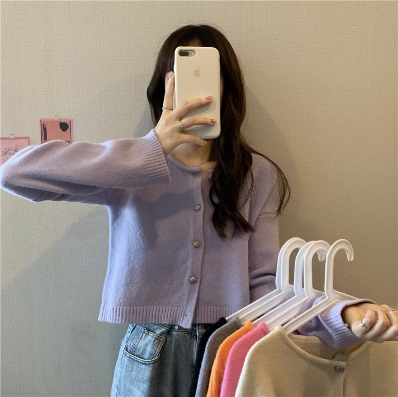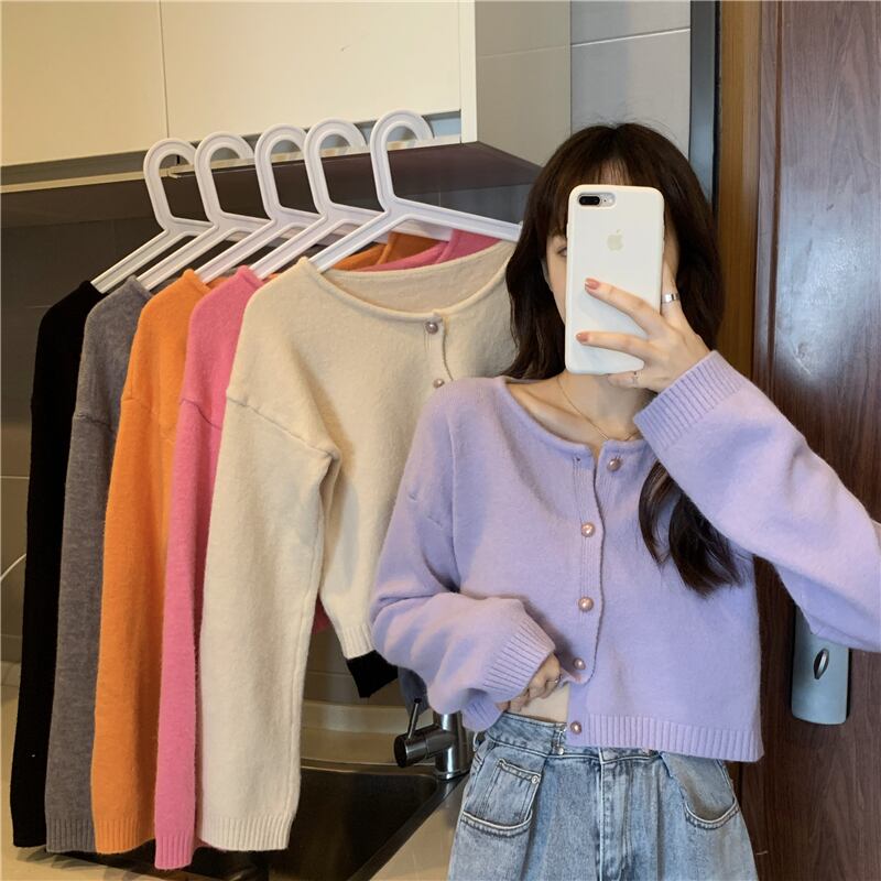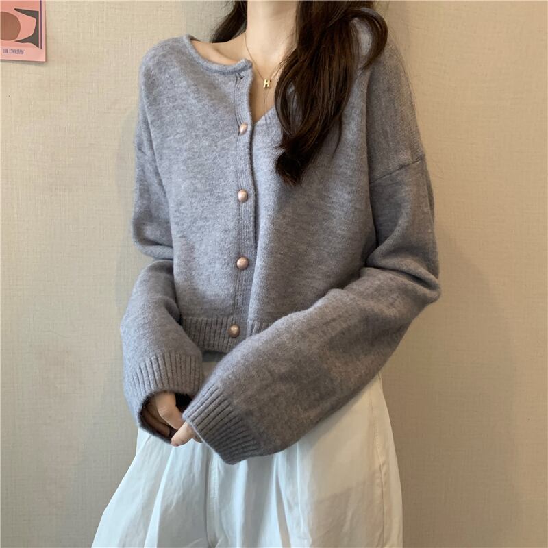 ハイウエストワイドレッグパンツとショート長袖ニットトップ2022年初秋の新しいルーズカーディガンセータージャケット女性 ロング オータム 秋物 746009595664248 | framboise21