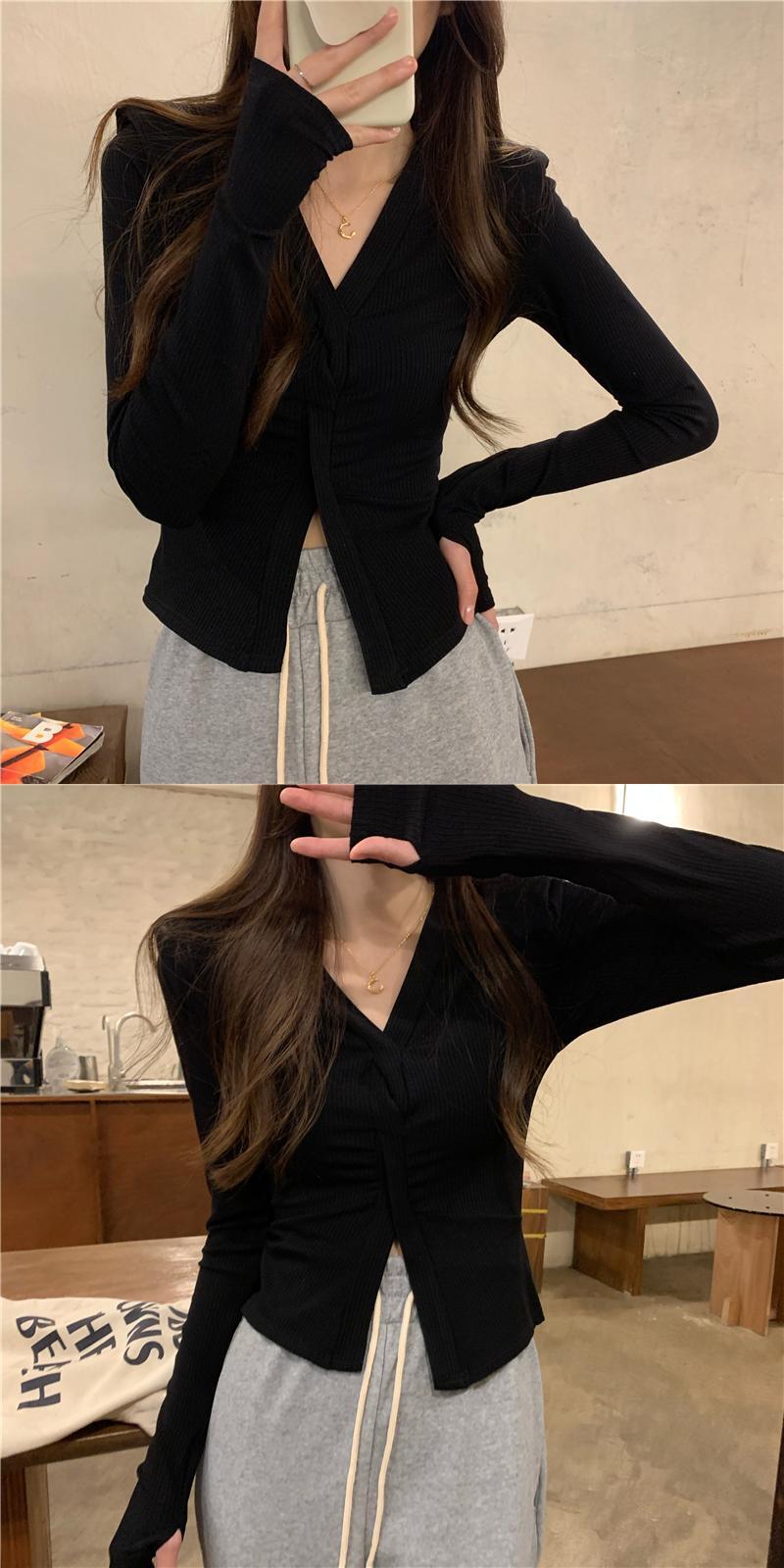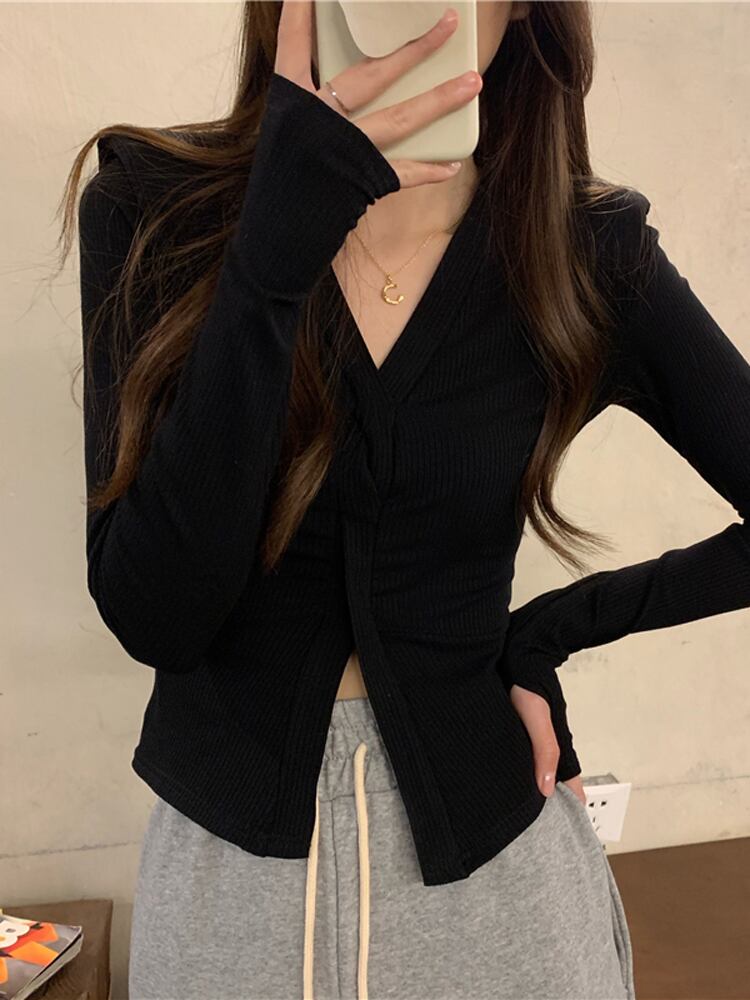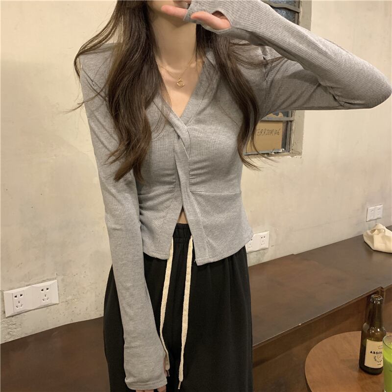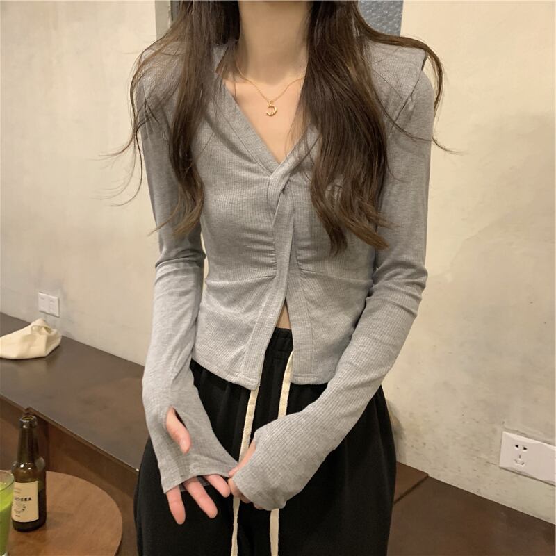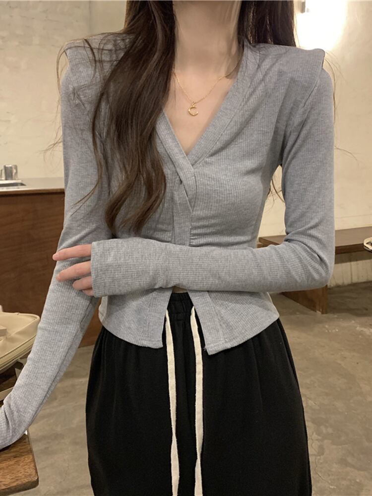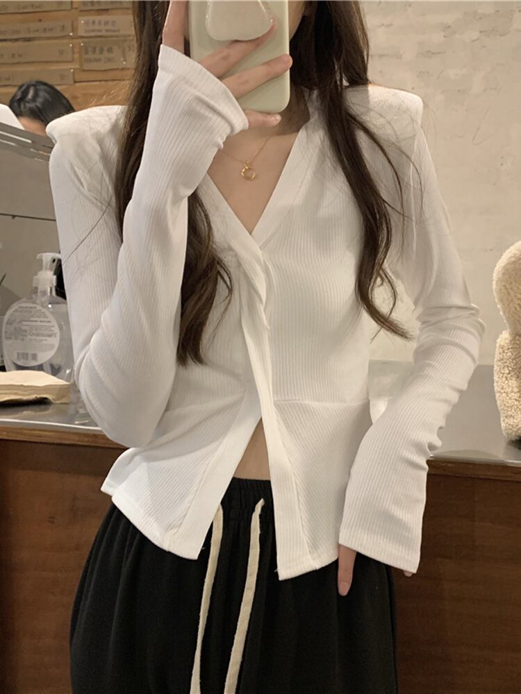肩パット 長袖 トップス レディース 秋 インナー ローネック ボトムス シャツ デザイン 洋風 セクシー イレギュラー スリット tシャツ ロング オータム 秋物 746003009357062 | framboise21