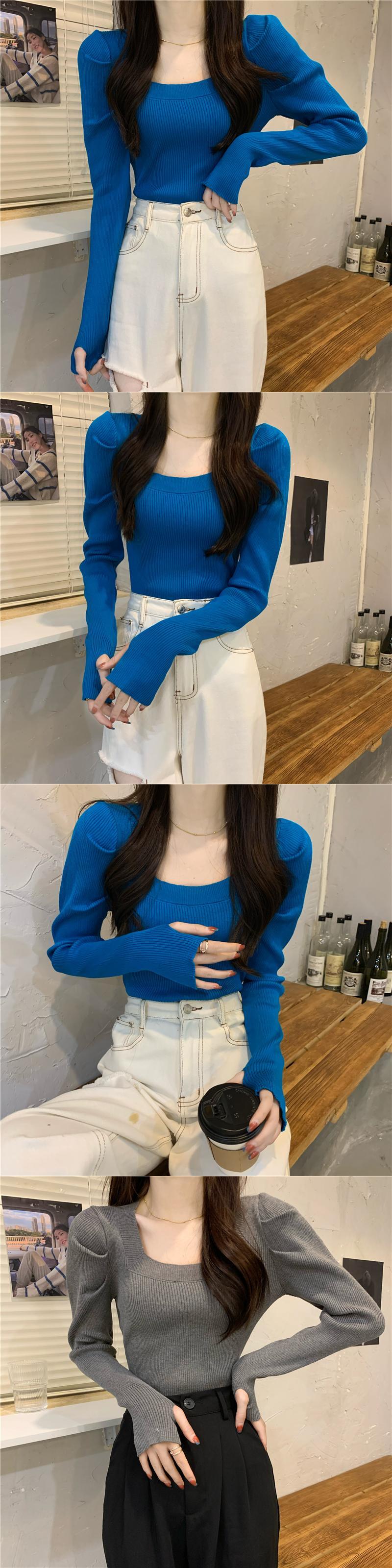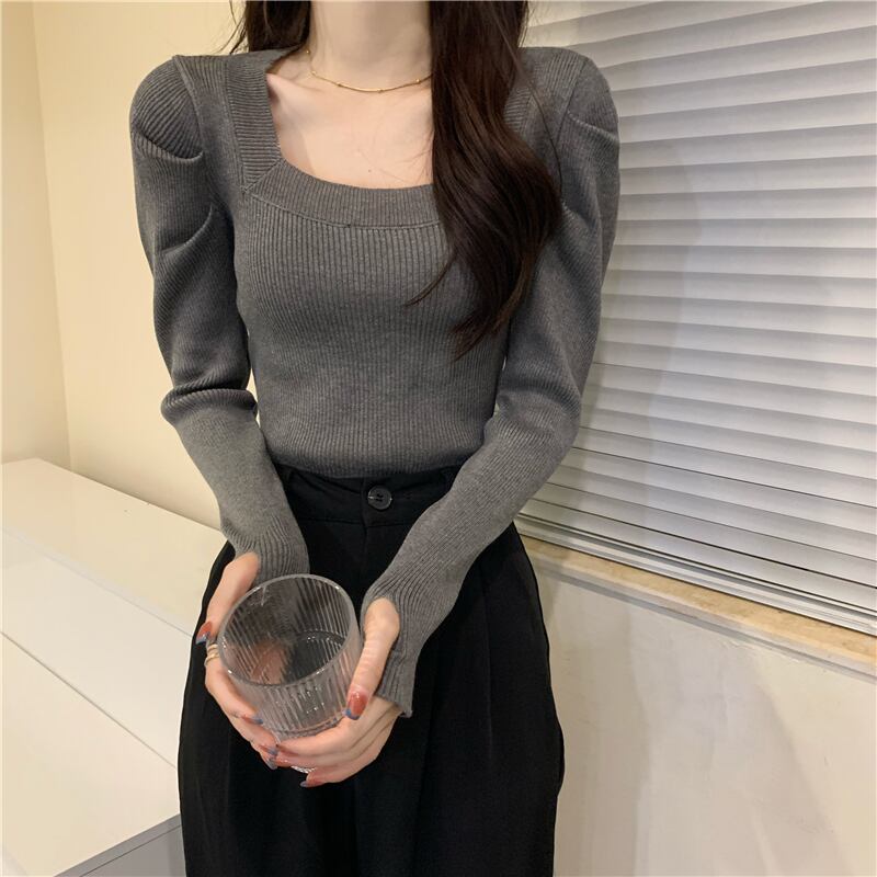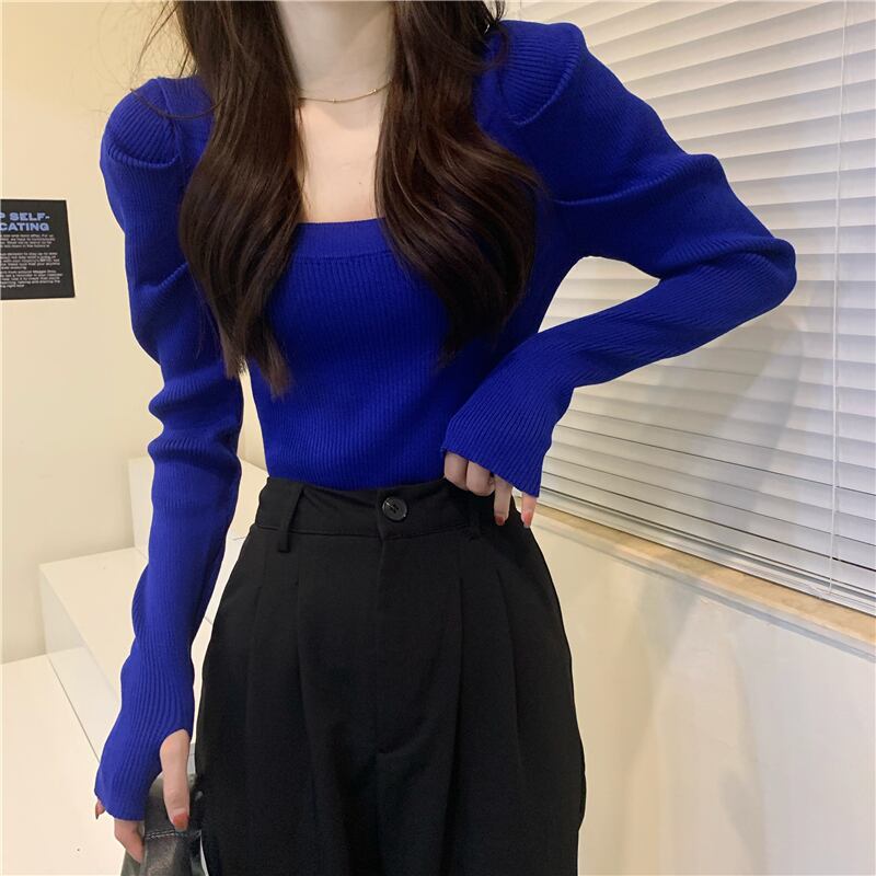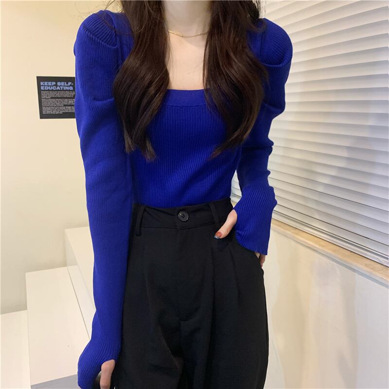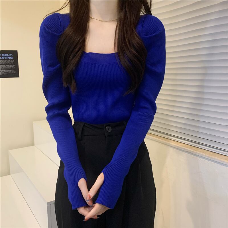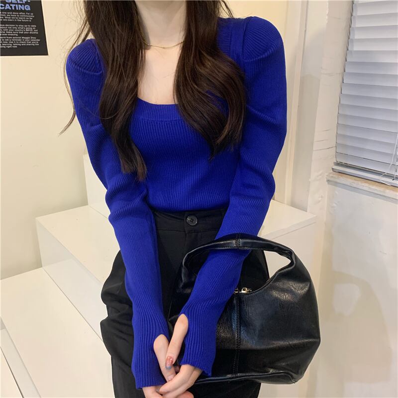 黒ボトムスシャツレディース秋冬ニットセーターハイエンドeignスタイルファッションスリムスクエアカラー長袖トップブルー ロング ブラック オータム 秋物 ウィンター 冬物 スクウェア 74600362635948 | framboise21