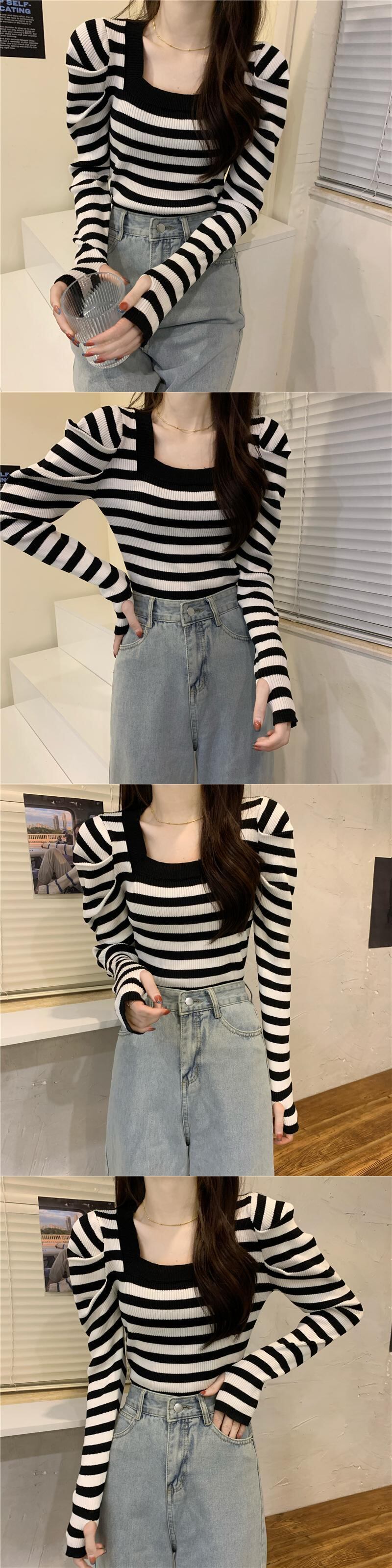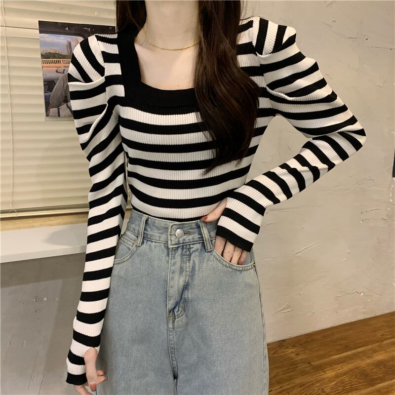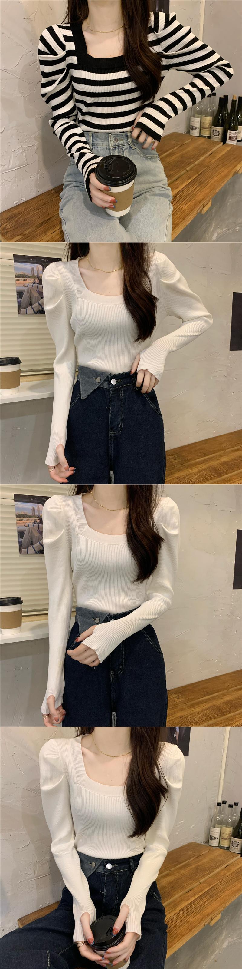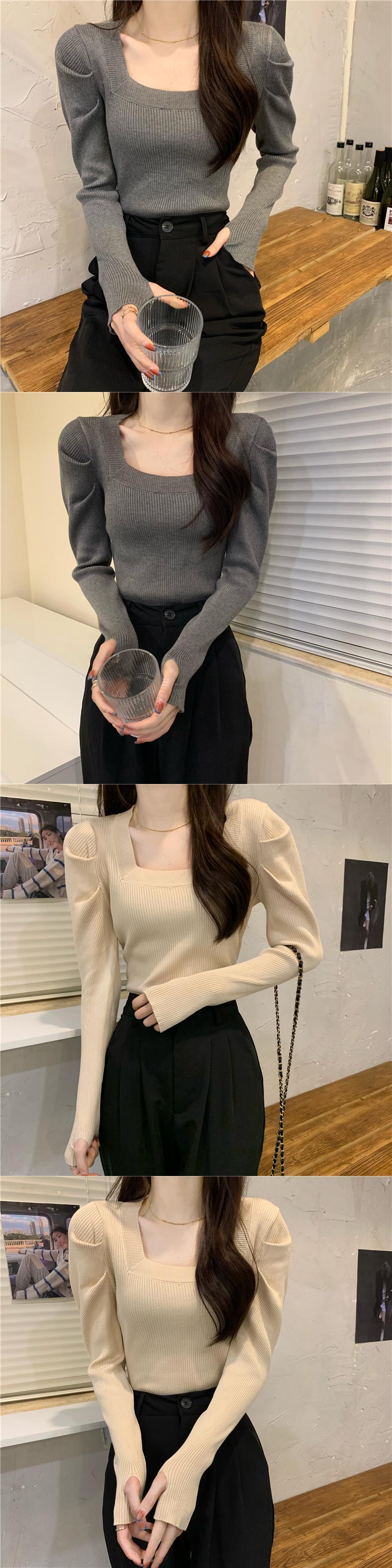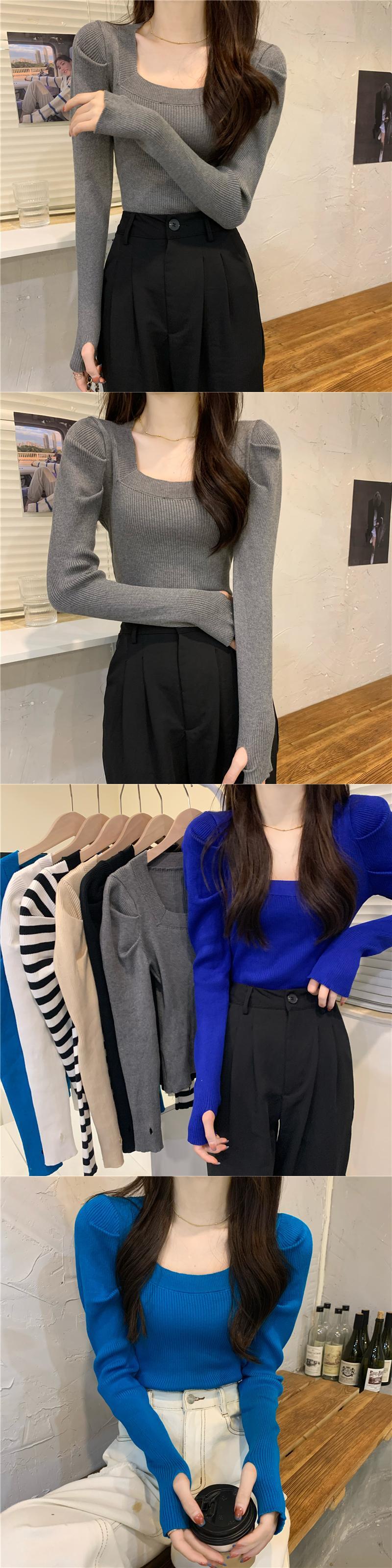 黒ボトムスシャツレディース秋冬ニットセーターハイエンドeignスタイルファッションスリムスクエアカラー長袖トップブルー ロング ブラック オータム 秋物 ウィンター 冬物 スクウェア 74600362635948 | framboise21