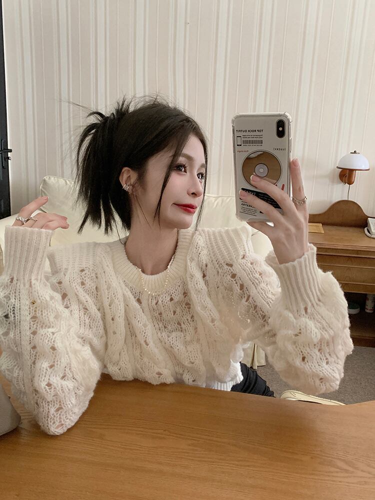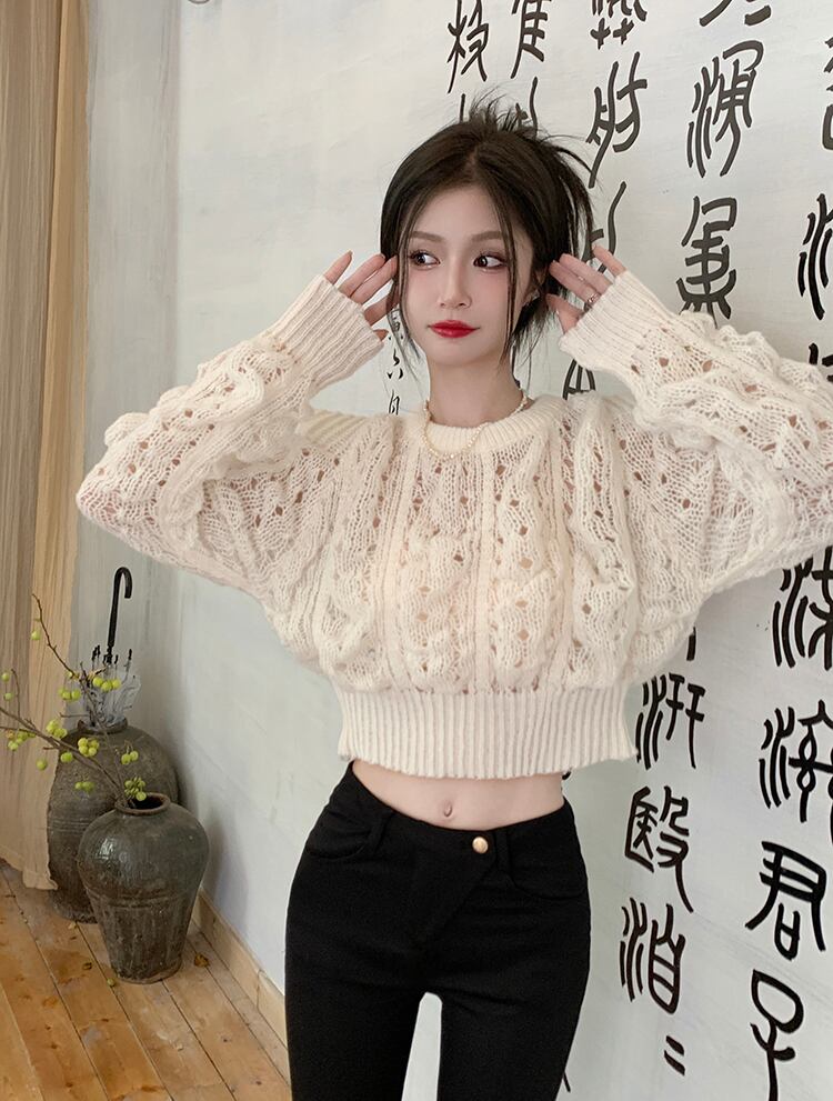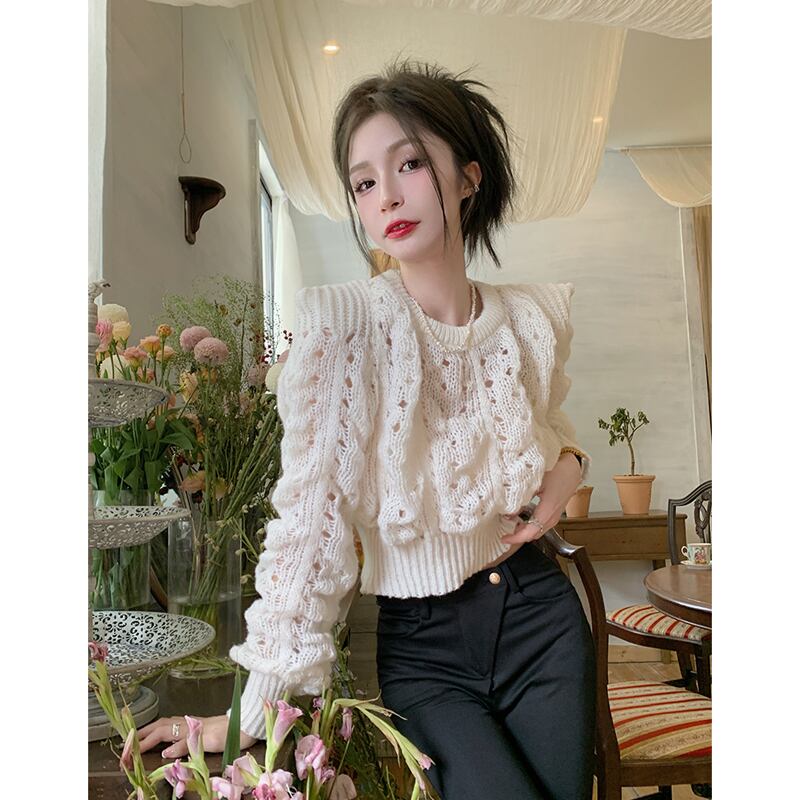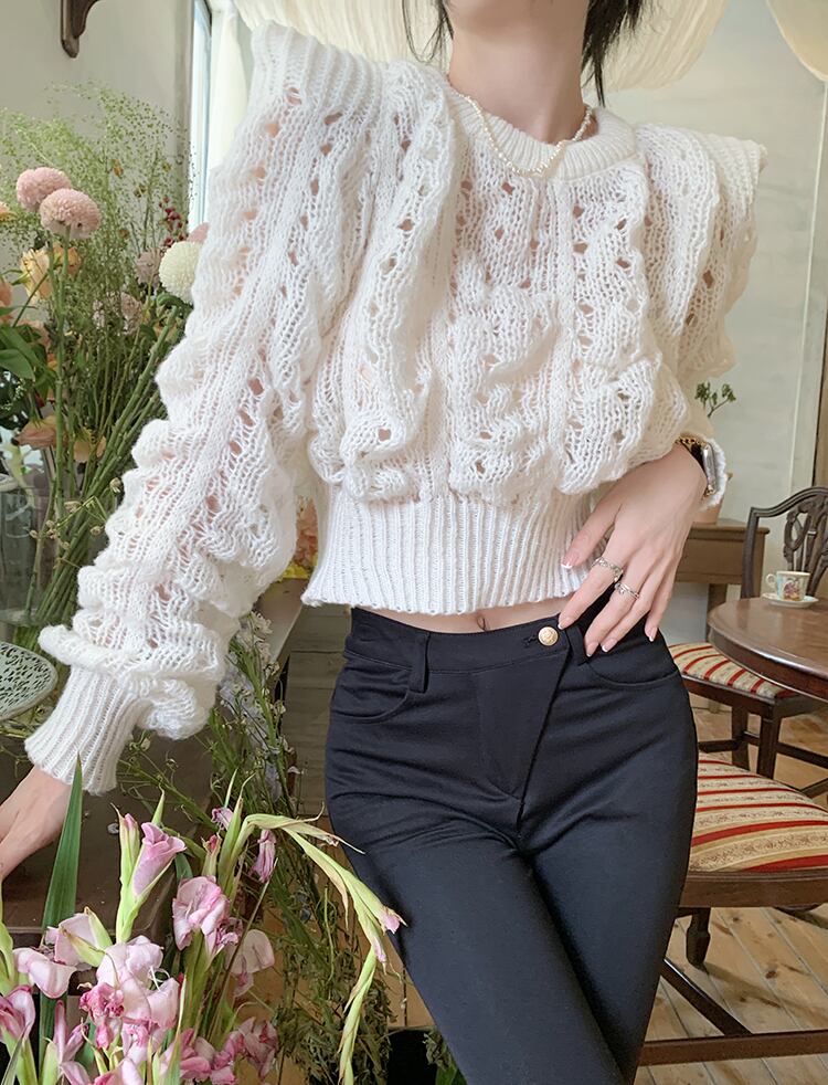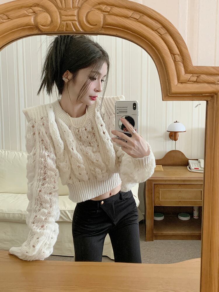ショート ツイスト セーター レディース 秋冬 肩パット ボトム ニットセーター ゆったり アウター くり抜き 長袖 トップス ホワイト ロング オータム 秋物 ウィンター 冬物 7460058477694875 | framboise21