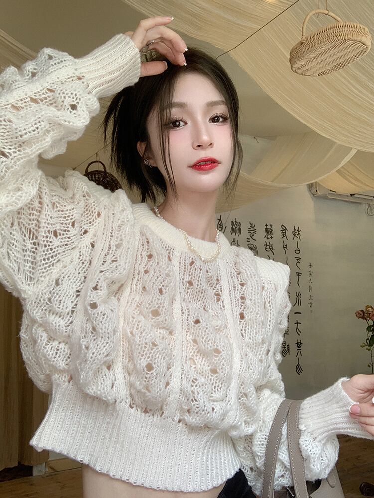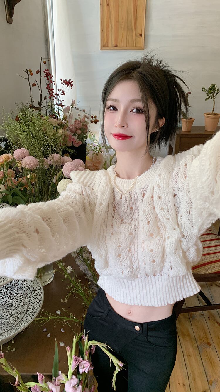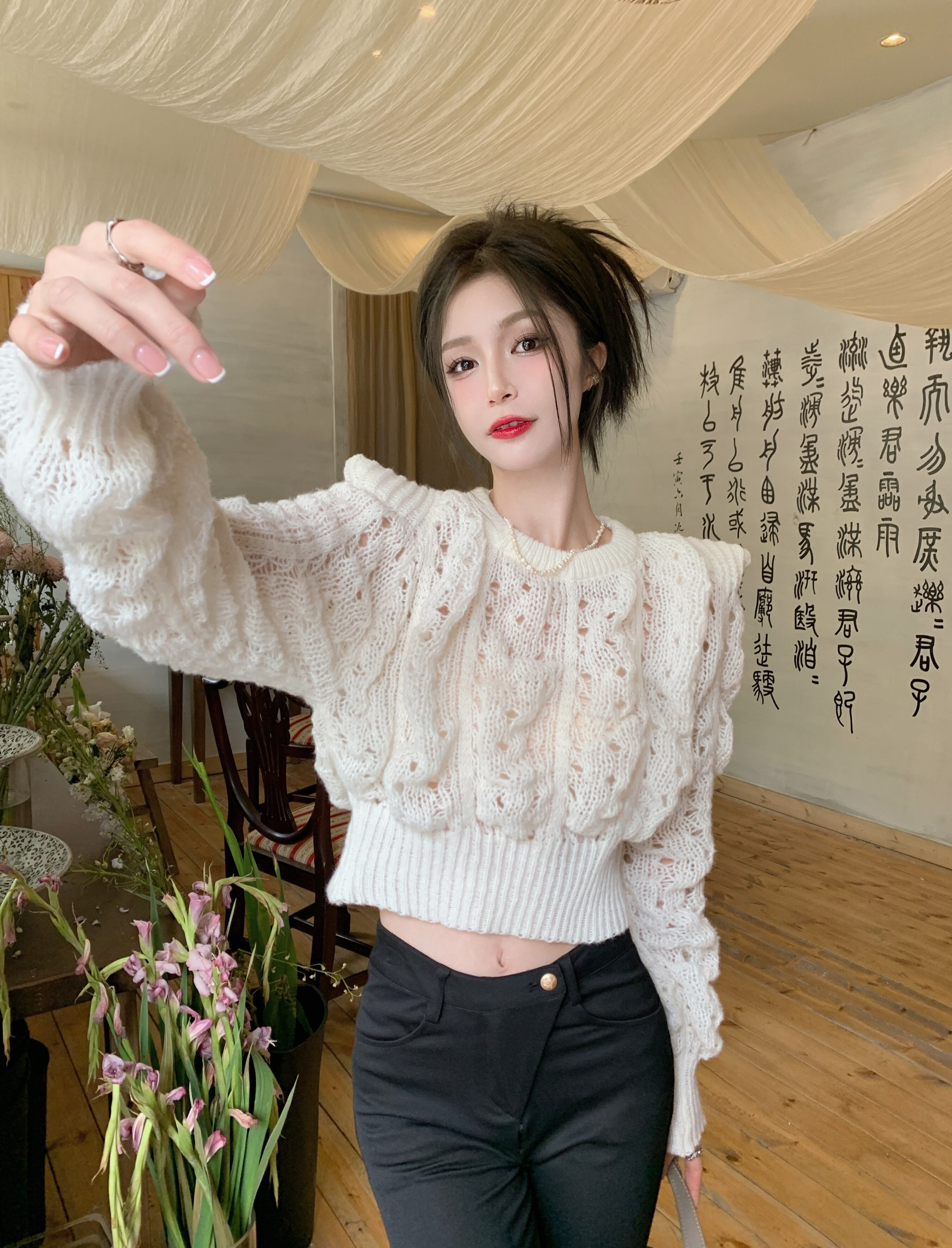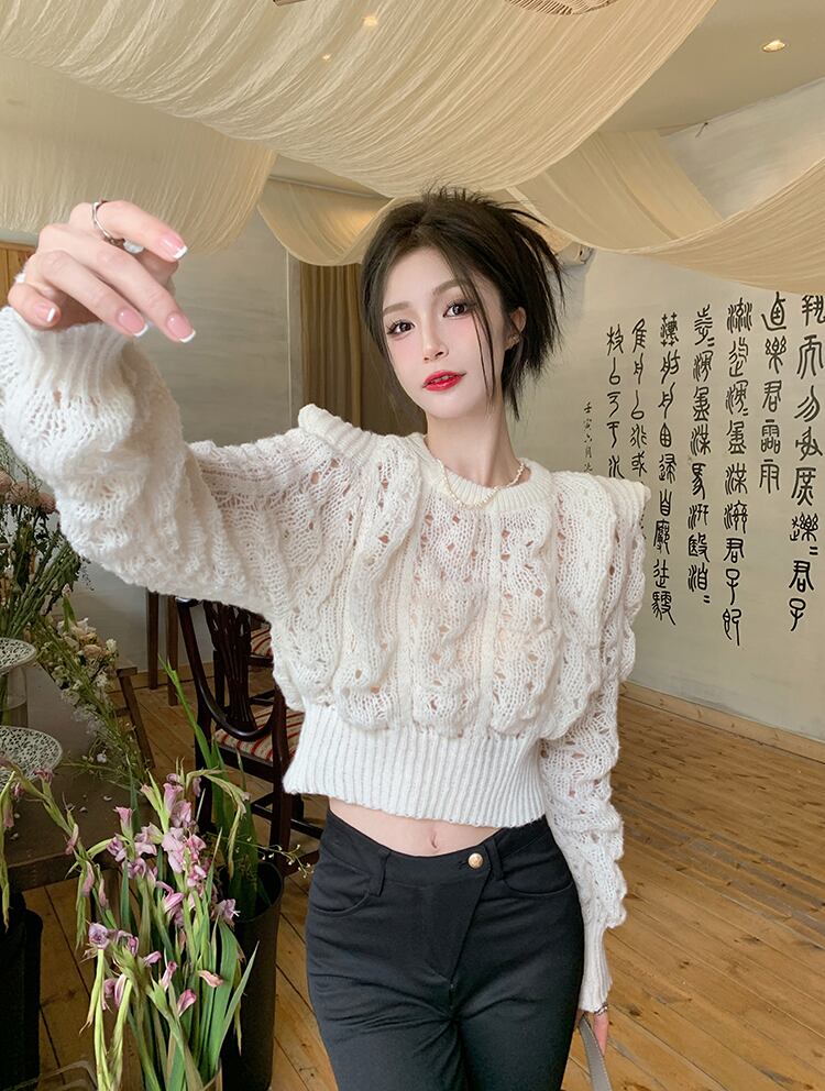 ショート ツイスト セーター レディース 秋冬 肩パット ボトム ニットセーター ゆったり アウター くり抜き 長袖 トップス ホワイト ロング オータム 秋物 ウィンター 冬物 7460058477694875 | framboise21