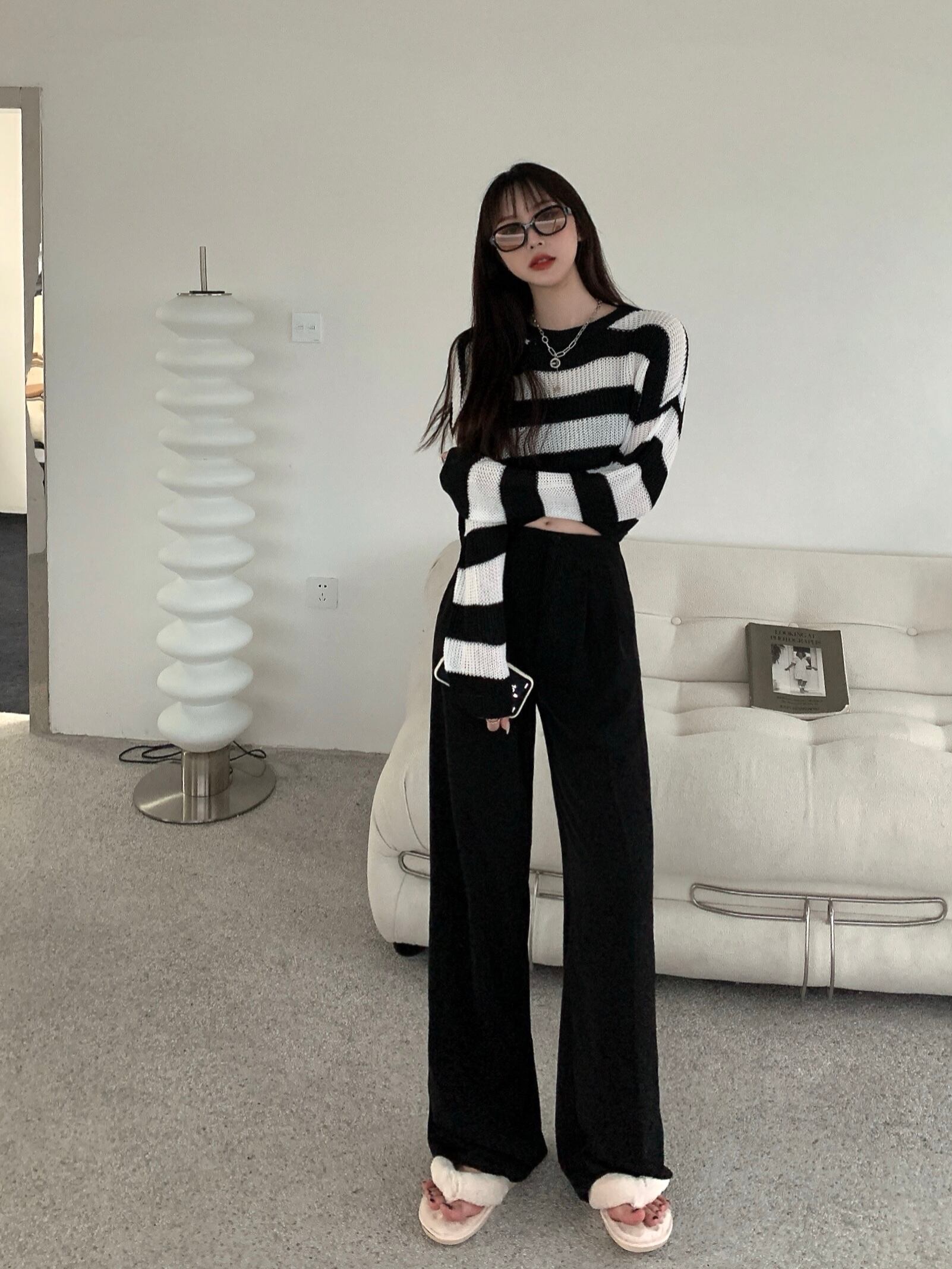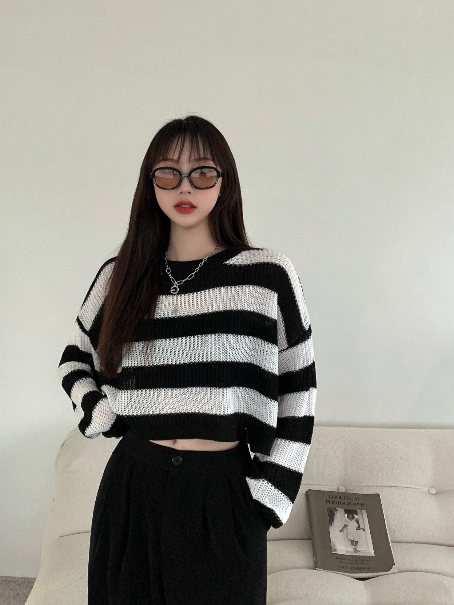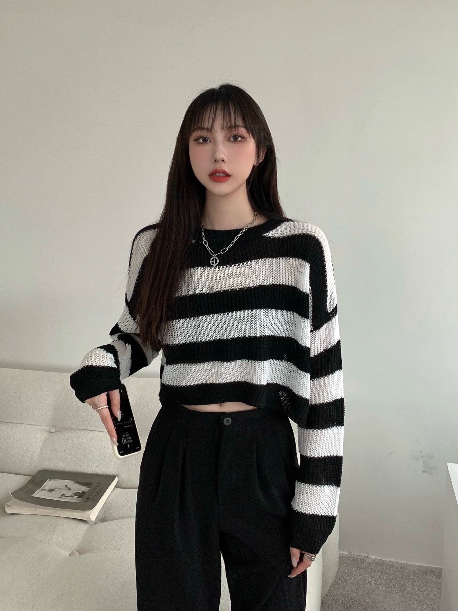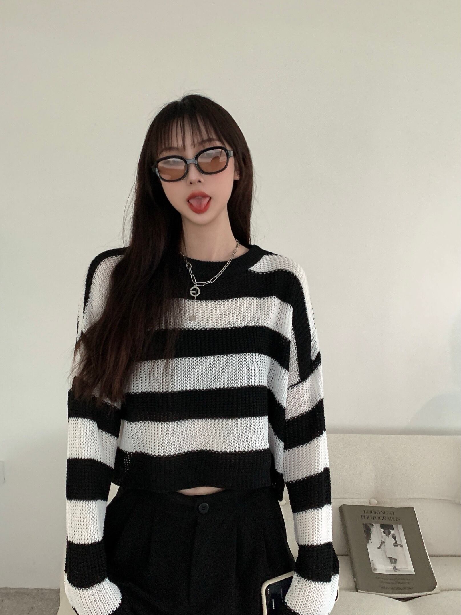 白黒 ストライプ セーター レディース 秋冬 薄手セーター 長袖 ブラウス 洋風 ゆったり ショート ボトムス シャツ トップス トレンド ロング ホワイト ブラック オータム 秋物 ウィンター 冬物 7460084288372664 | framboise21