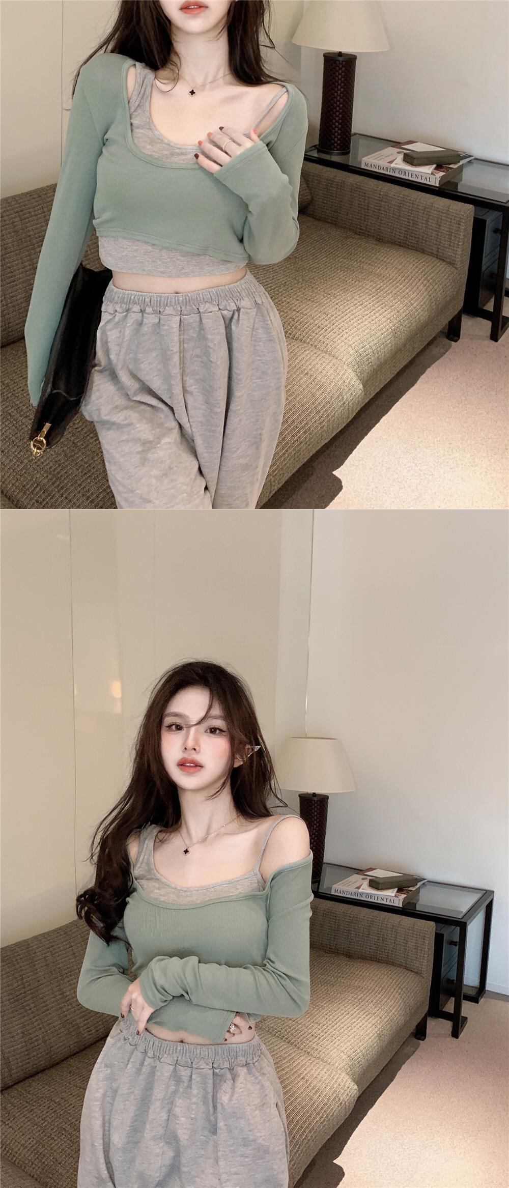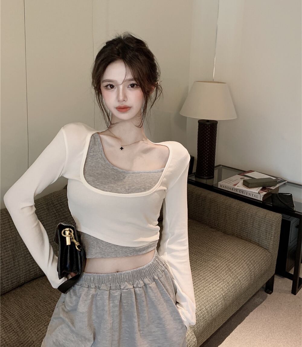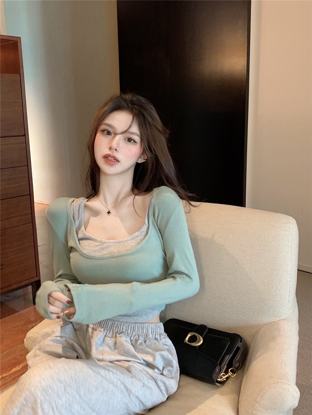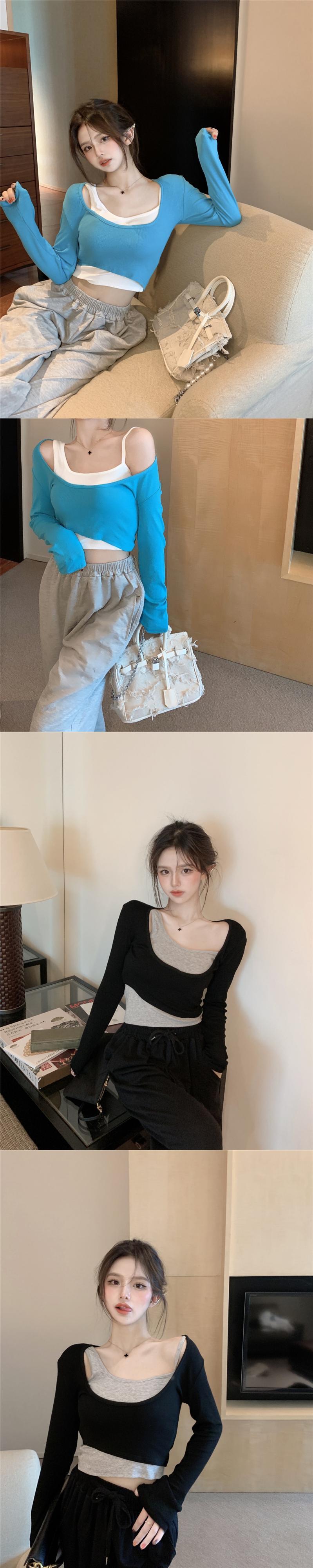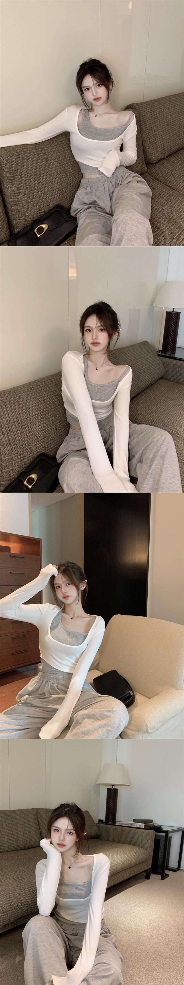 淡いヨーロピアン&アメリカンな雰囲気のデザインニッチな長袖Tシャツ レディース 初秋着 ワンショルダー ジャズ ショートトップス ロング オータム 秋物 7460044586757637 | framboise21