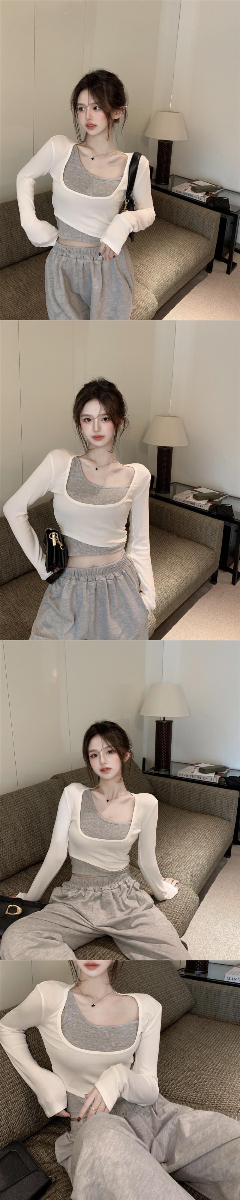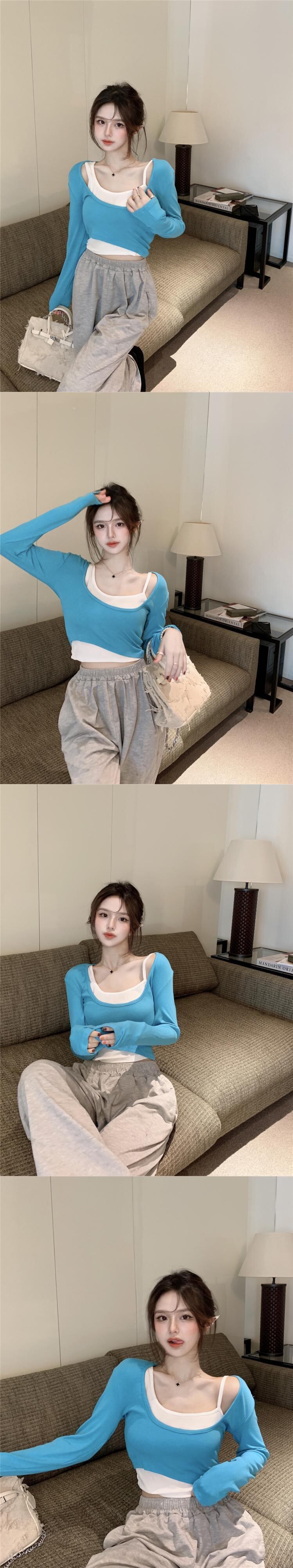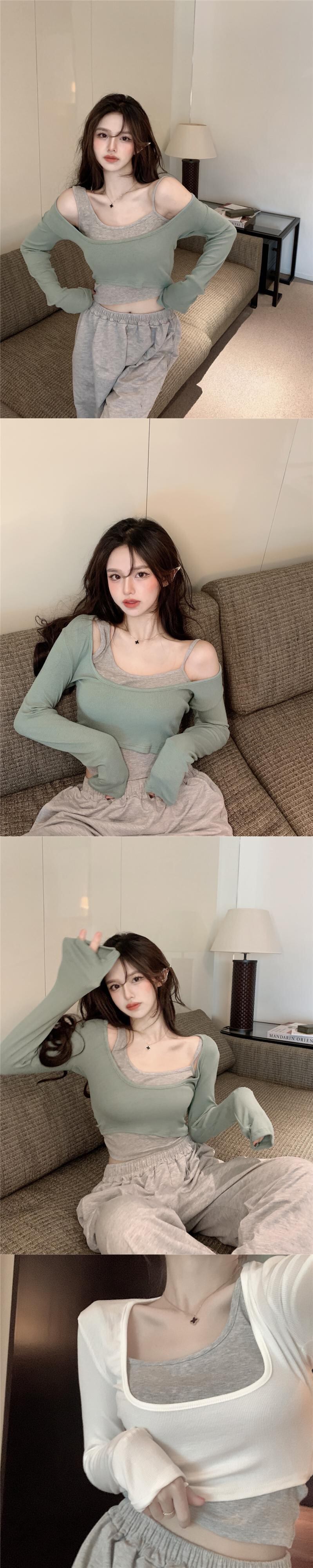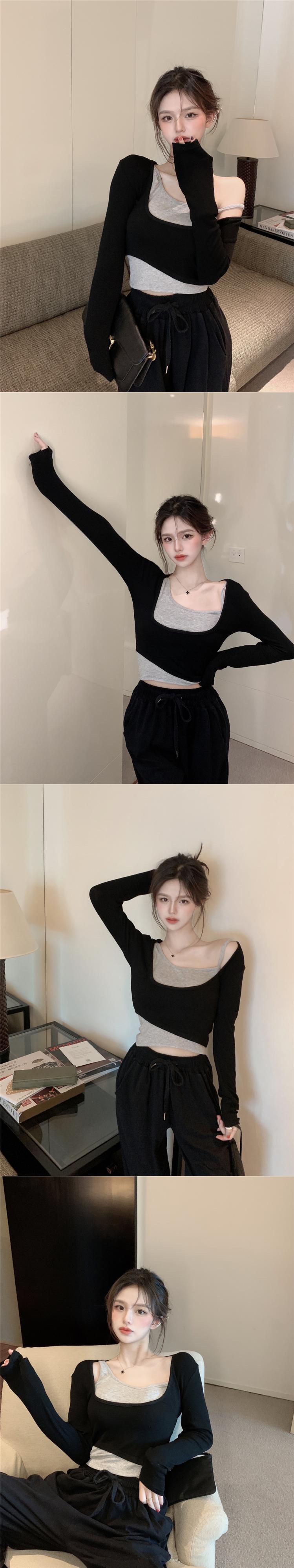 淡いヨーロピアン&アメリカンな雰囲気のデザインニッチな長袖Tシャツ レディース 初秋着 ワンショルダー ジャズ ショートトップス ロング オータム 秋物 7460044586757637 | framboise21