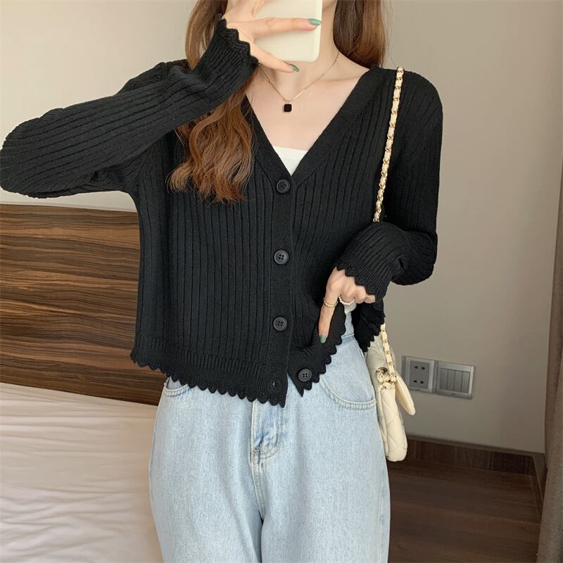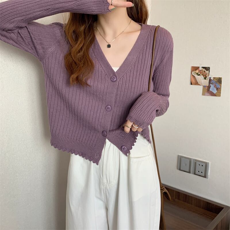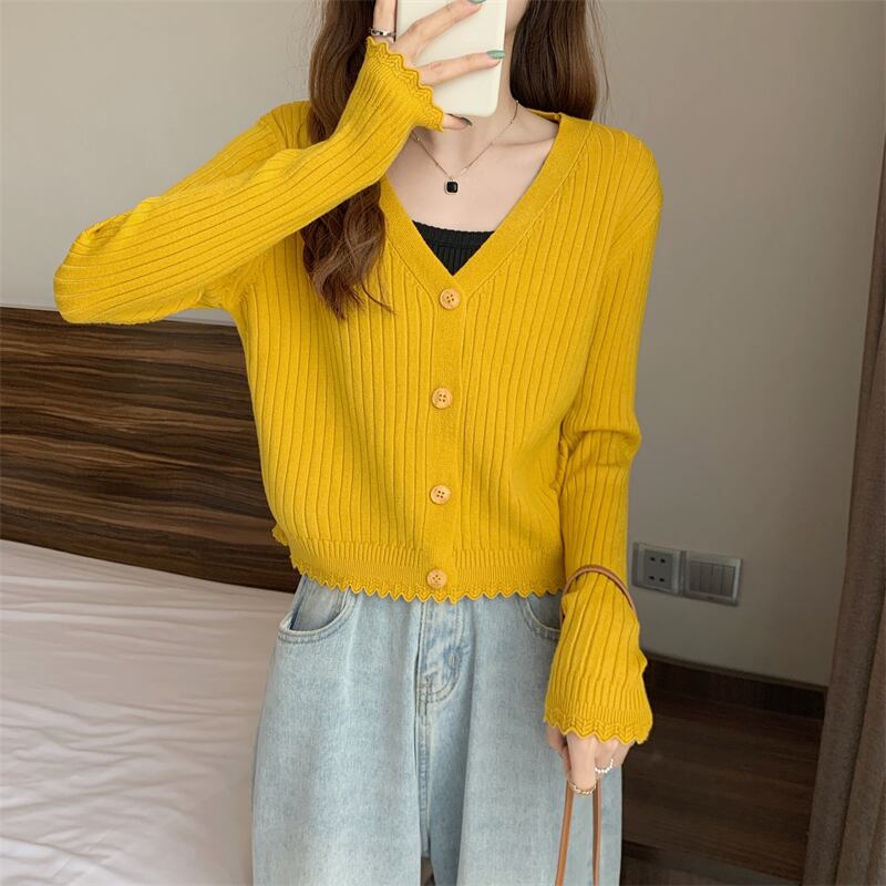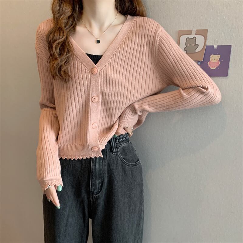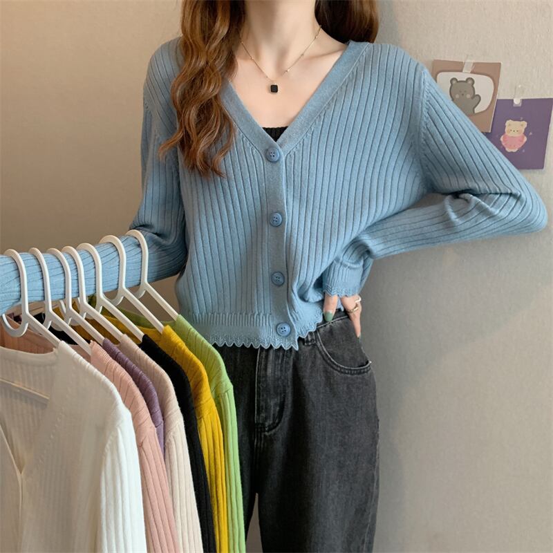 ショート ニット カーディガン レディース 秋 長袖 セーター コート Eign-style デザインと用途の広い V ネック ボトムス トップ ロング オータム 秋物 Vネック 7460034190712262 | framboise21