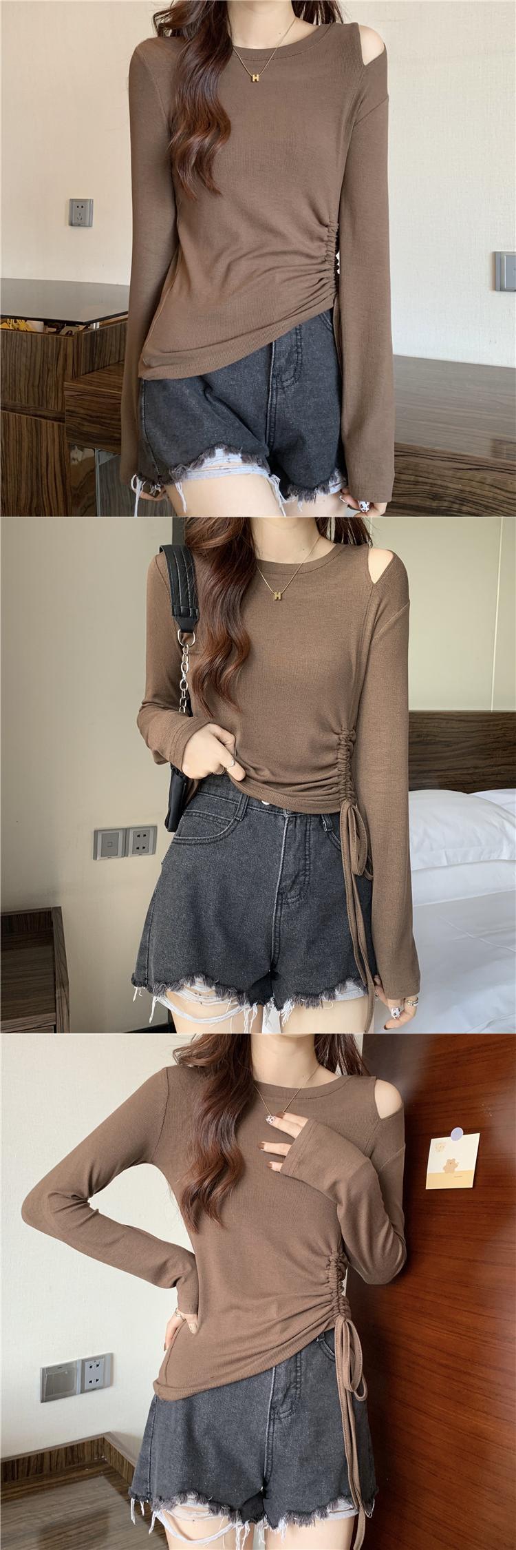 モーダル ボトムス シャツ レディース 春夏秋冬 2022年新作 シワあり セクシー オフショルダー ラウンドネック 長袖 Tシャツ レディース トップス ロング スプリング 春物 サマー 夏物 オータム 秋物 Oネック 746009112466141 | framboise21