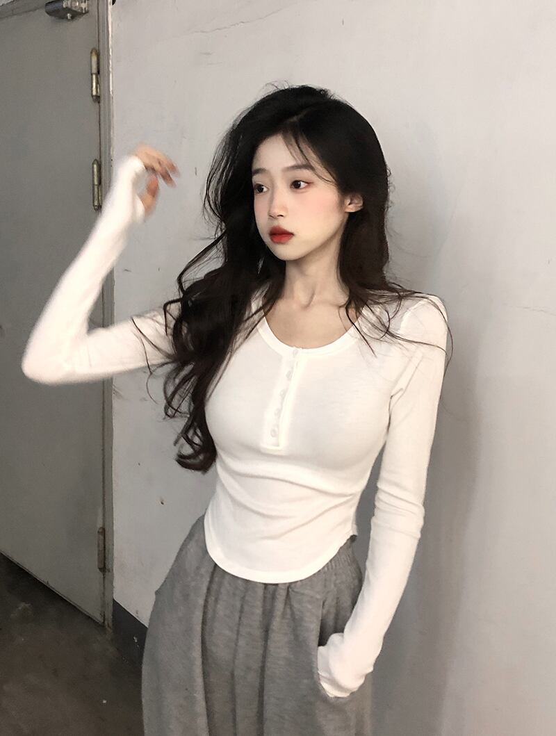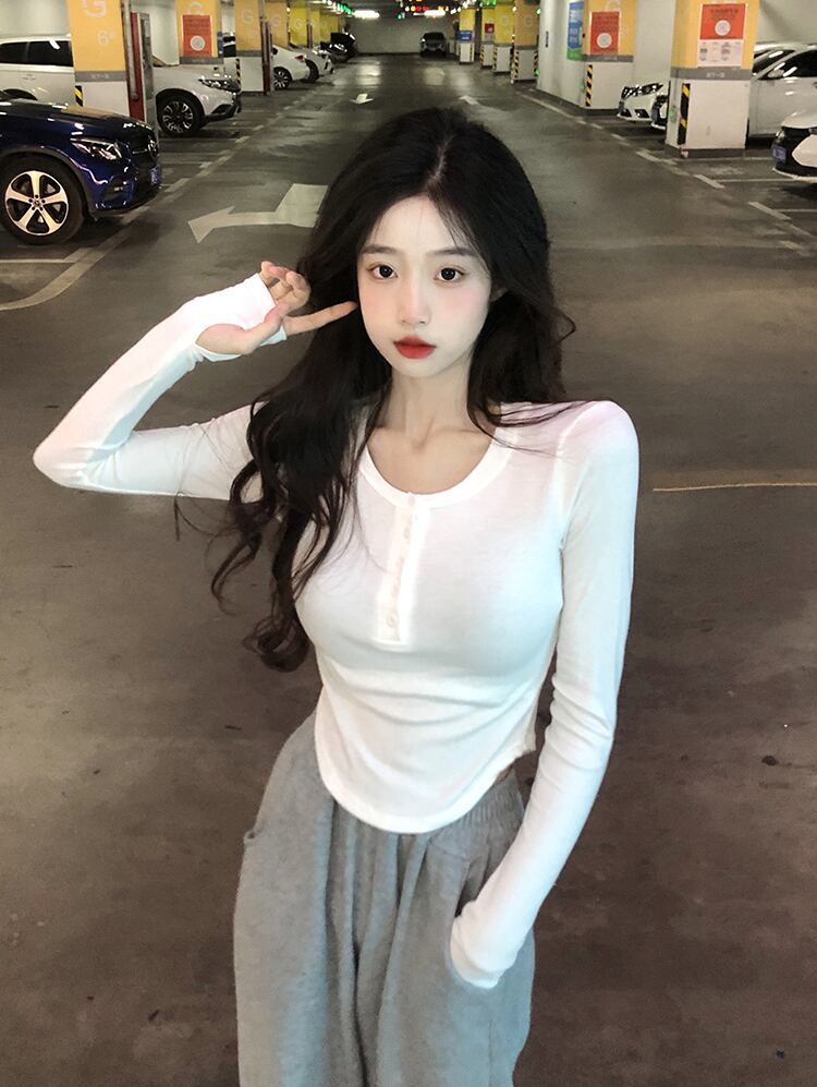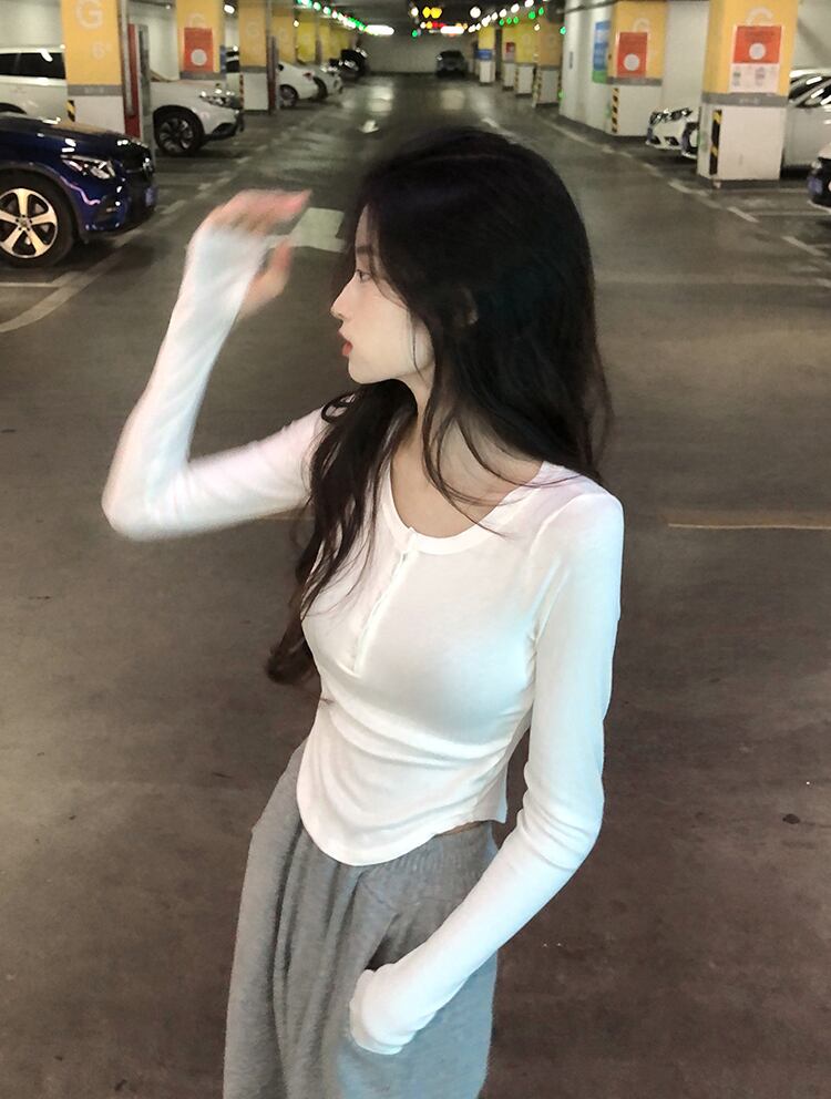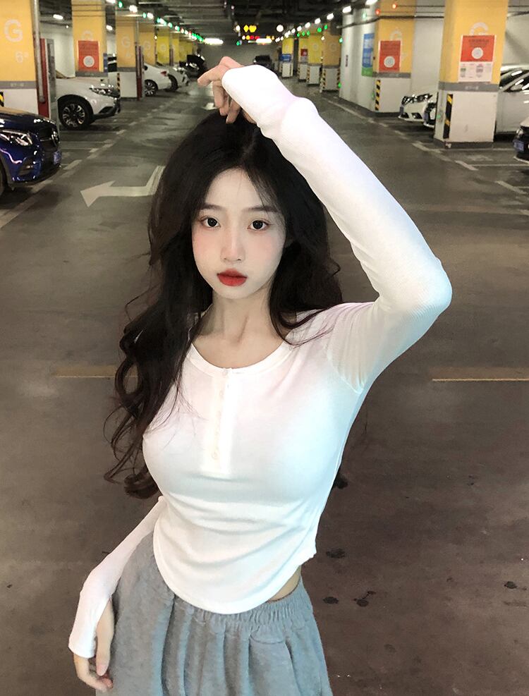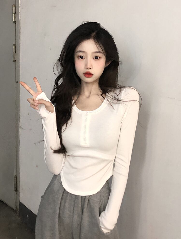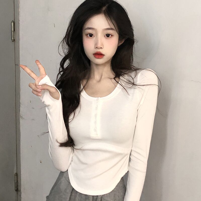 ピュアデザイア イレギュラー スリム ホワイト 長袖 tシャツ レディース 春秋 薄手 短め インナー ボトムス シャツ 上着 パンツ 潮 ショート ロング スプリング 春物 オータム 秋物 7460067940275137 | framboise21