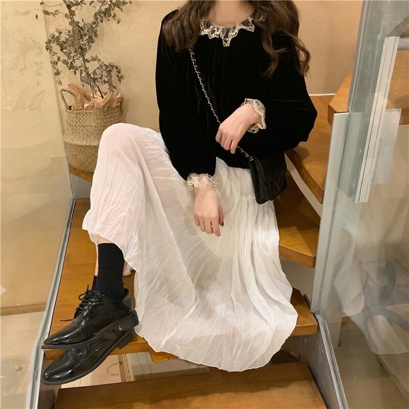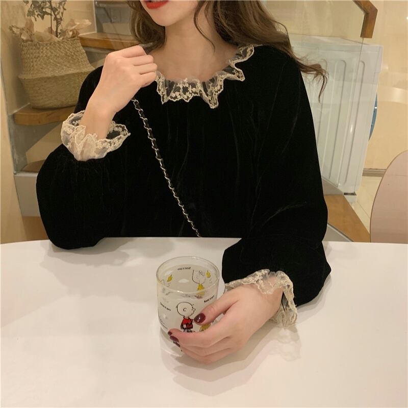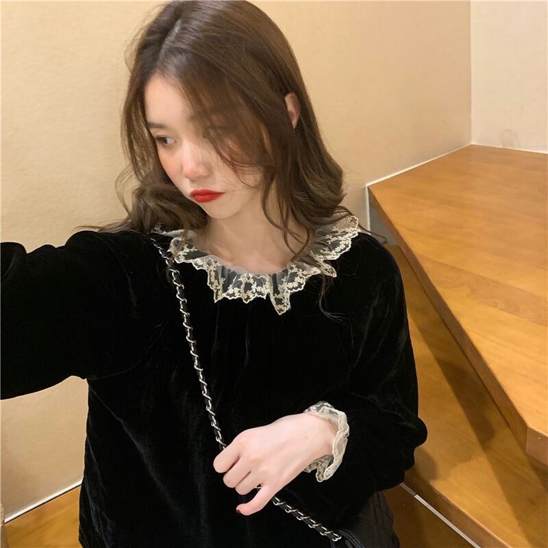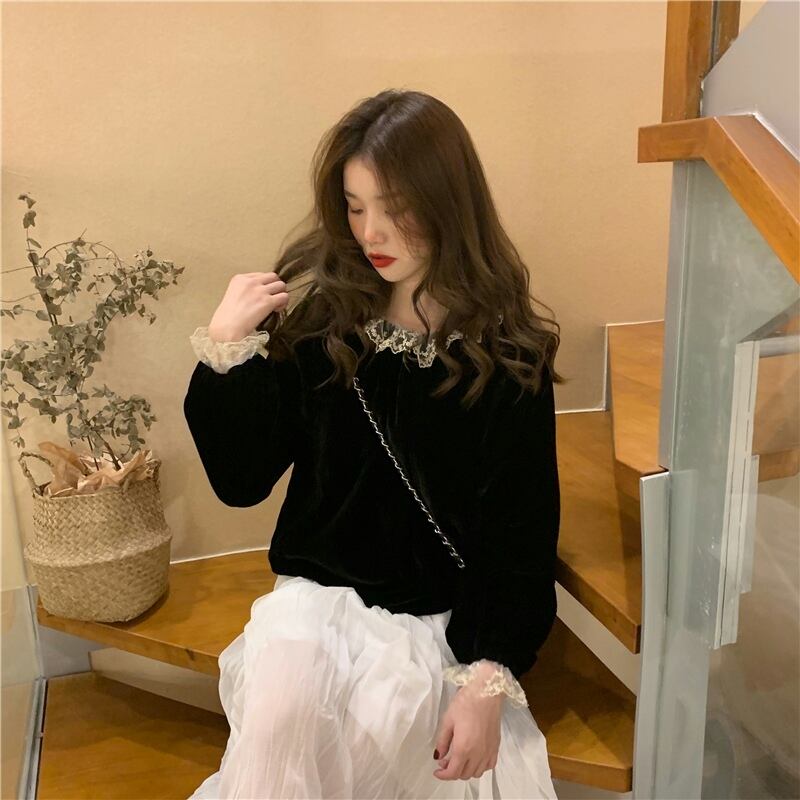 2022年初春の新作ゴールドベルベットレーストップ春秋レディースTシャツ長袖ボトムスシャツオールマッチウエスタンスタイル ロング スプリング 春物 オータム 秋物 746001781080802 | framboise21