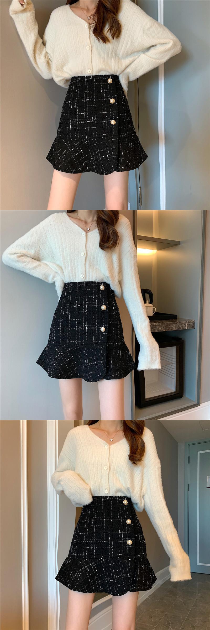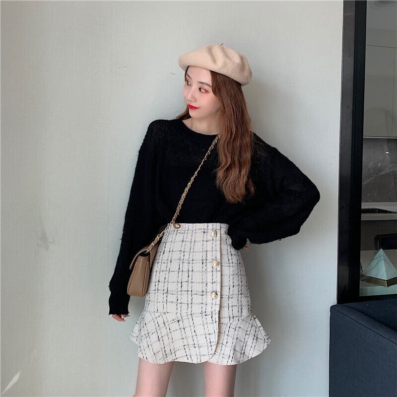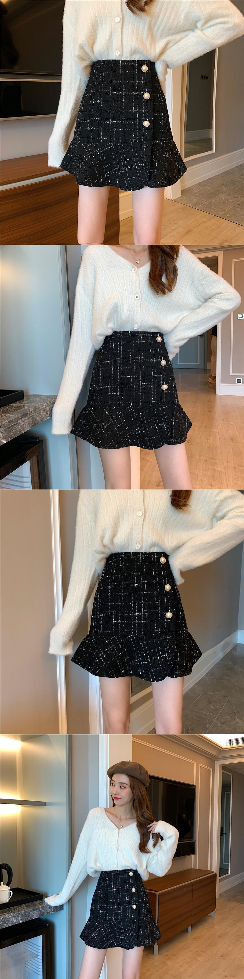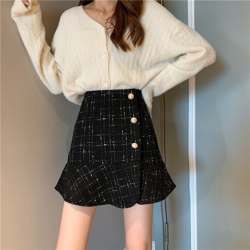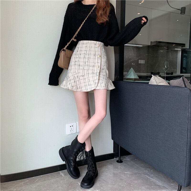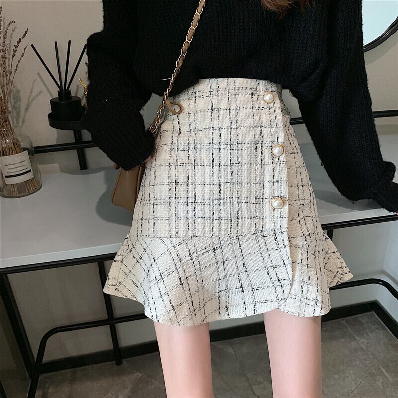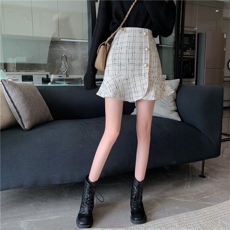 小さな短いスカートXiaoxiangスタイルのスカートの女性の秋と冬の気質ハイウエストの単語バッグヒップフリルフィッシュテールスカート ハイウェスト ショート オータム 秋物 ウィンター 冬物 7460067668849345 | framboise21