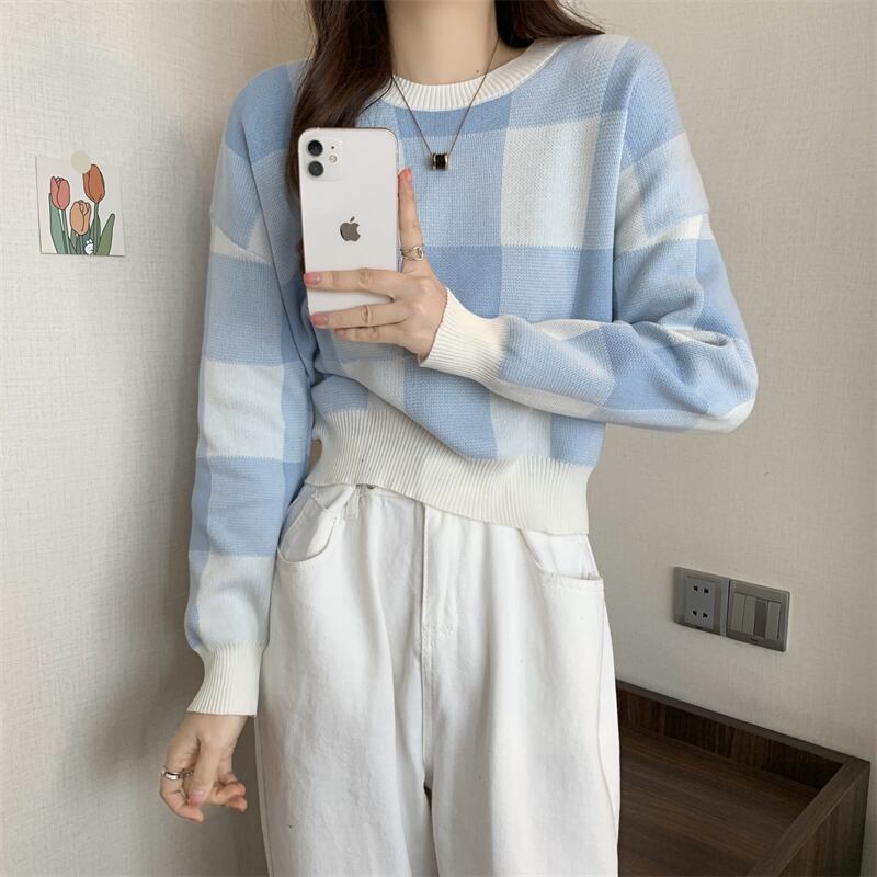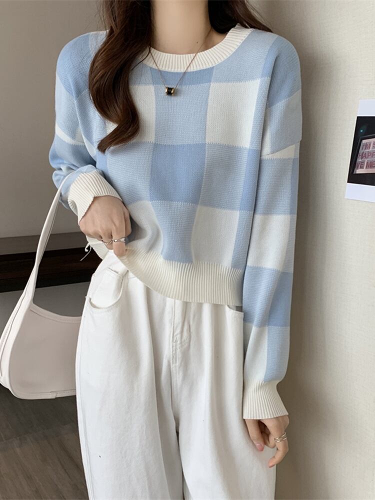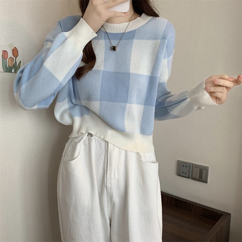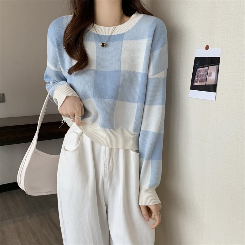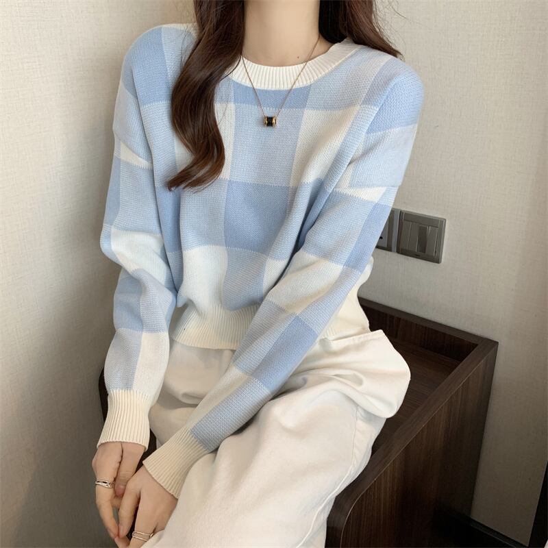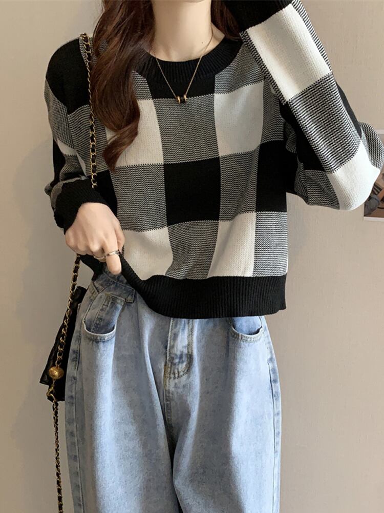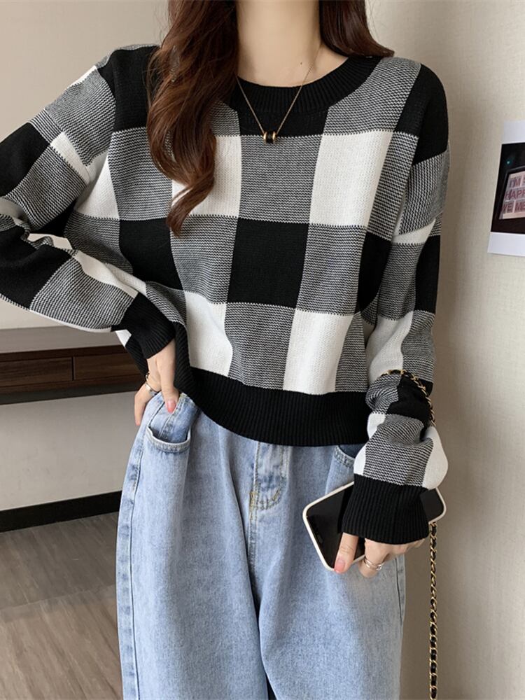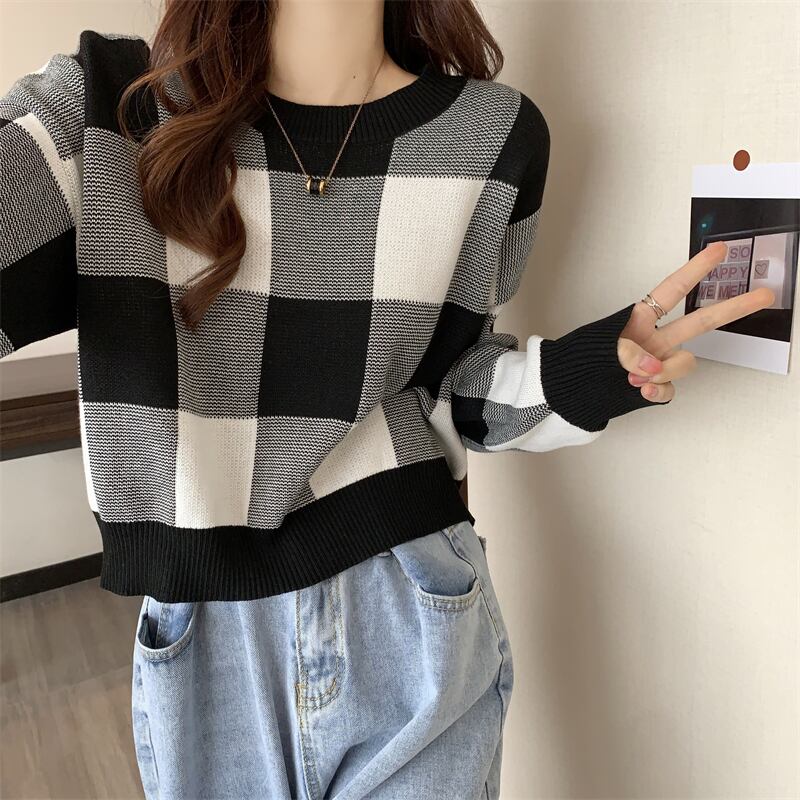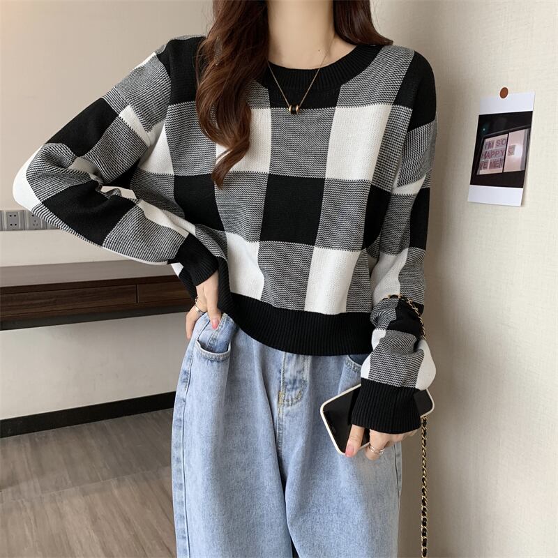チェッカーボード ボトムス セーター レディース 秋冬 2022 新作 ルーズ アウター 怠惰なスタイル ショート 長袖 ニットトップ ロング オータム 秋物 ウィンター 冬物 746003418747033 | framboise21