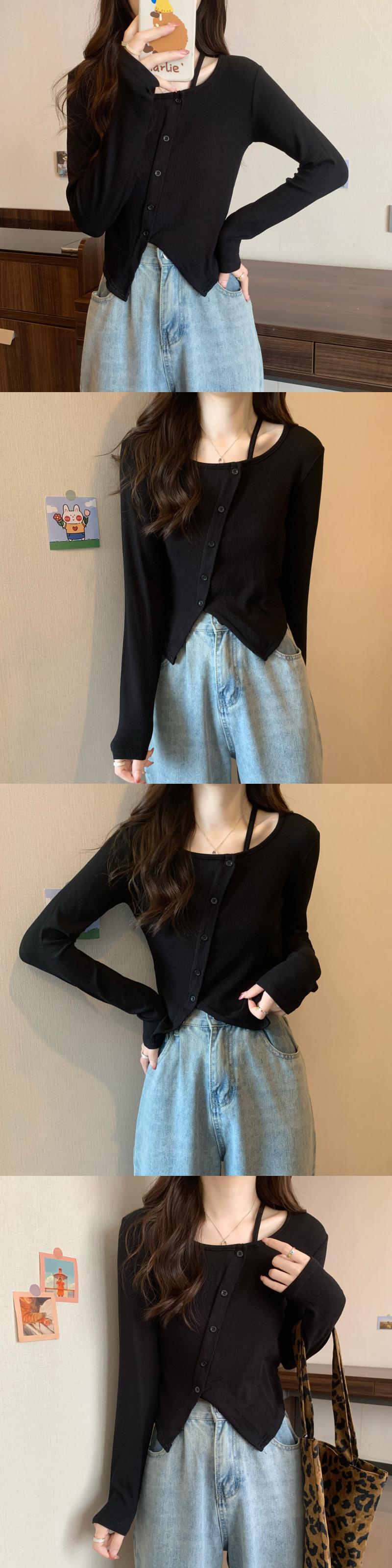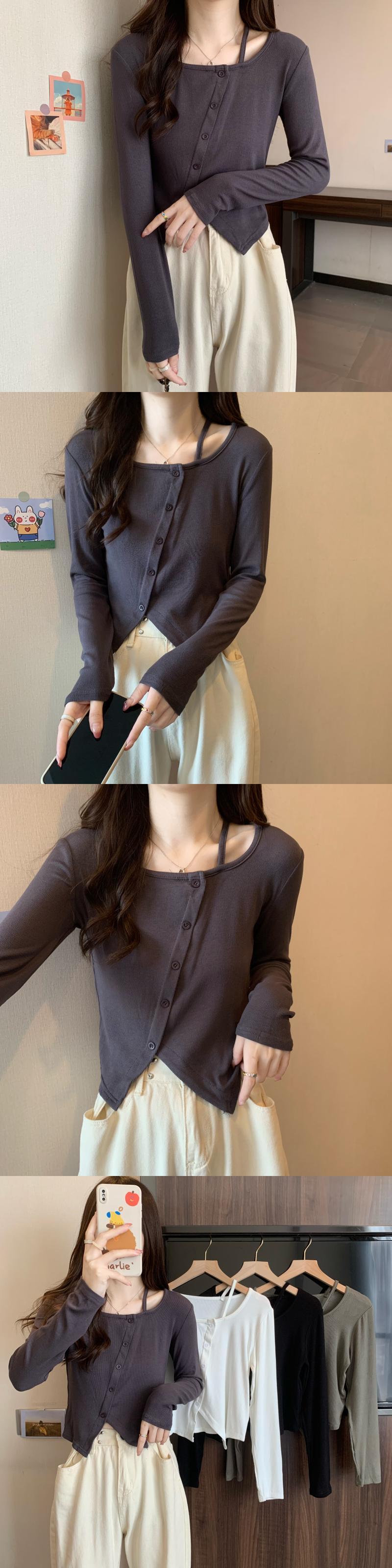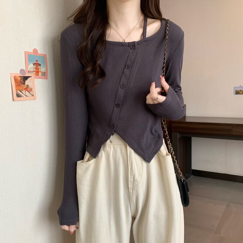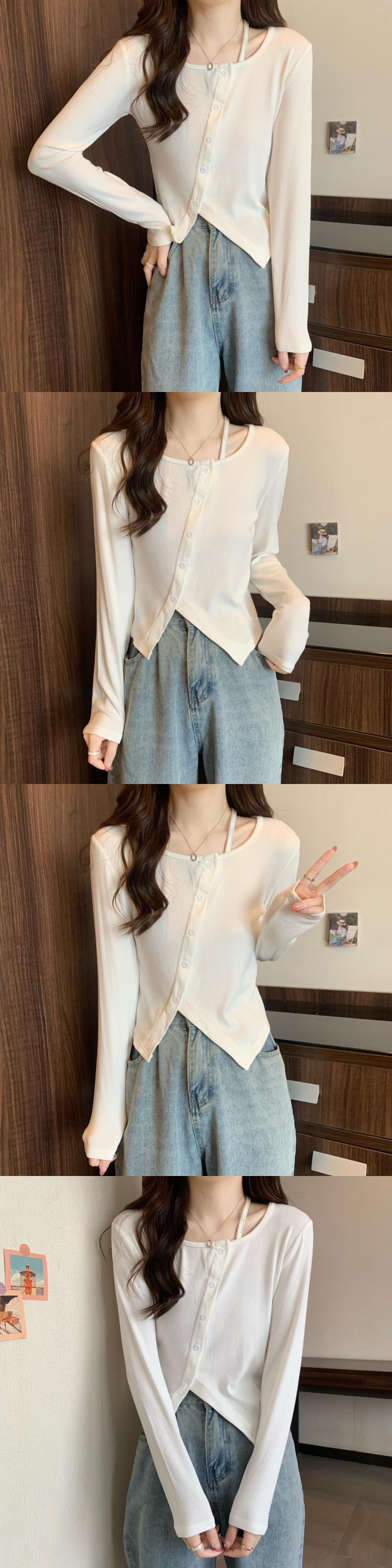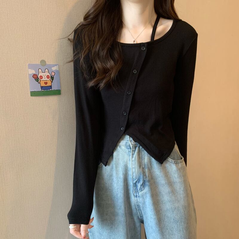 ホワイトスプリットフロントショルダーロングスリーブTシャツイレギュラーピュアホワイトトップレディース秋デザインニッチピュアコットンボトムスシャツ オータム 秋物 7460075762468449 | framboise21