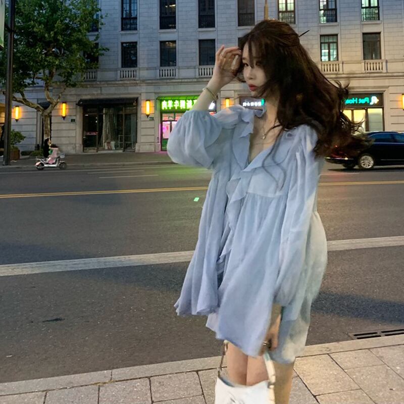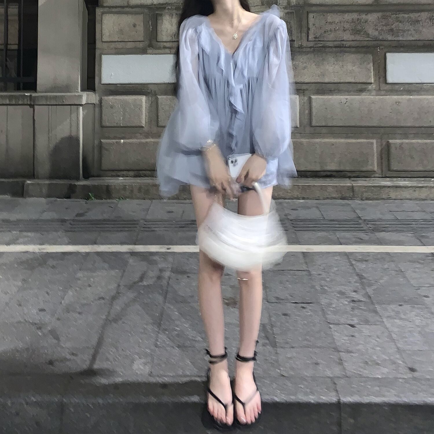 ミルクスウィートブルーフリルシフォンシャツレディースピュアデザイア長袖シャツデザインシックトップ2022春秋新作 ロング 大人ガーリー キュート カジュアル スプリング 春物 オータム 秋物 7460086998781685 | framboise21