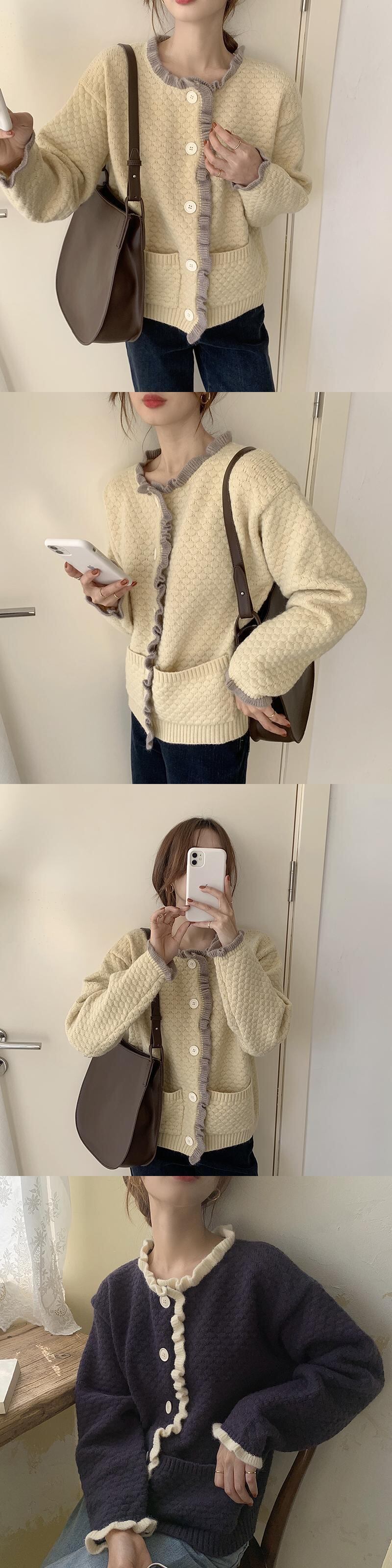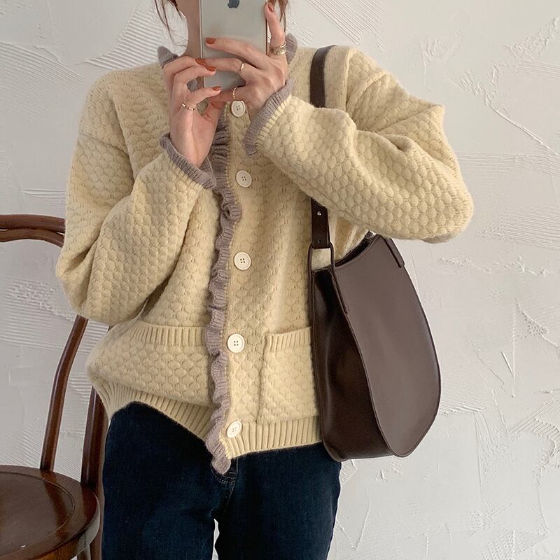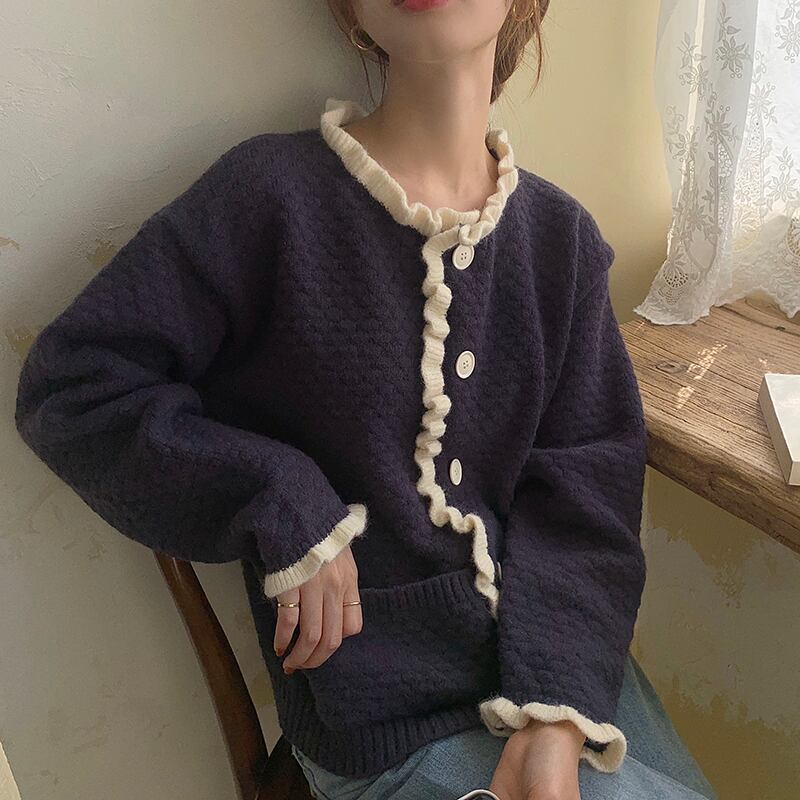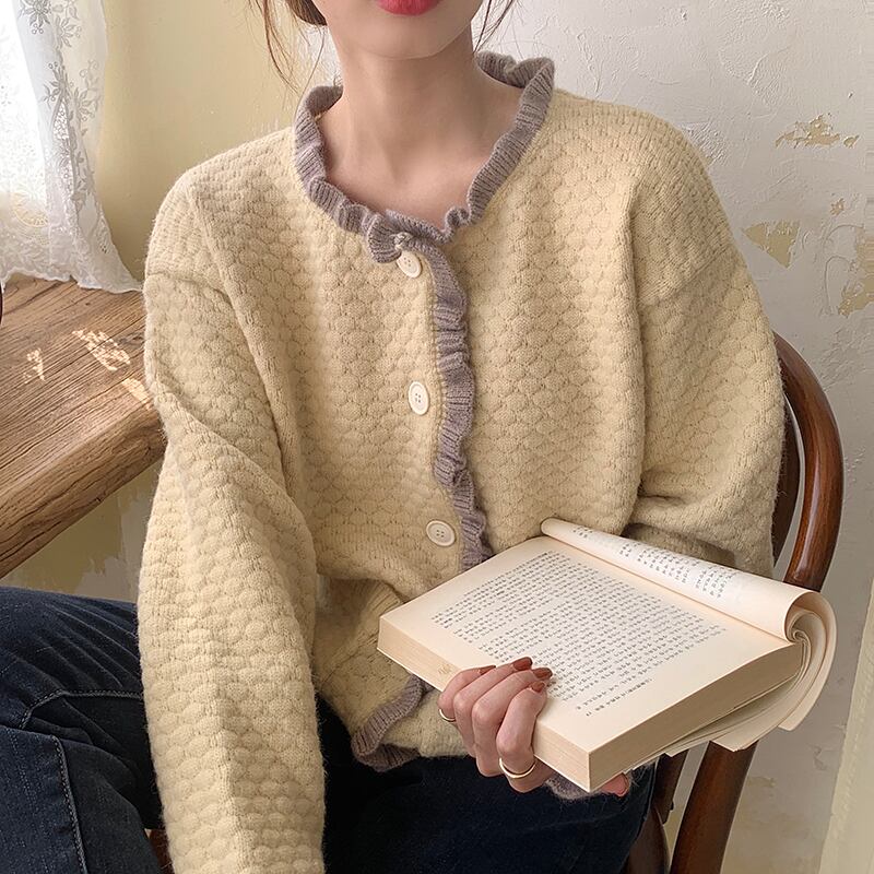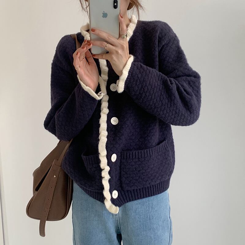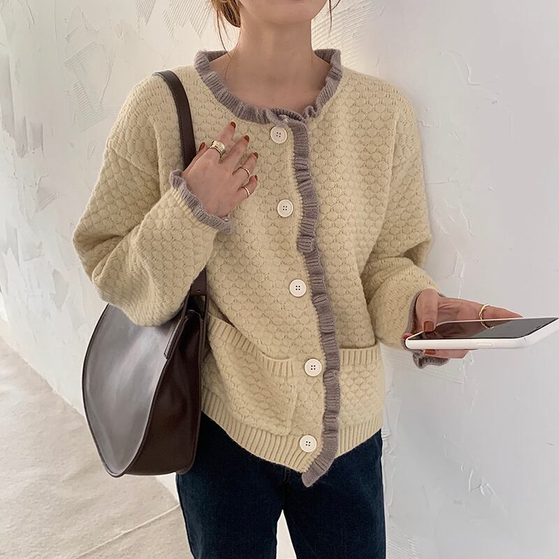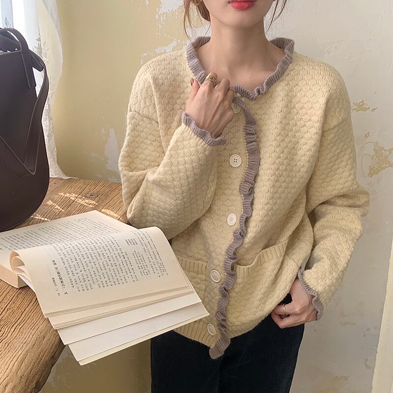 2022 秋冬新作ルースオールマッチ優しい風外着コントラストカラー菌エッジニットカーディガンセータージャケット女性のトレンド オータム 秋物 ウィンター 冬物 7460028962599374 | framboise21