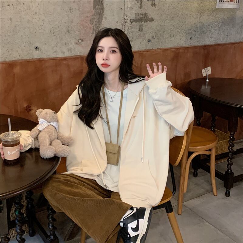 アート生乳甘いフード付きジャケット女性の春と秋の特大秋肩怠惰な風ミルク fufu ジッパー カーディガン セーター 大人ガーリー スウィート キュート カジュアル スプリング 春物 オータム 秋物 7460044850280725 | framboise21