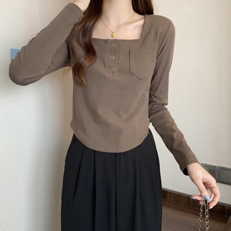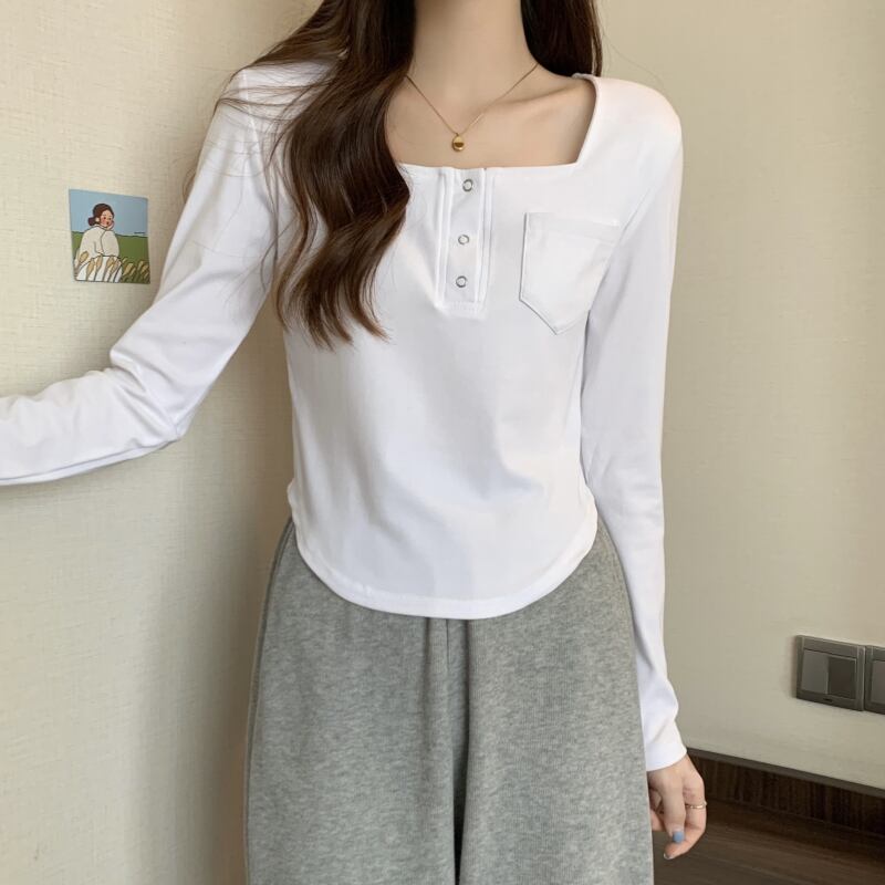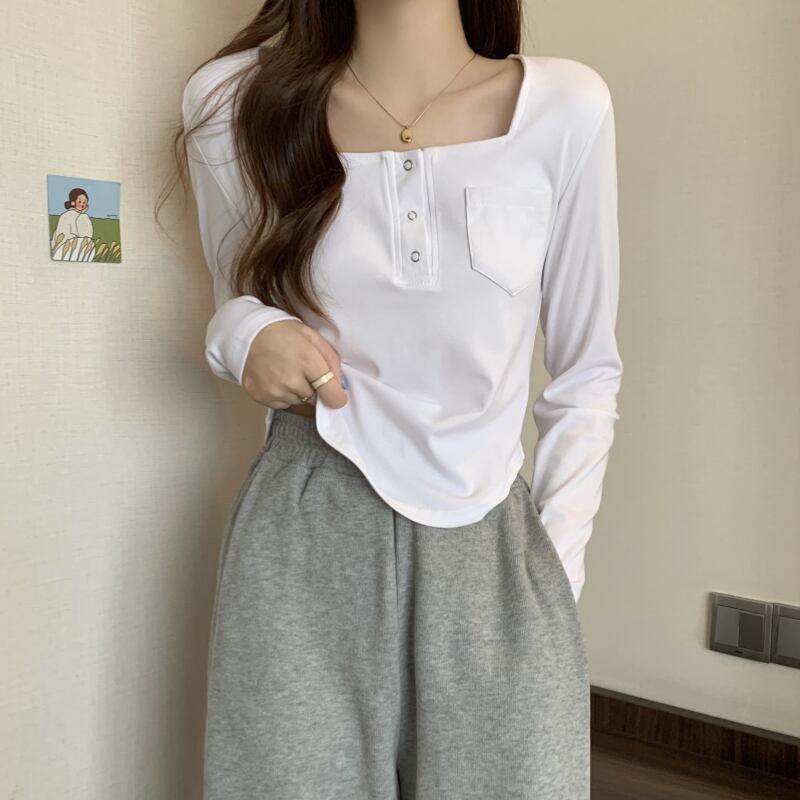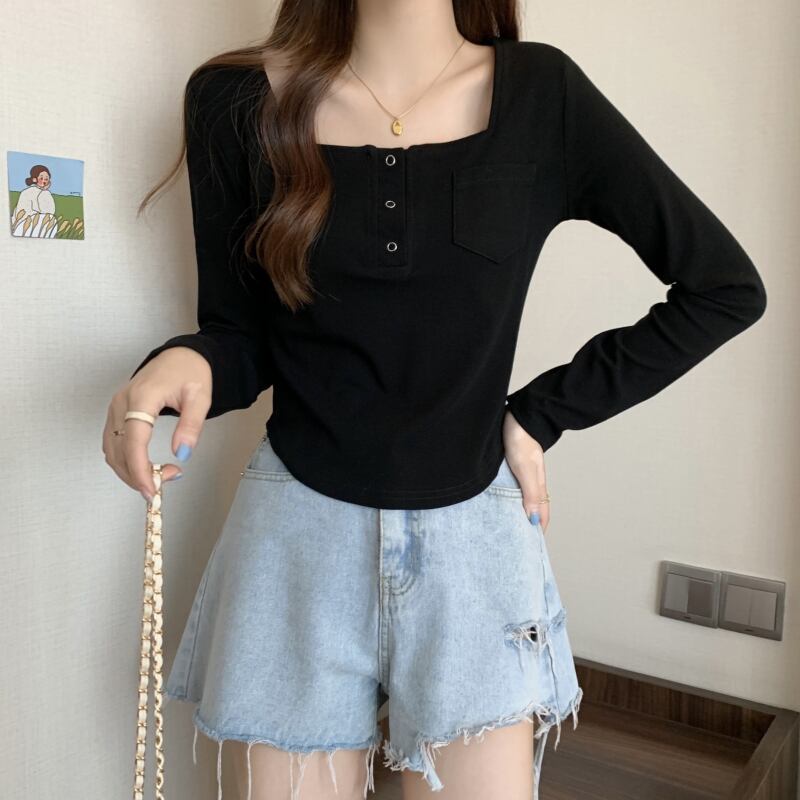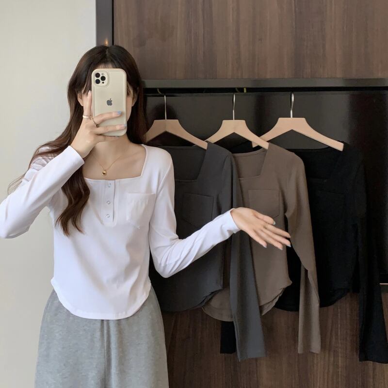 薄底 ボトムス シャツ レディース 春秋 フレンチ 鎖骨 スクエアカラー tシャツ スリムフィット 長袖 個性的 ショートトップ ロング スプリング 春物 オータム 秋物 スクウェア 746005391124645 | framboise21