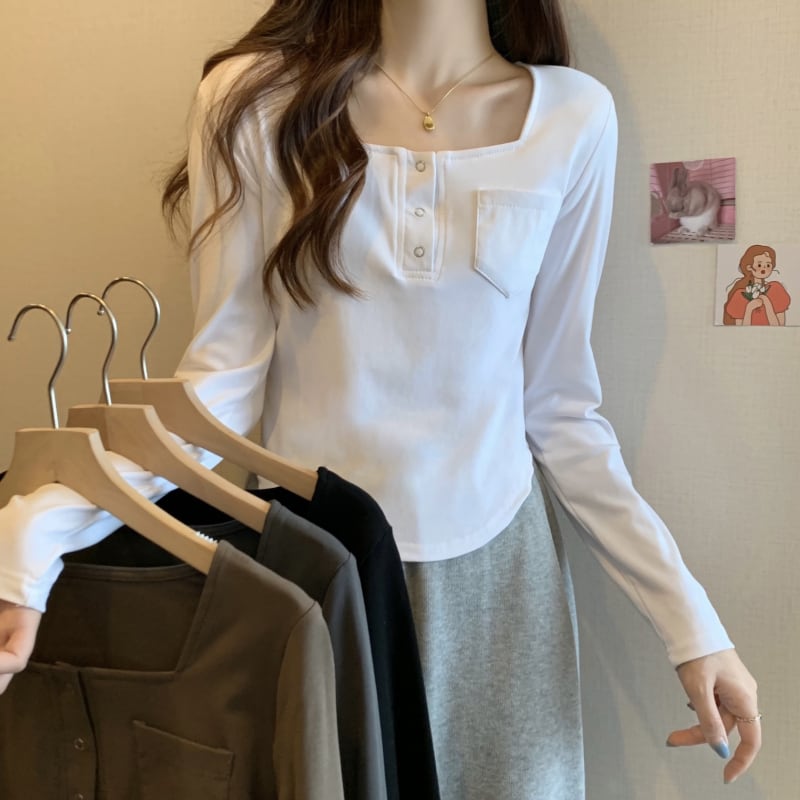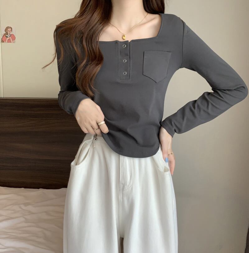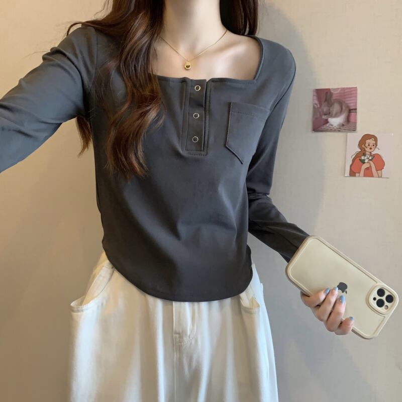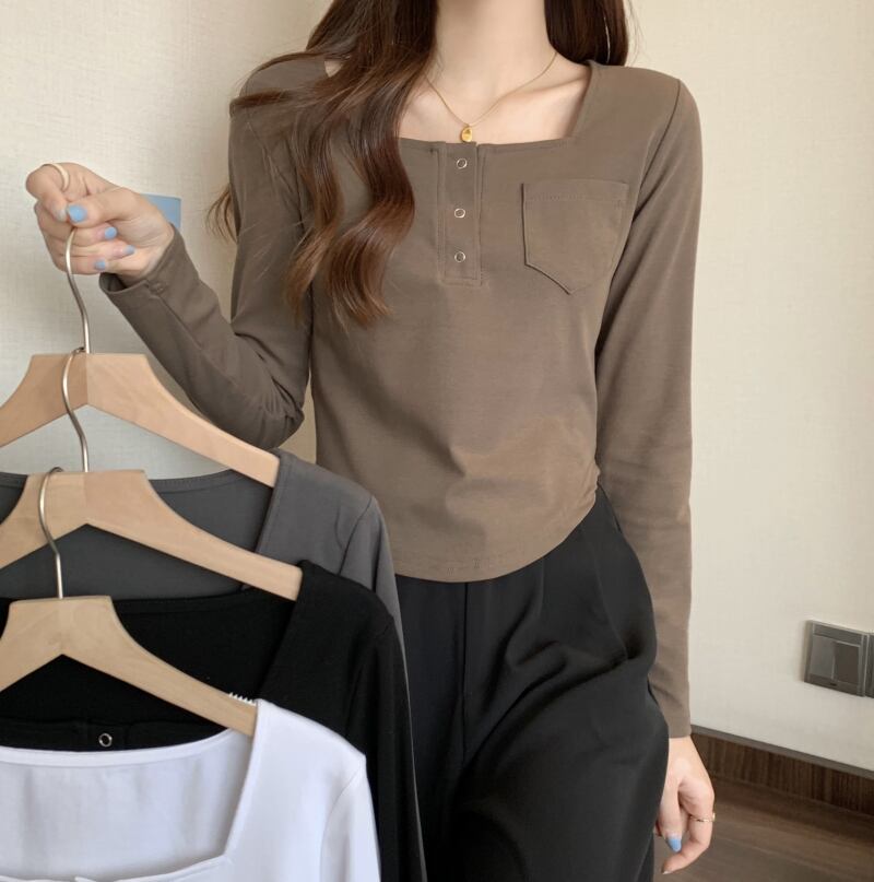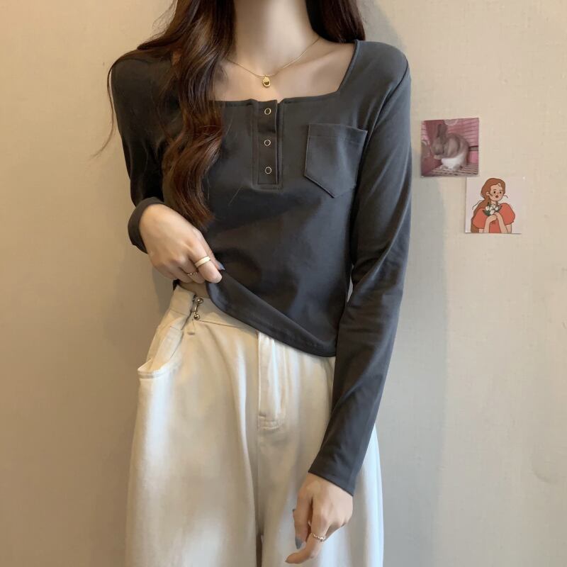 薄底 ボトムス シャツ レディース 春秋 フレンチ 鎖骨 スクエアカラー tシャツ スリムフィット 長袖 個性的 ショートトップ ロング スプリング 春物 オータム 秋物 スクウェア 746005391124645 | framboise21