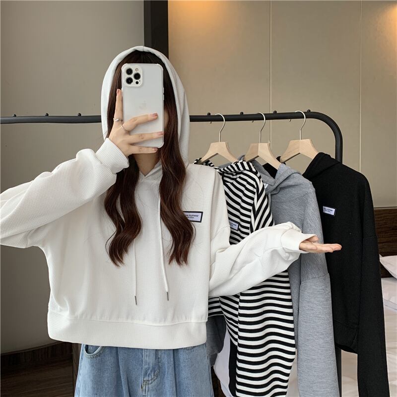 ショートフード付きフロントショルダーセーターの女性のシックな香港スタイルの秋 2022 新しい初秋のトップコート小さなトレンディ オータム 秋物 746008455249982 | framboise21