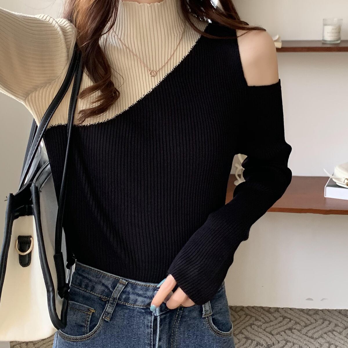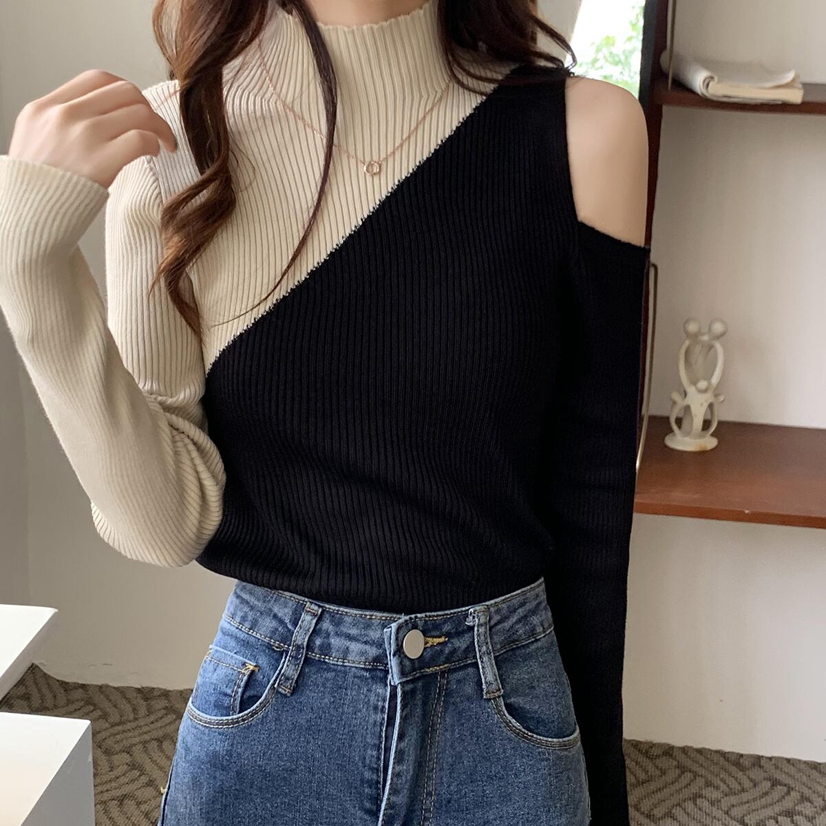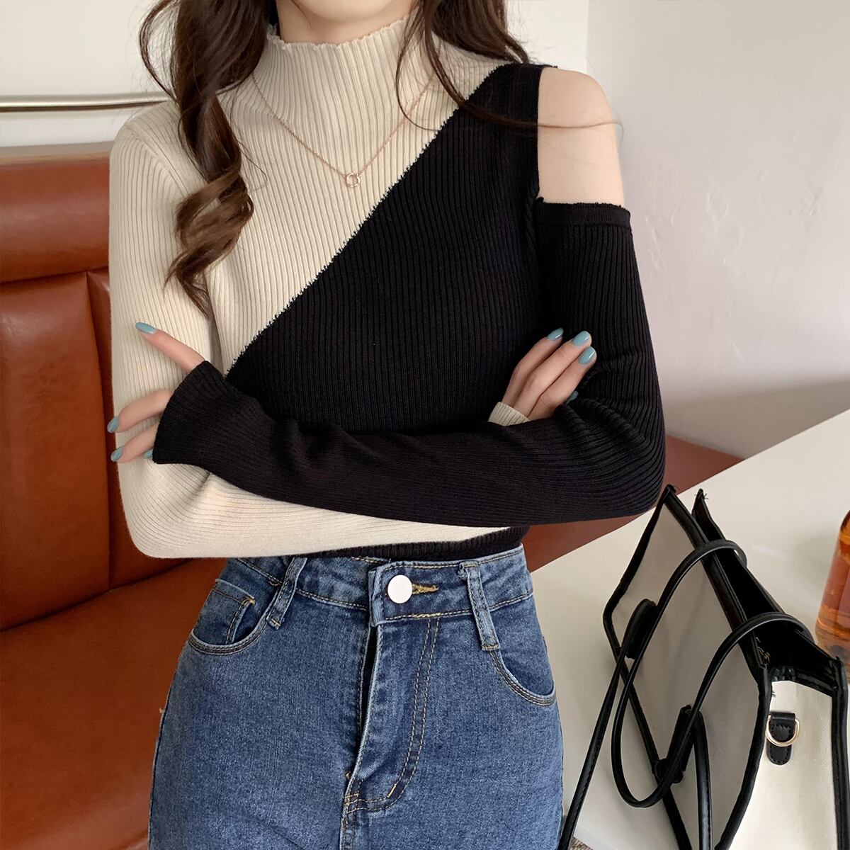 ニット ボトムス シャツ レディース 秋冬 ハーフタートルネック セーター デザイン 欧米風 ボディリペア オフショルダー 長袖 トップス ロング オータム 秋物 ウィンター 冬物 7460017919405844 | framboise21