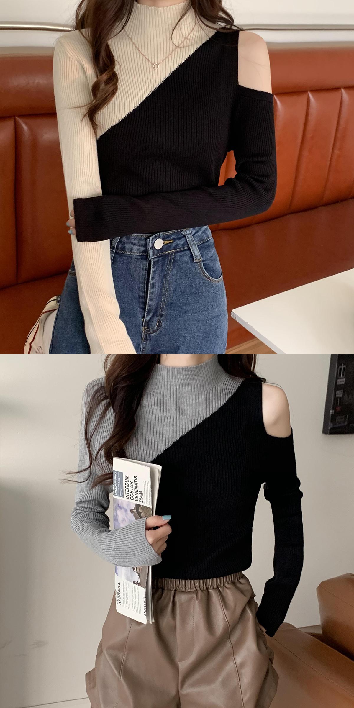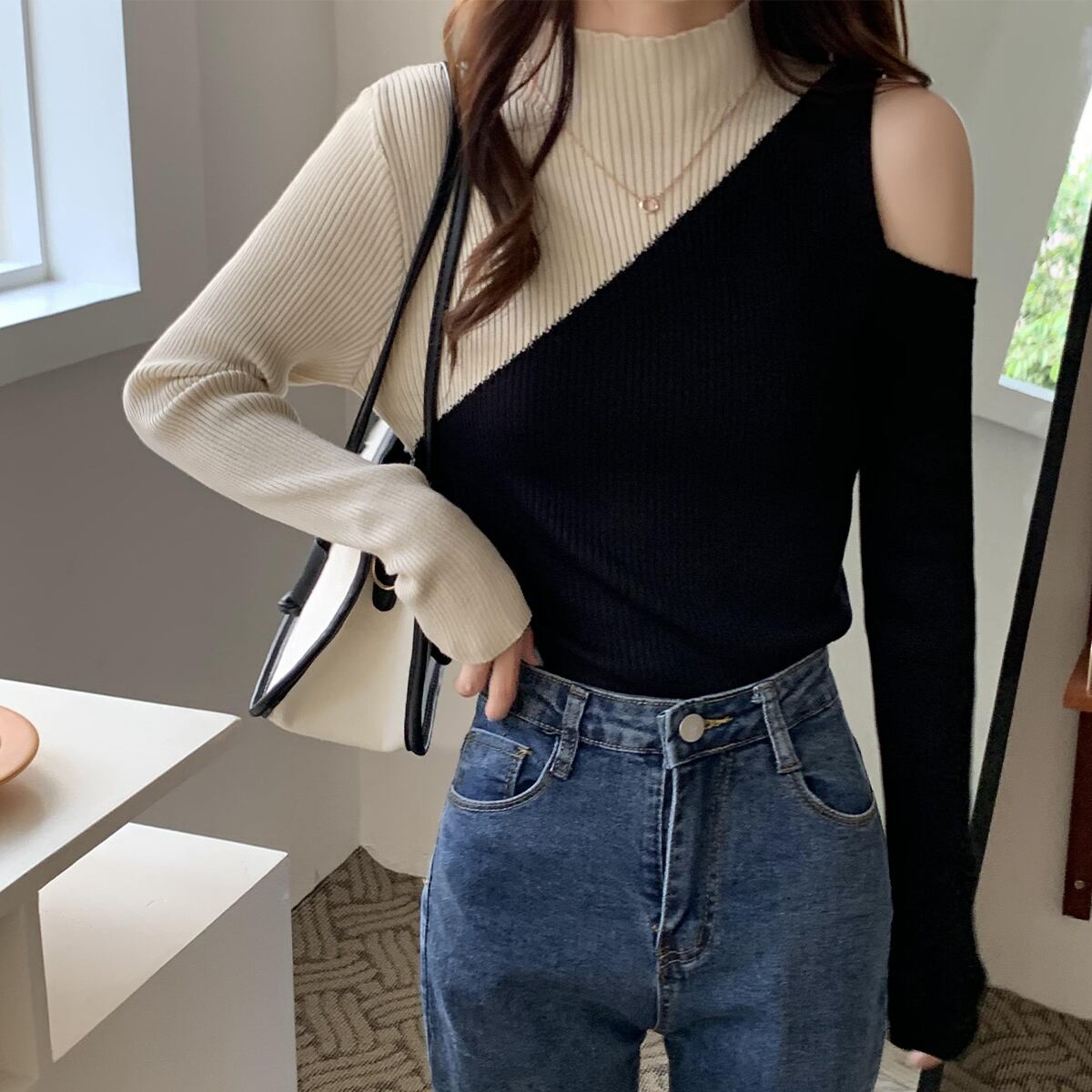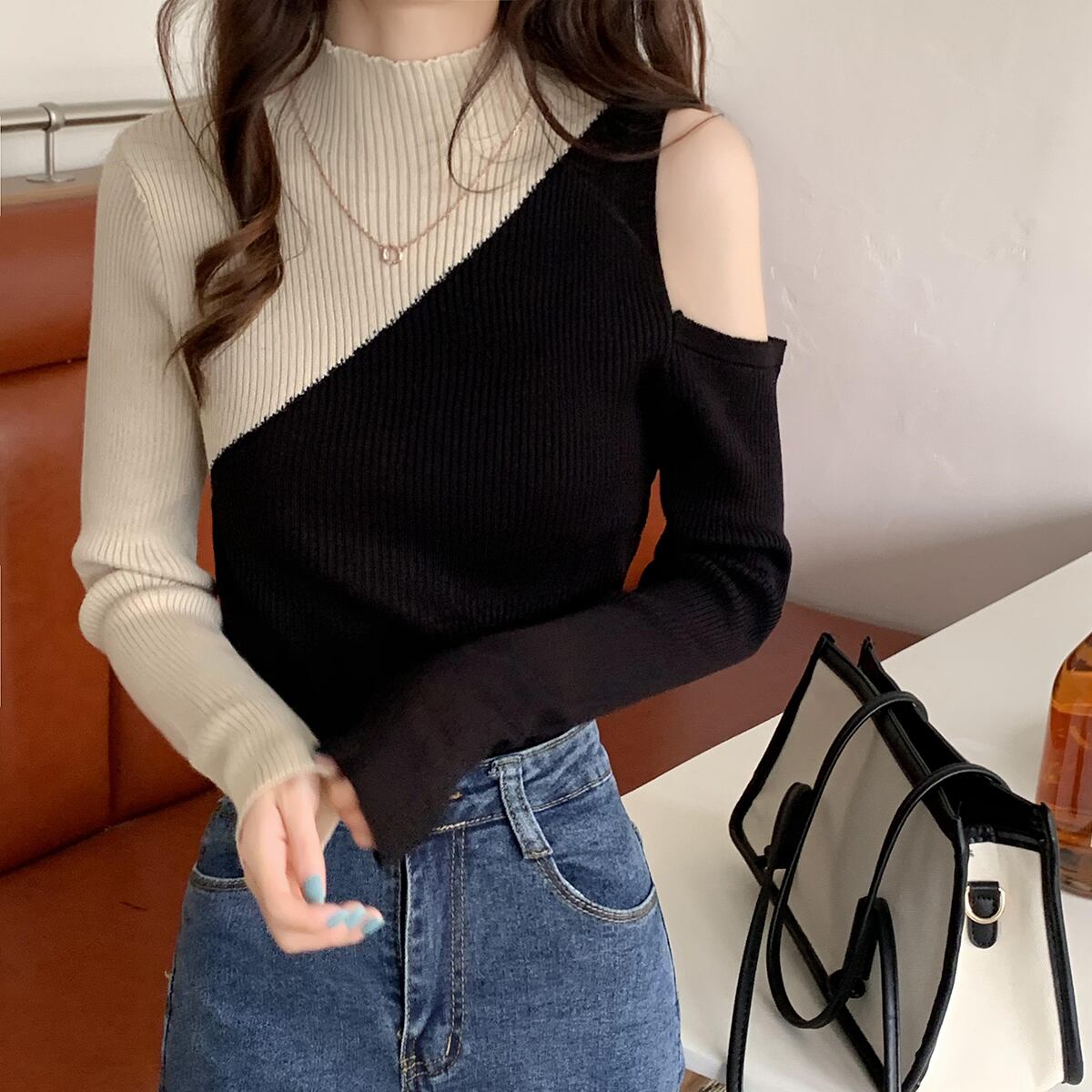 ニット ボトムス シャツ レディース 秋冬 ハーフタートルネック セーター デザイン 欧米風 ボディリペア オフショルダー 長袖 トップス ロング オータム 秋物 ウィンター 冬物 7460017919405844 | framboise21
