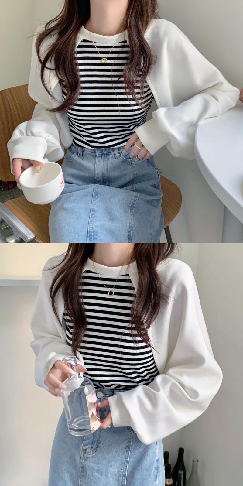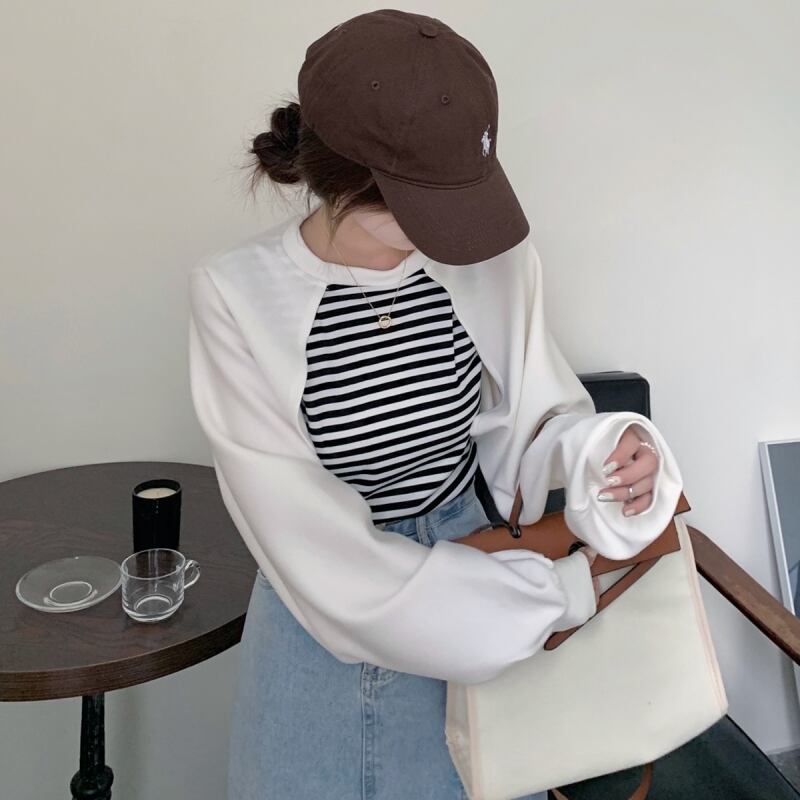 ショートセーター レディース 2022年春秋新作 シックなデザイン感 フェイクツーピース ストライプ 長袖 トップス トレンドイン ロング スプリング 春物 オータム 秋物 7460059540799097 | framboise21